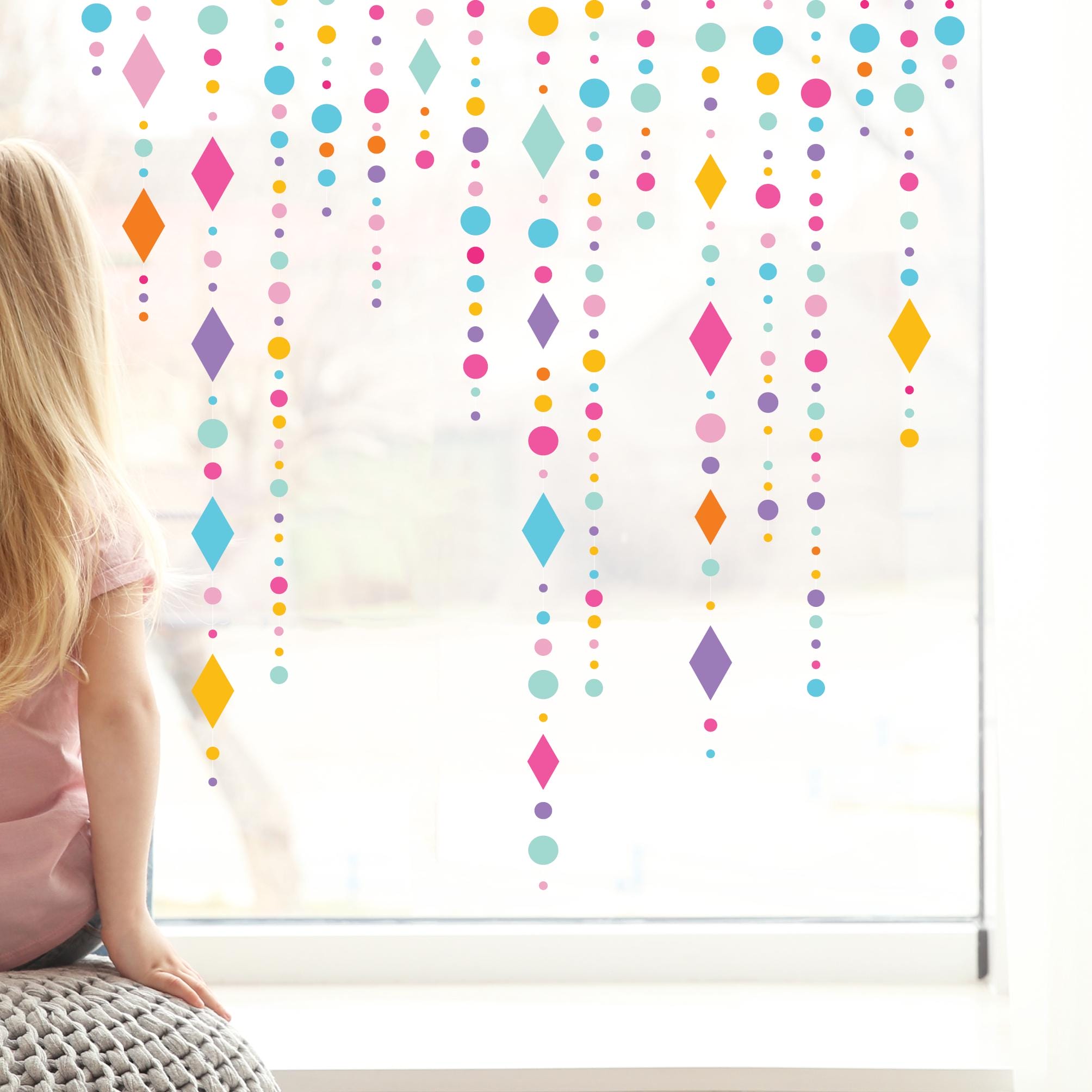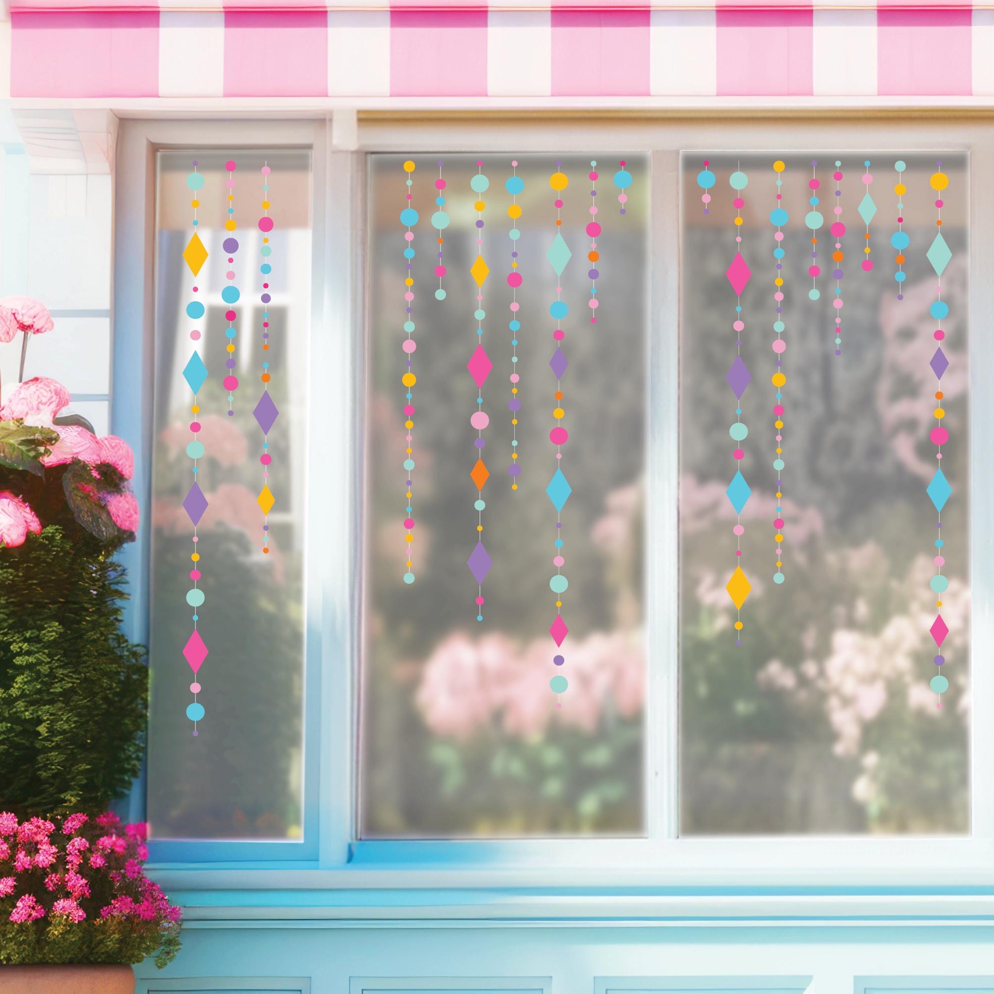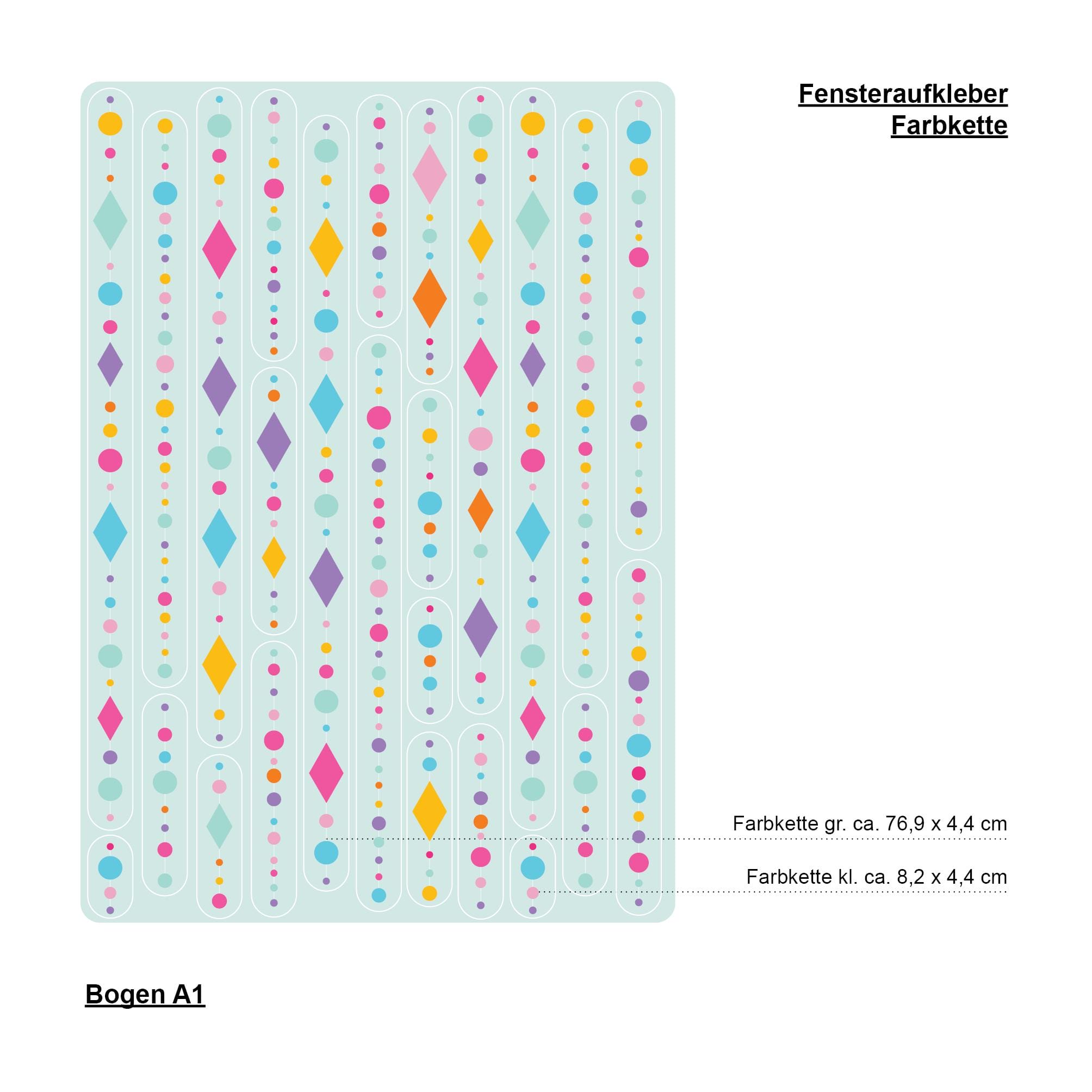 Fensterbild Konfettikette Rauten Girlande Farbspritzer bunte Viereck wiederverwendbar Frühling Fasching farbige Kreise Karneval Geburtstag