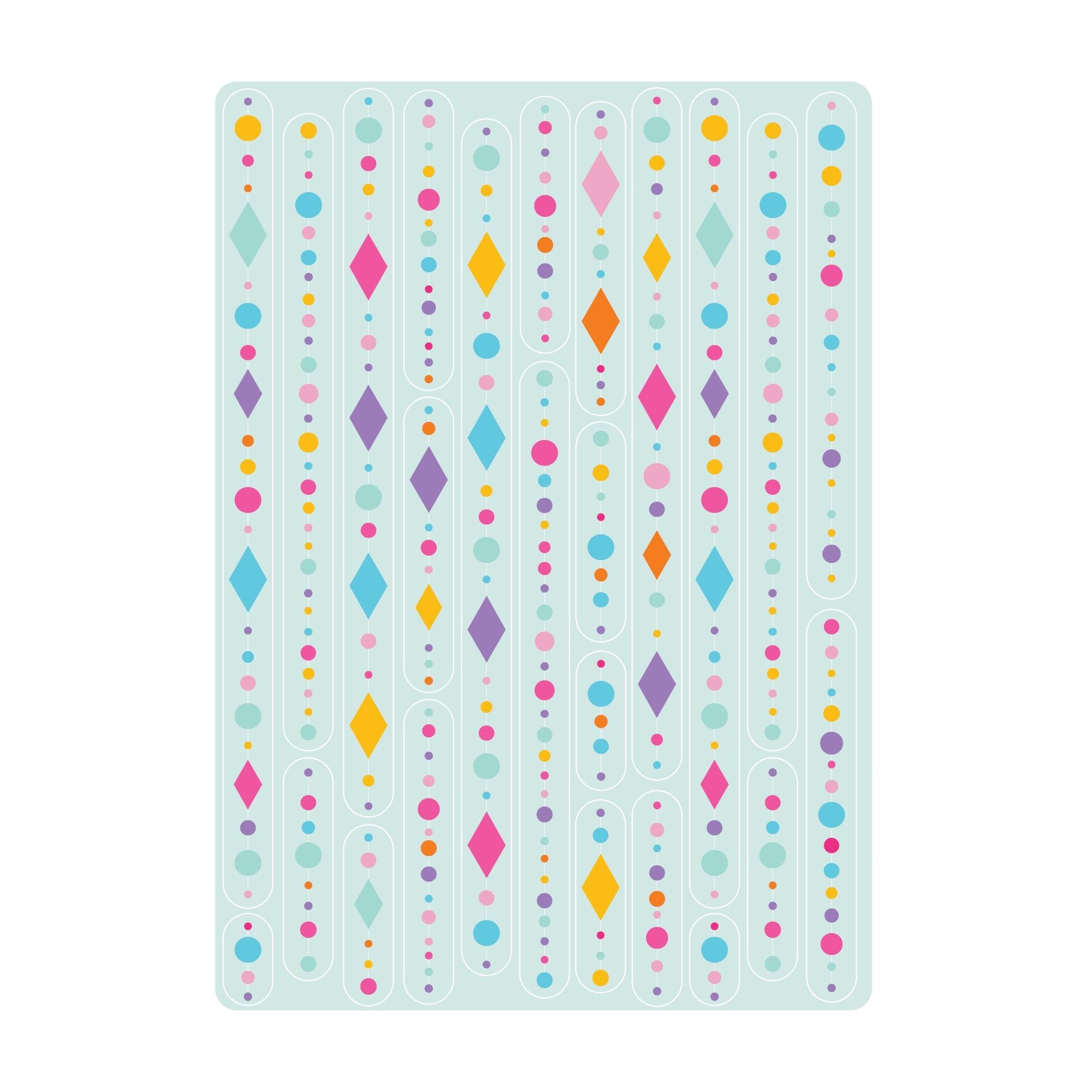 Fensterbild Konfettikette Rauten Girlande Farbspritzer bunte Vierecke wiederverwendbar Frühling Fasching farbige Kreise Karneval Geburtstag