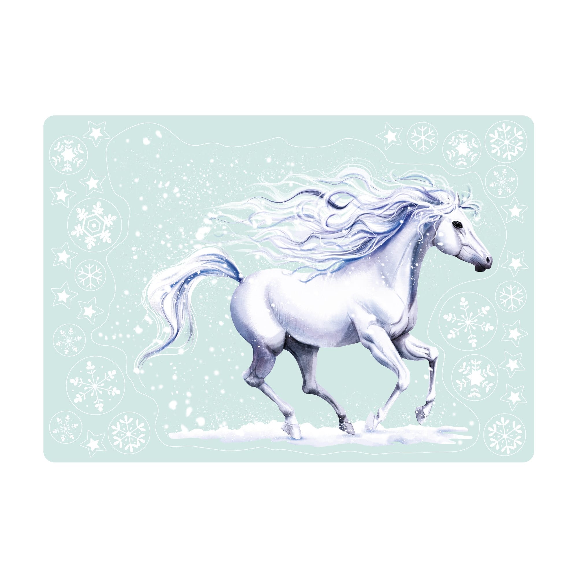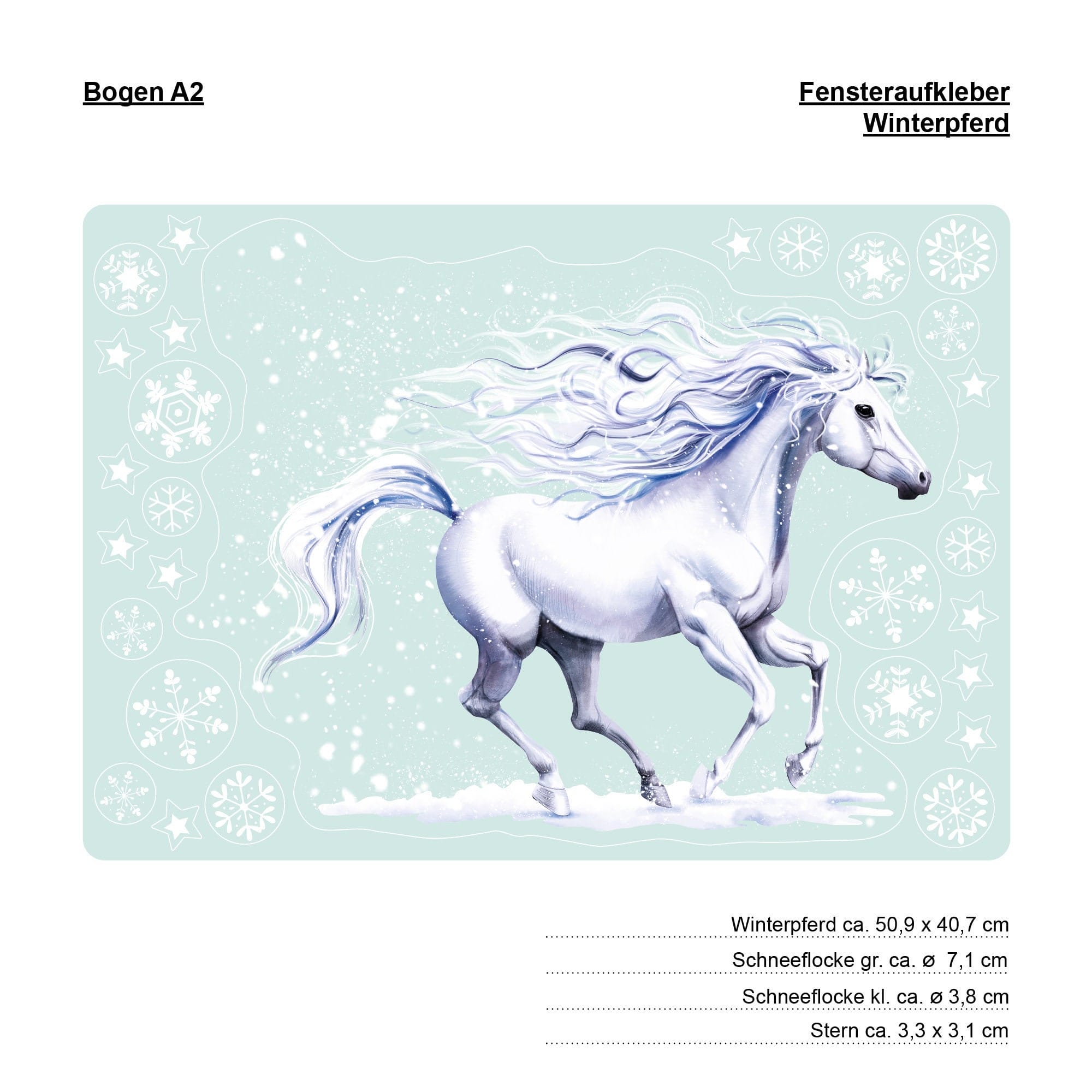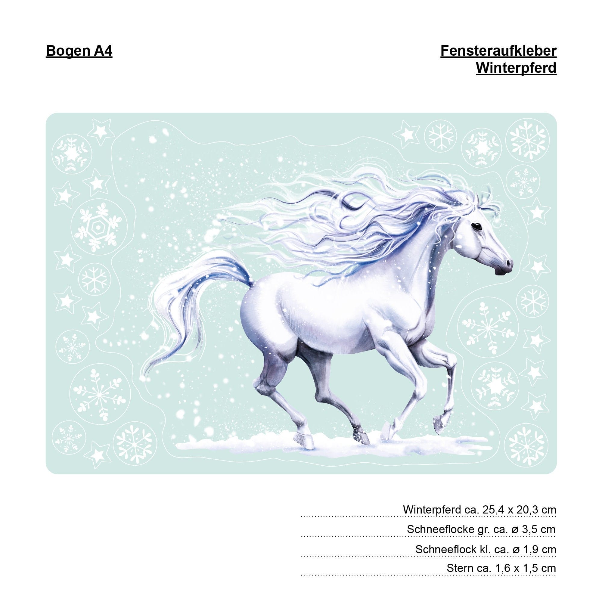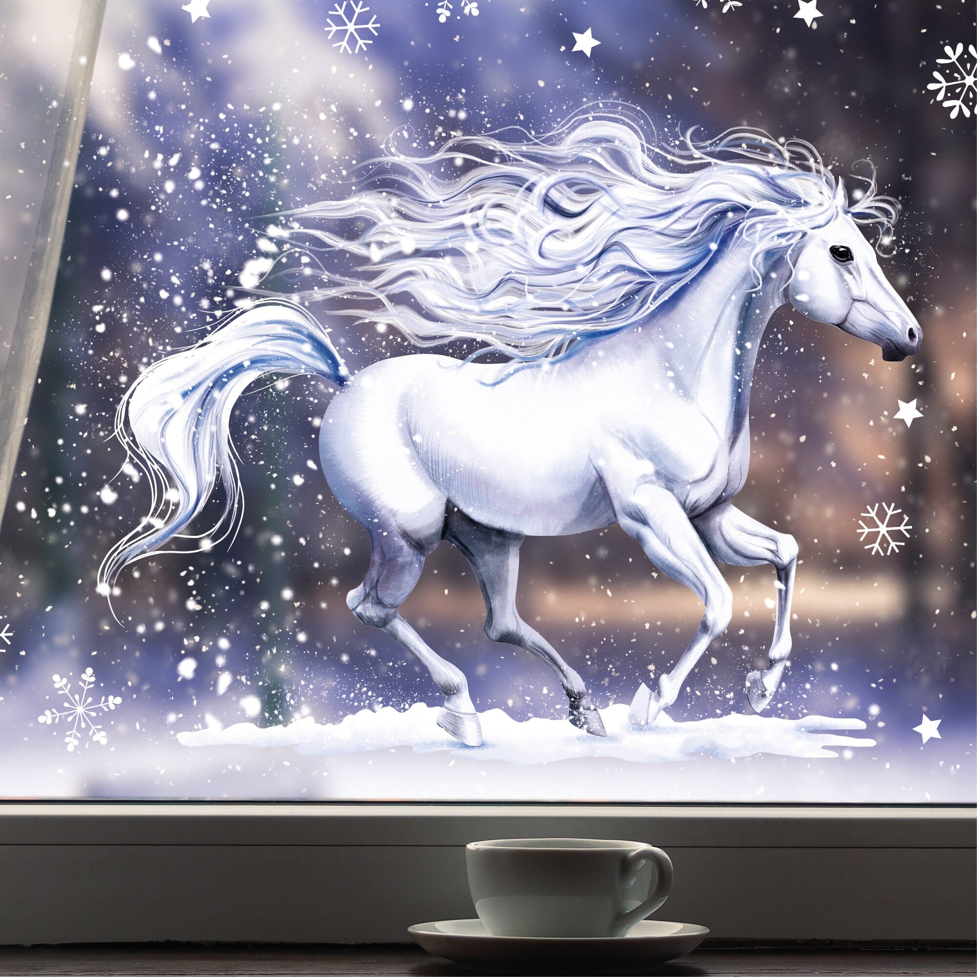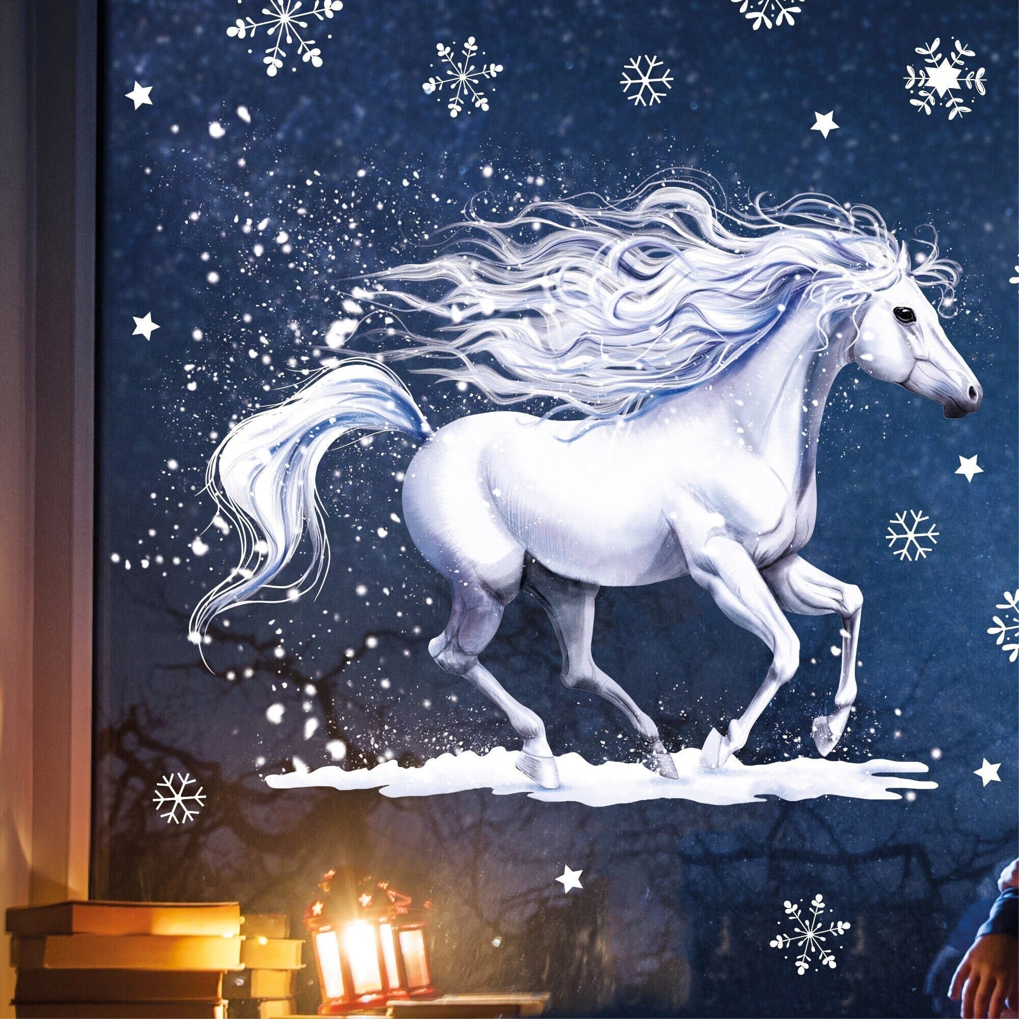 Fensterbild Pferd Winter Galopp Schneeflocken wiederverwendbare Fensteraufkleber Kinderzimmer Mädchen Kind