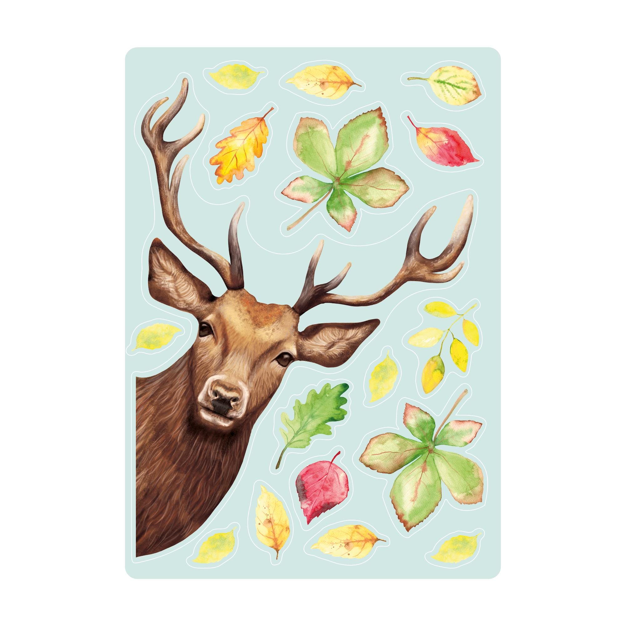 Fensteraufkleber „Herbsthirsch und Blätter“ – Wiederverwendbar und beidseitig bedruckt