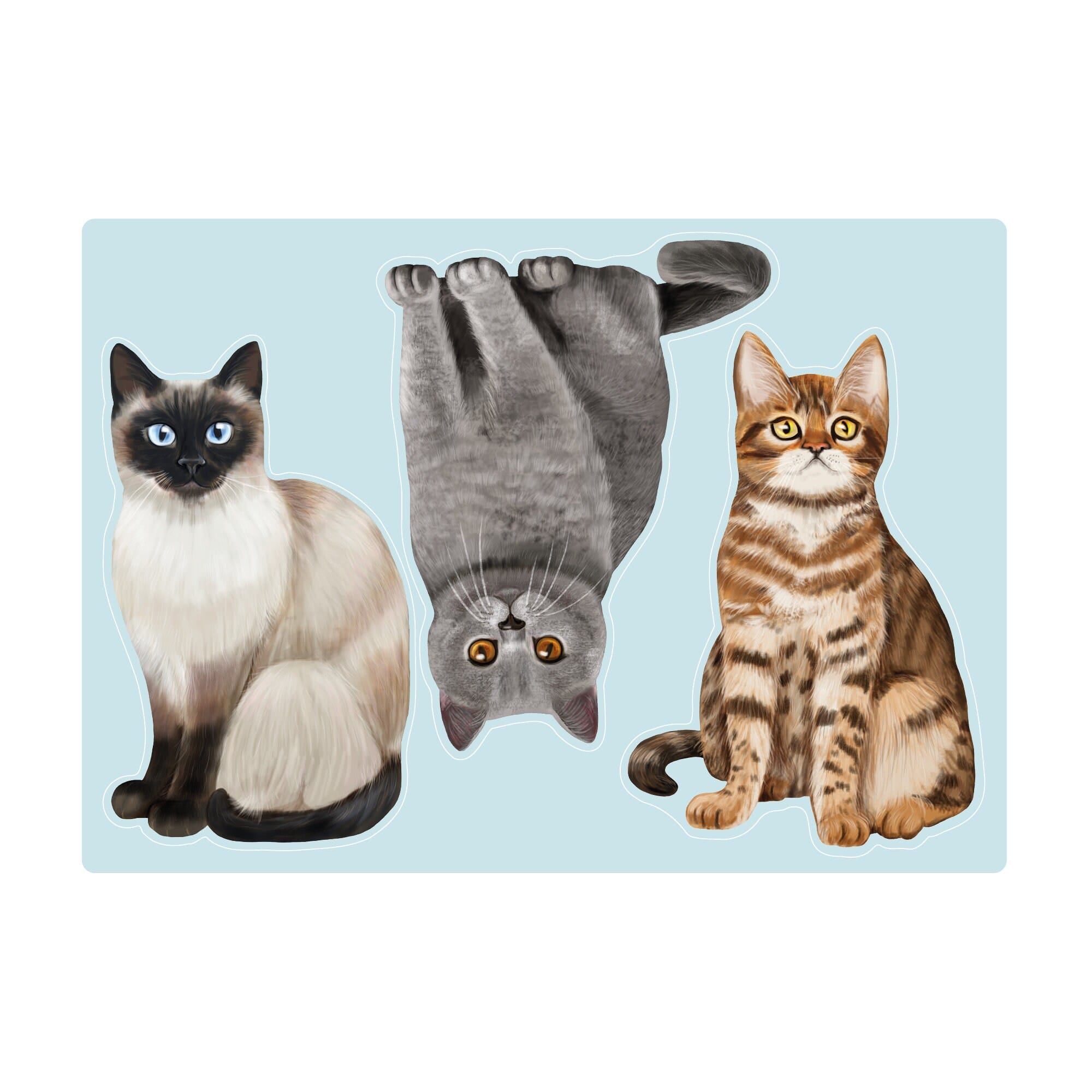 Du kannst das Motiv auf einem A4, A3 oder A2 Bogen kaufen. Die Maße der einzelnen Motive findest Du in den Artikelbildern. Die Katzen sind einzeln verklebbar.