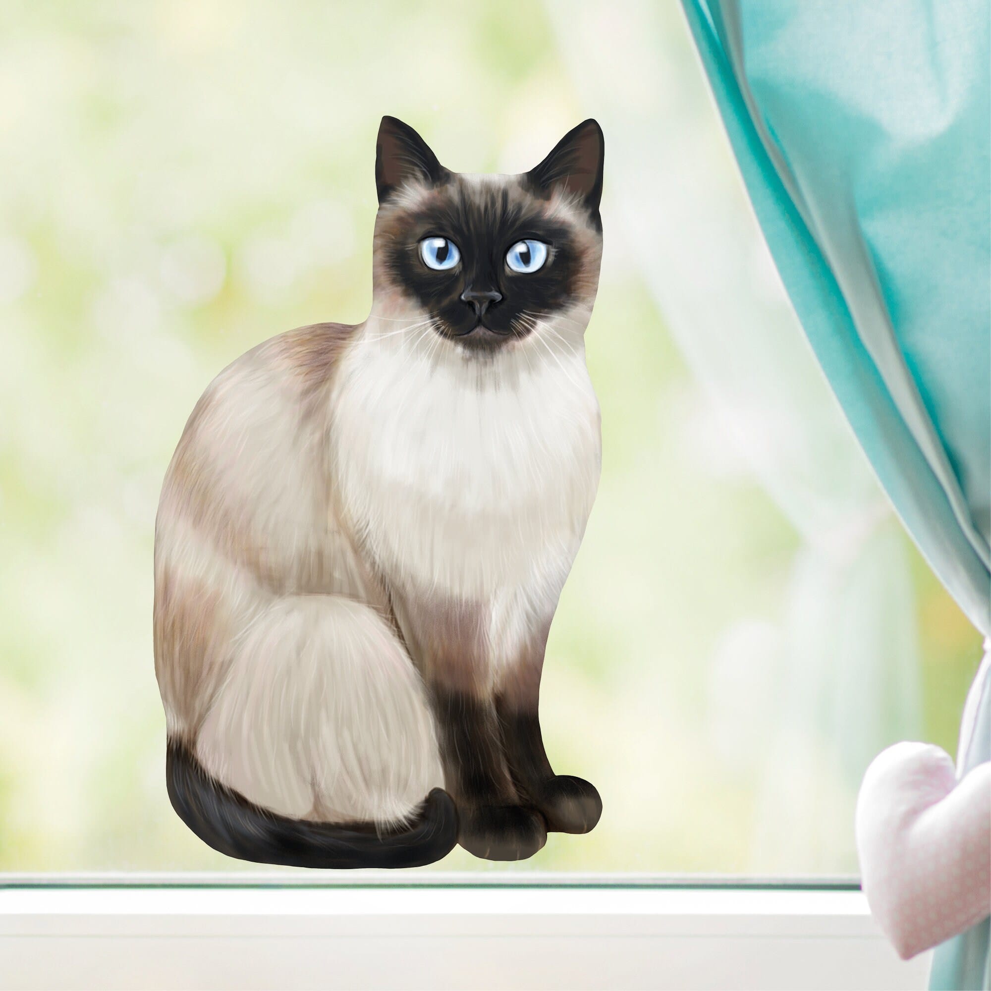 Fensterbild sitzende Katzen Siamkatze Perserkatze Katzenrassen, Fensterdeko Kinderzimmer Kind Osterdeko Frühlingsdeko
