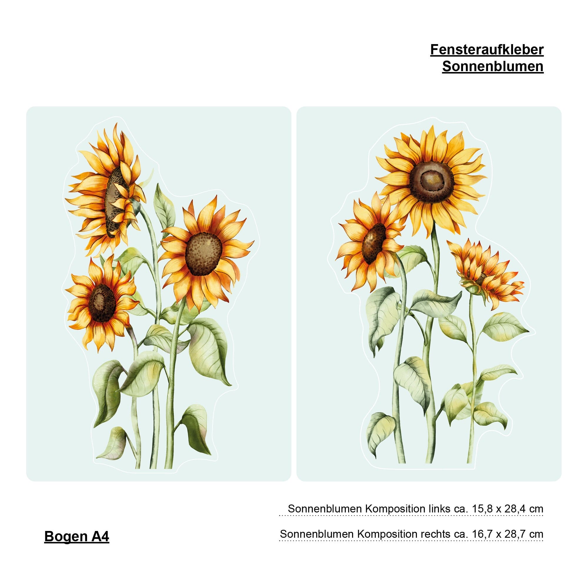 Fensterbild Sonnenblume hoch Herbst Sommer wiederverwendbare Fensteraufkleber für bodentiefe Fenster