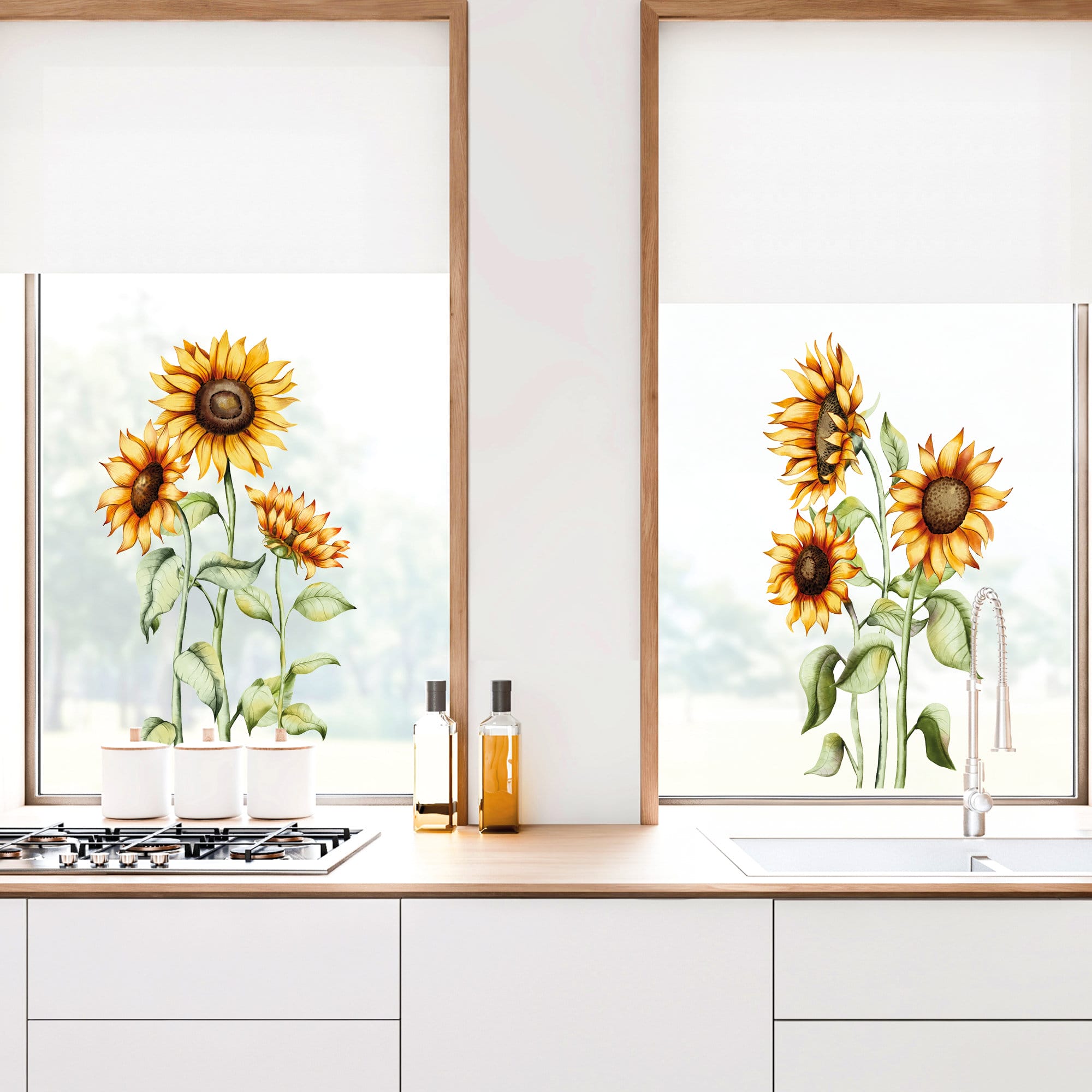 Fensterbild Sonnenblume hoch Herbst Sommer wiederverwendbare Fensteraufkleber für bodentiefe Fenster Terassentür Balkon