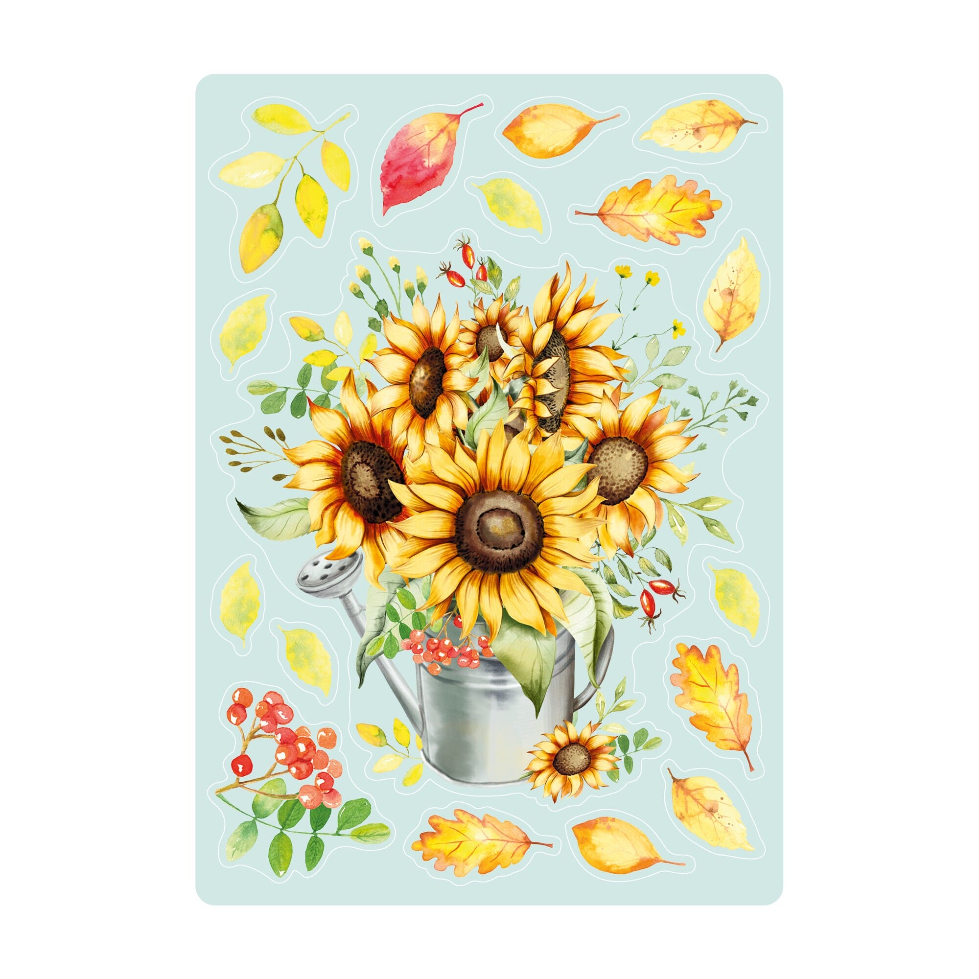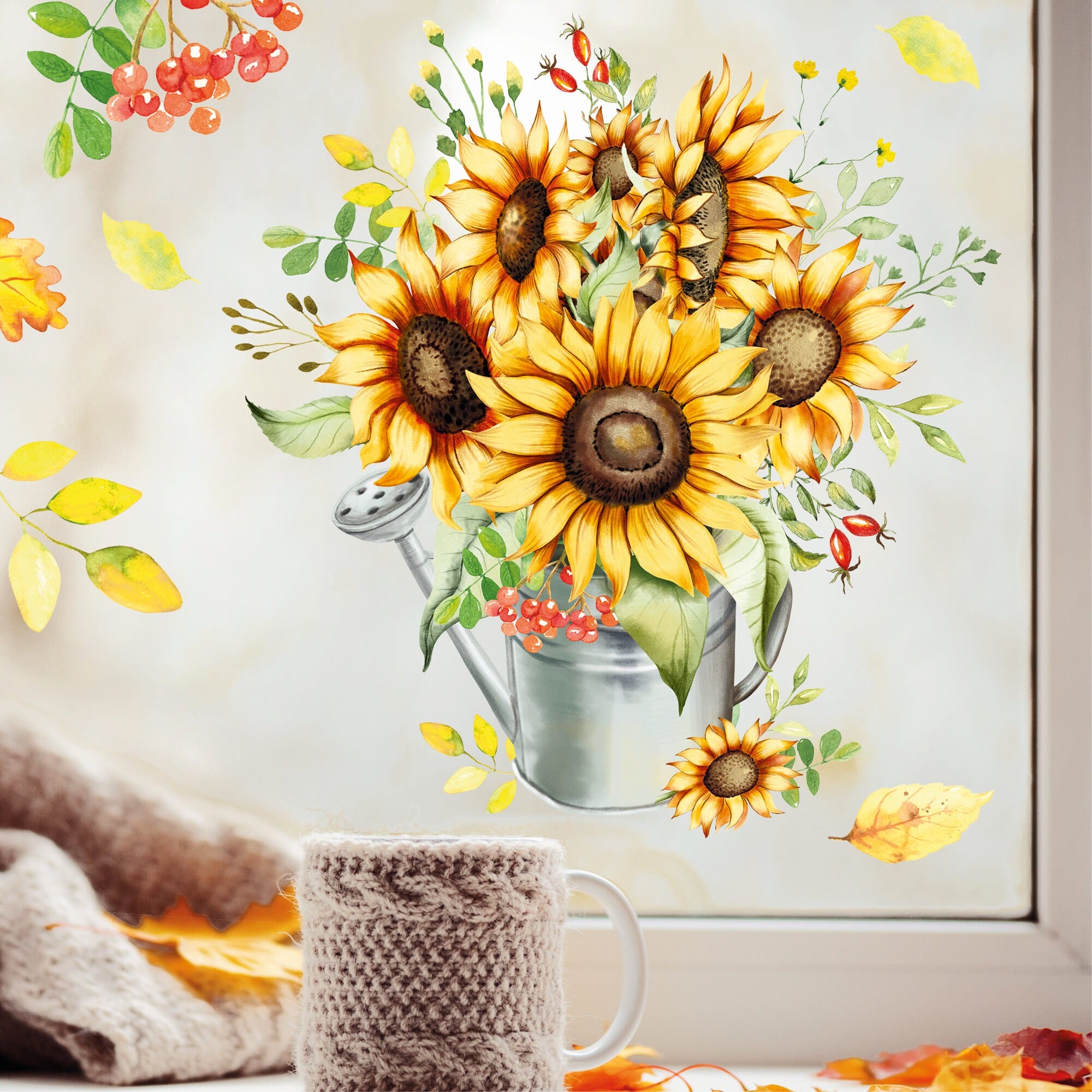 Fensterbild Sonnenblumen Gießkanne Herbst wiederverwendbare Fensteraufkleber