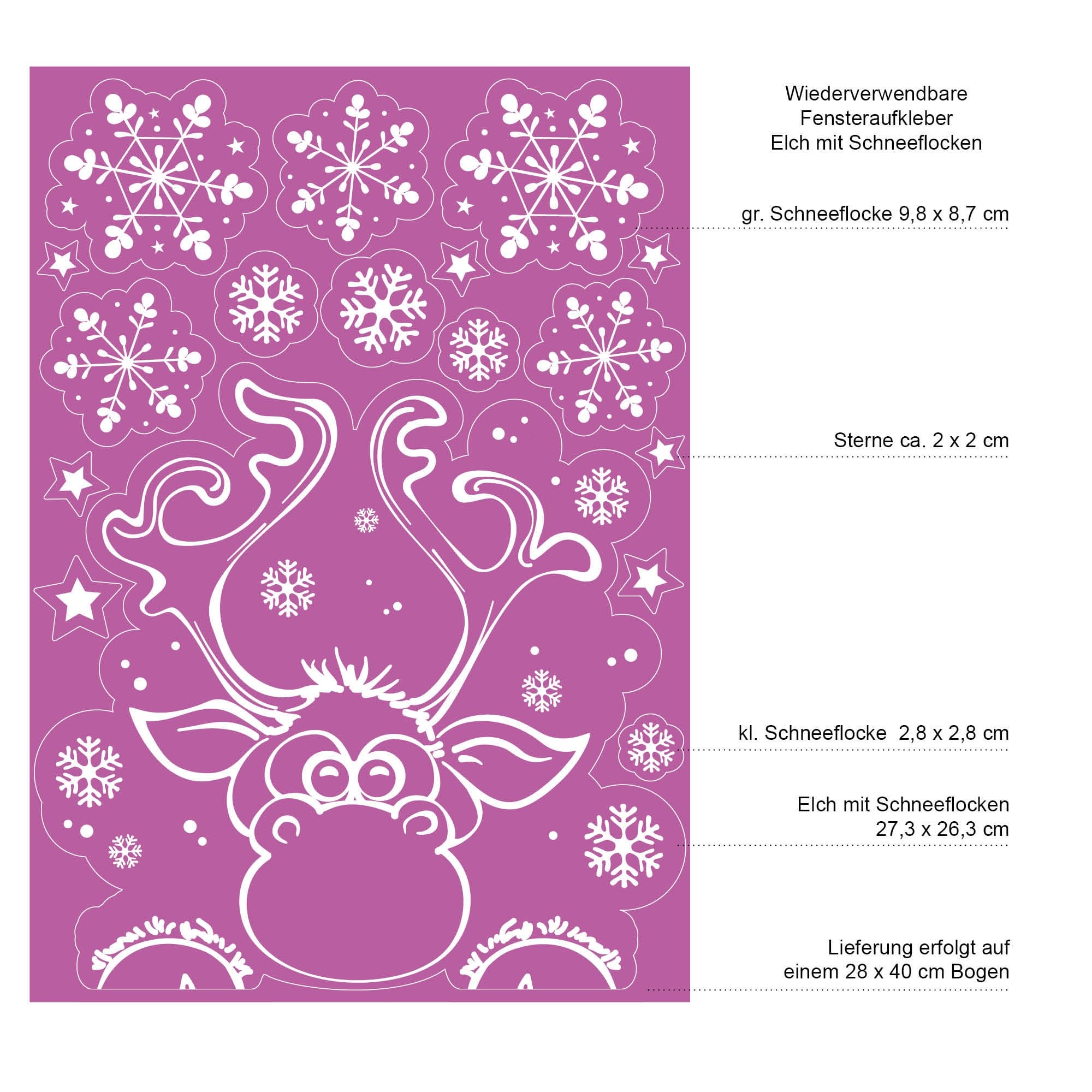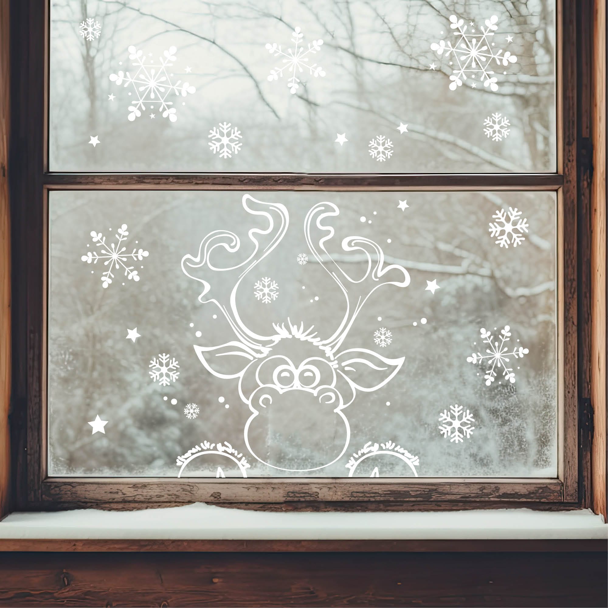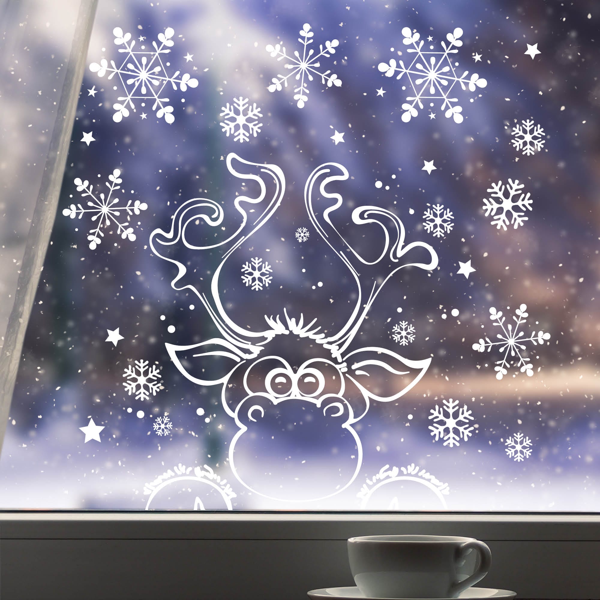 Fensterbild Weihnachten Elch Fensteraufkleber Schneeflocken WIEDERVERWENDBAR