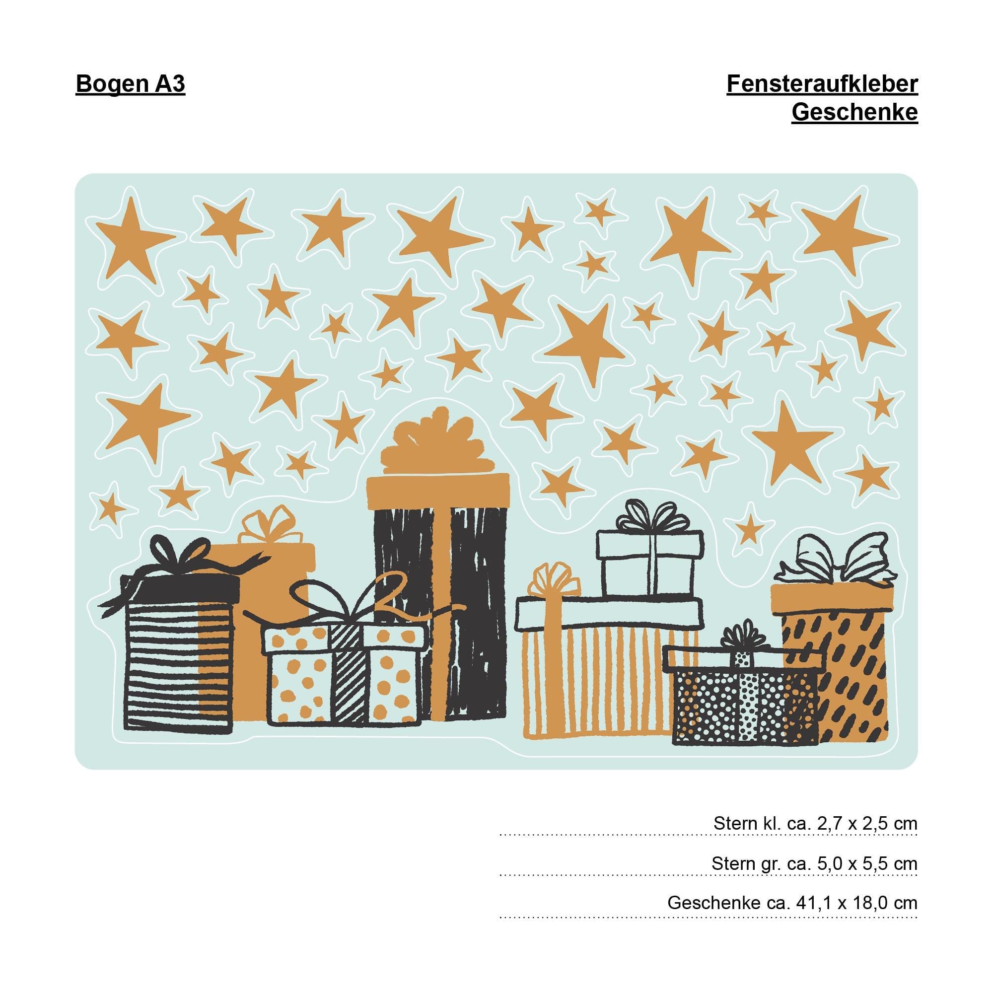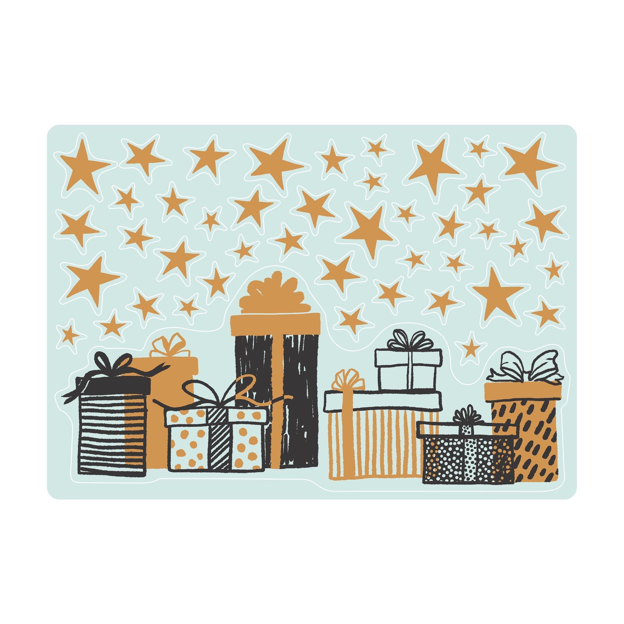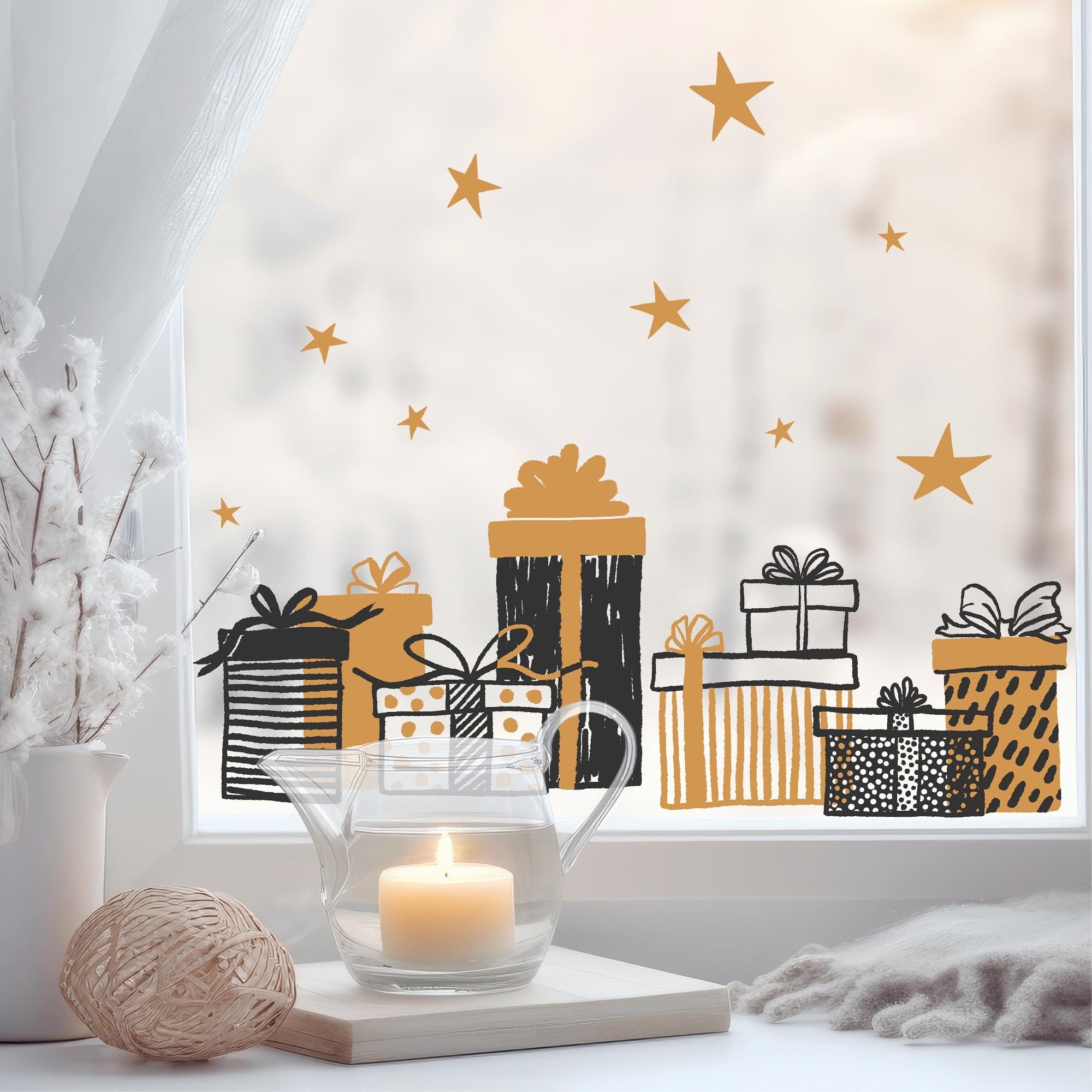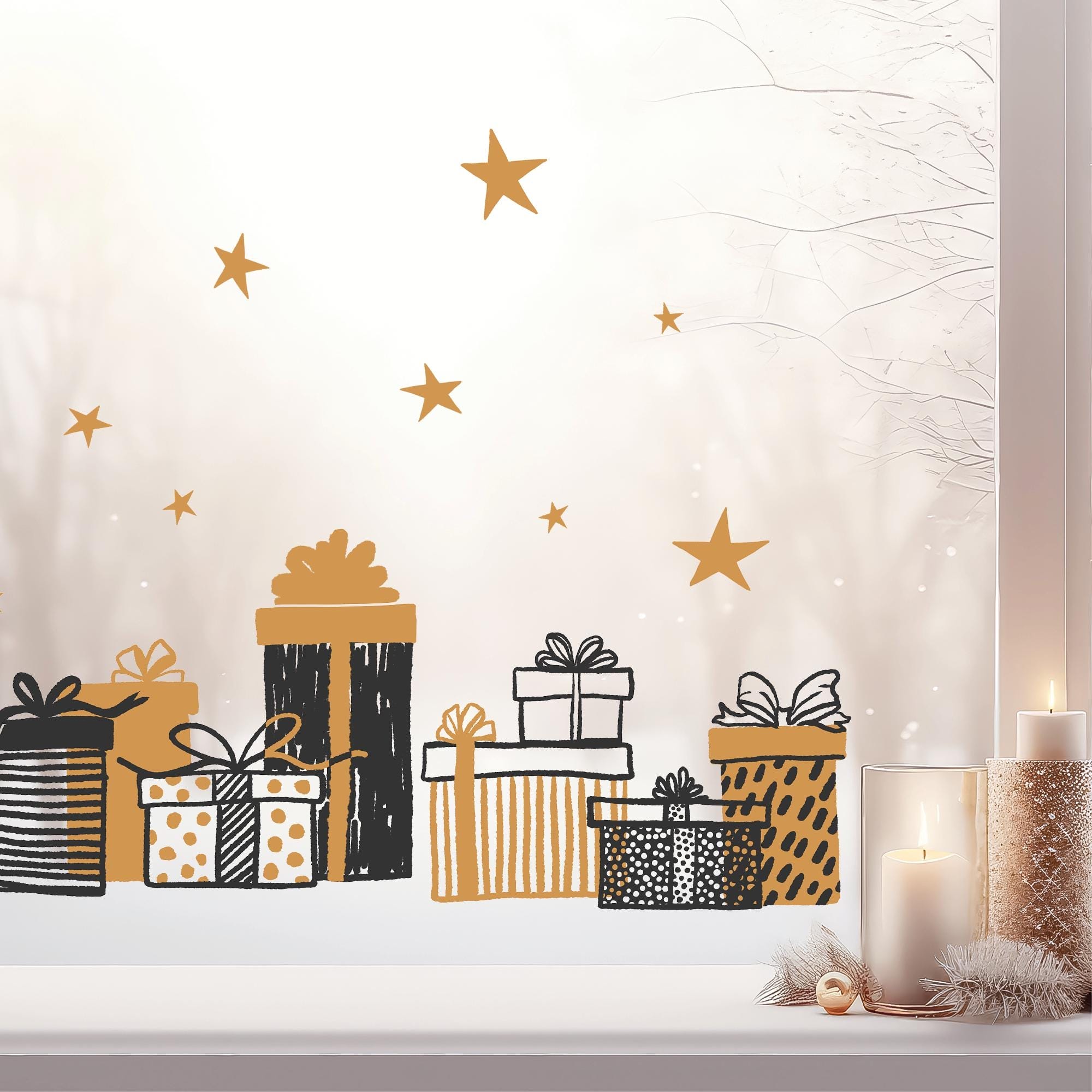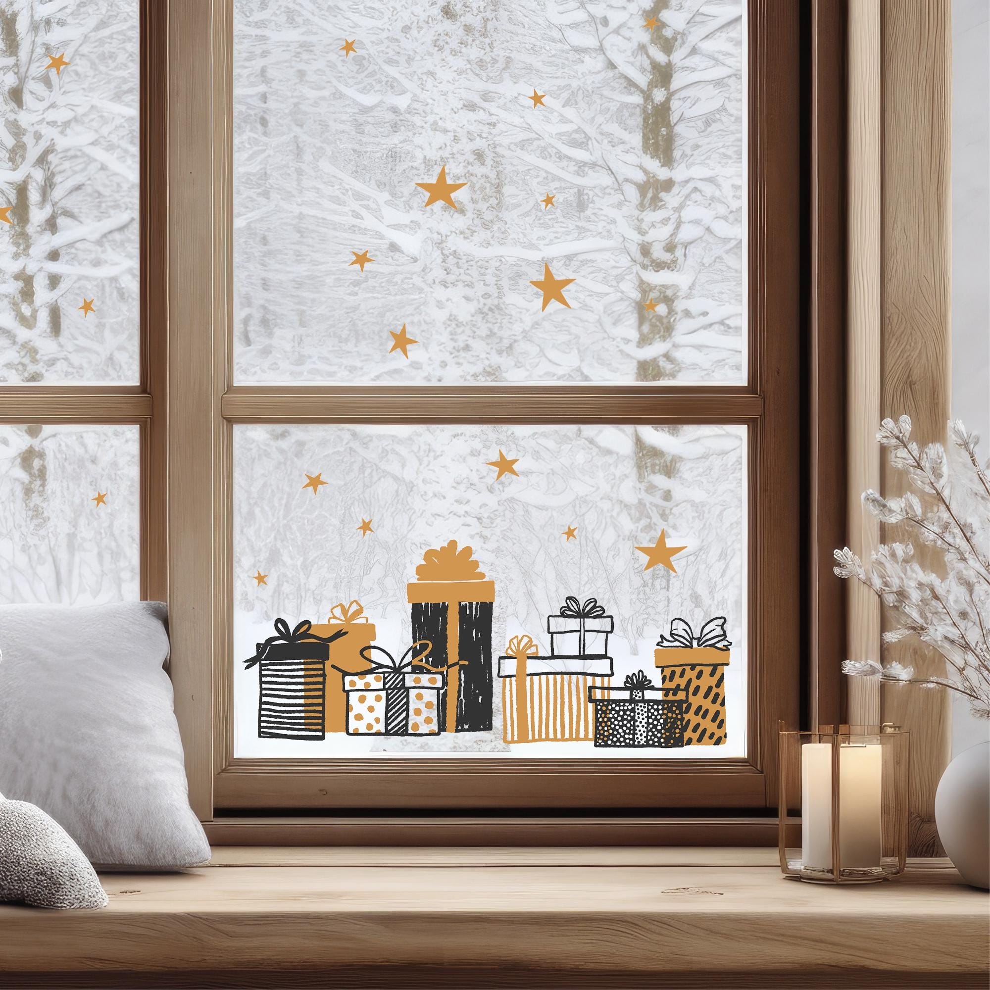 Fensterbild Weihnachten Geschenke Set mit Sterne schwarz goldähnlich minimalistisch Fensteraufkleber Weihnachtsdekoration wiederverwendbar