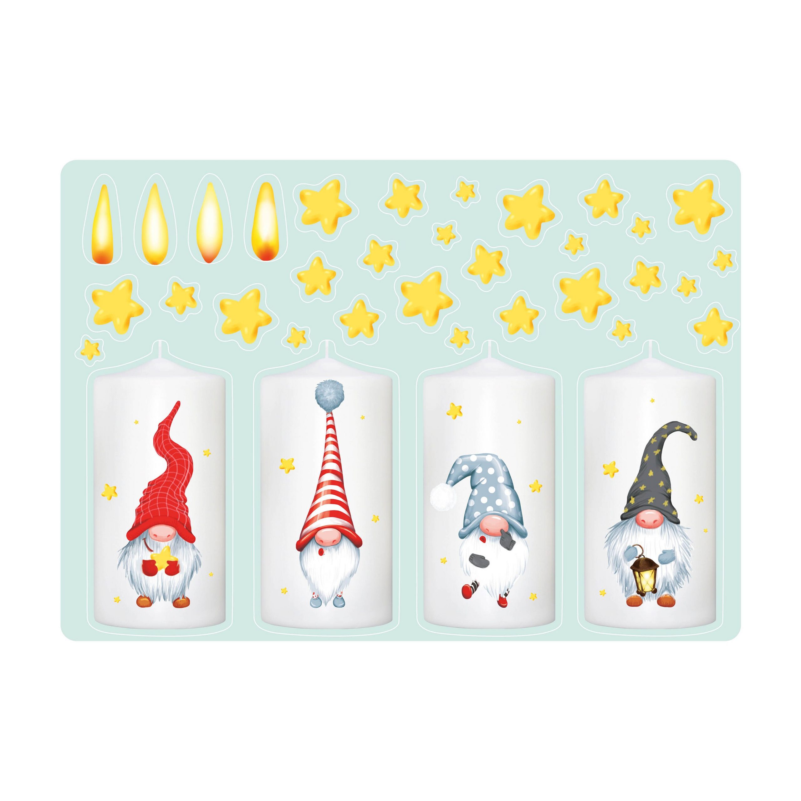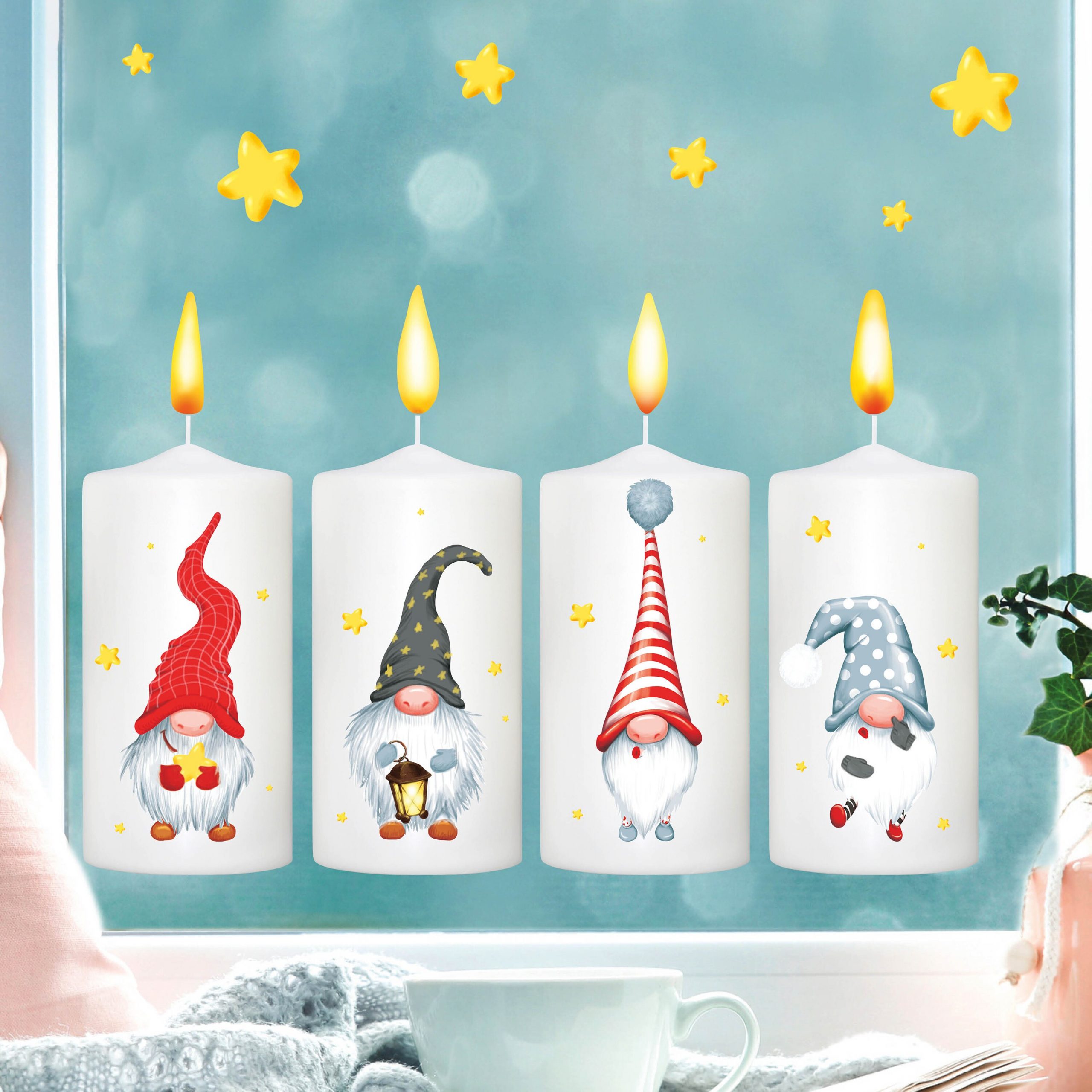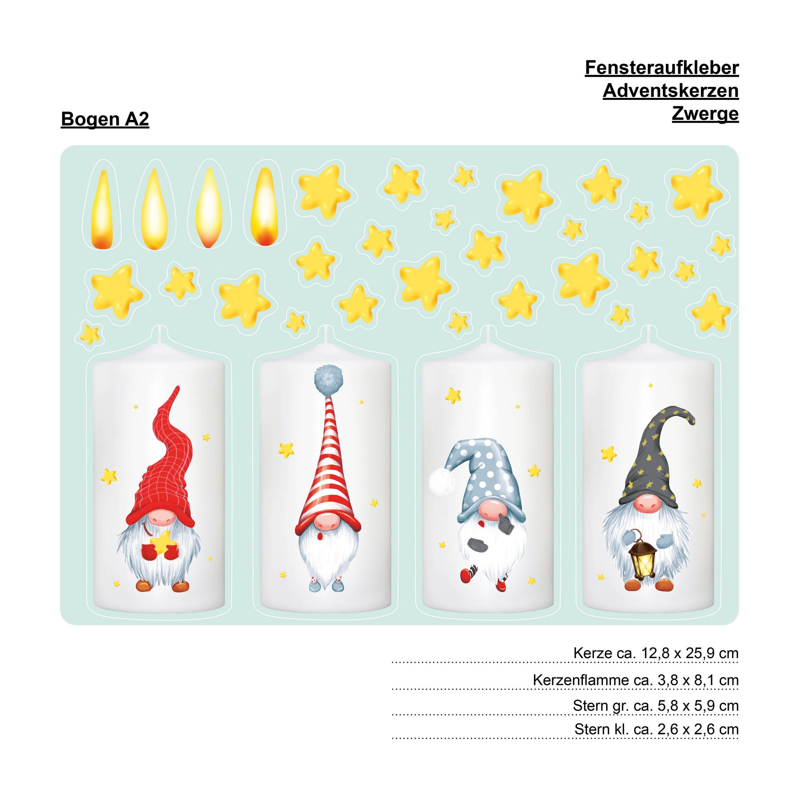 Fensterbild Weihnachten Winter Adventskerzen mit Zwergen und Flammen zum Selbstaufkleben an jedem Advent Fensteraufkleber Fensterdeko