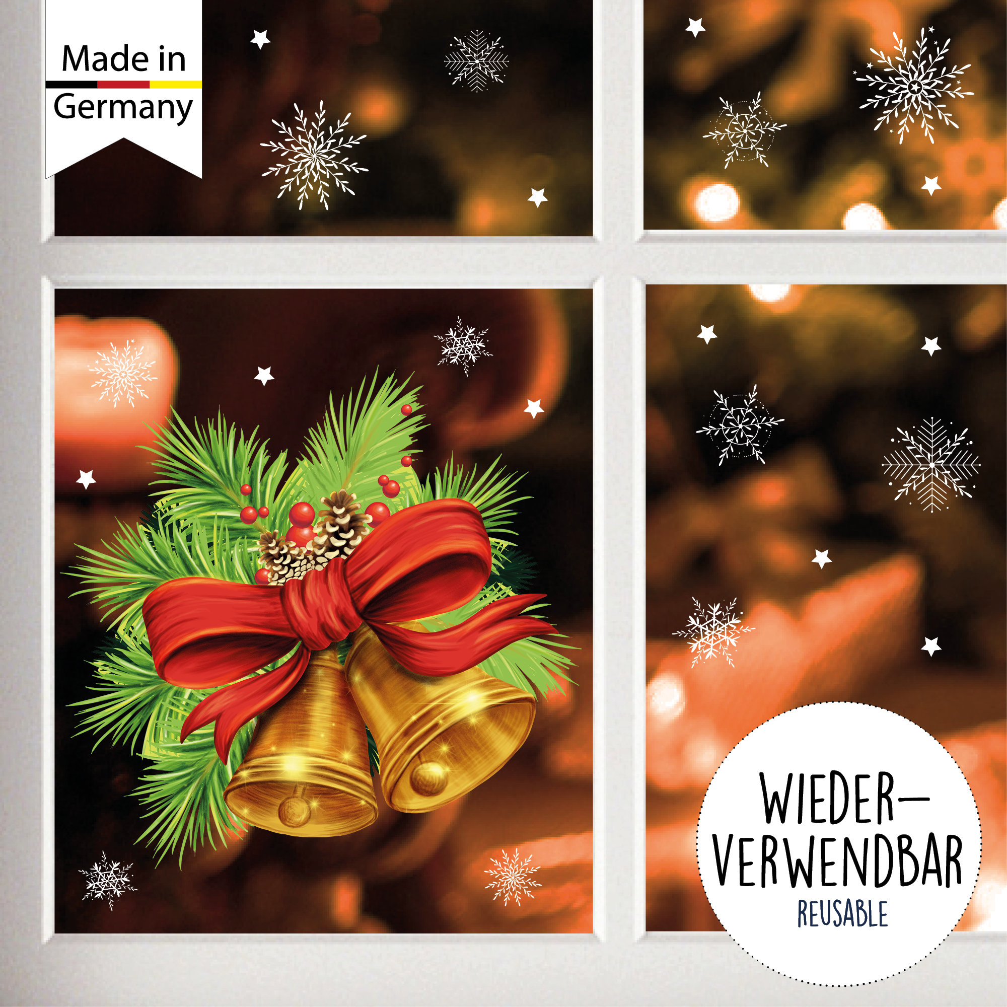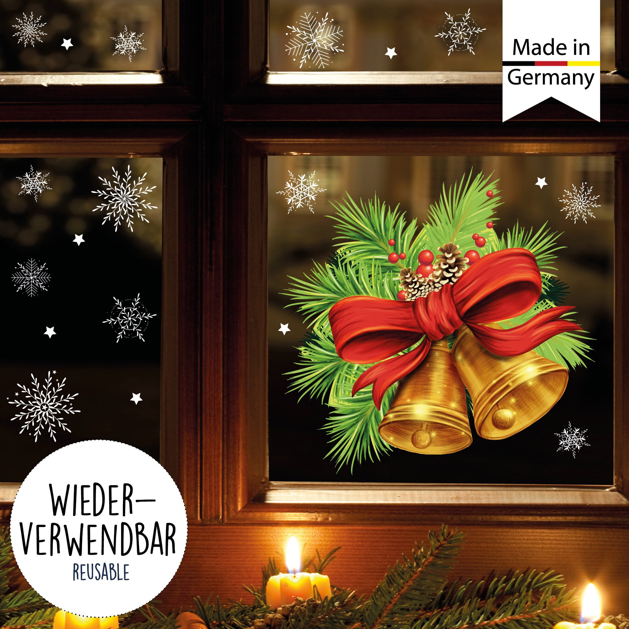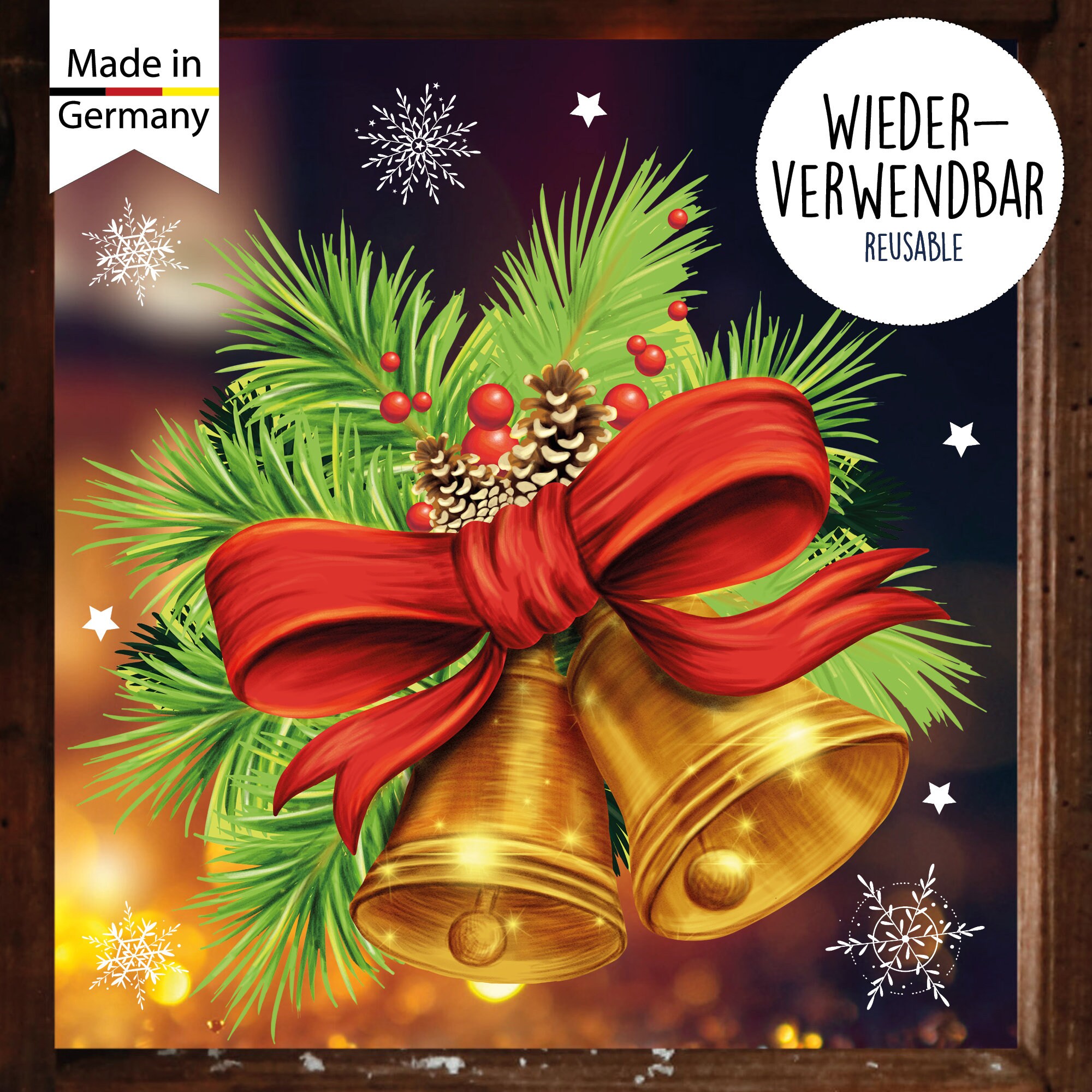 Fensterbild Weihnachten Winter Glocken Weihnachstglocken Fensterdeko wiederverwendbar Geschenk