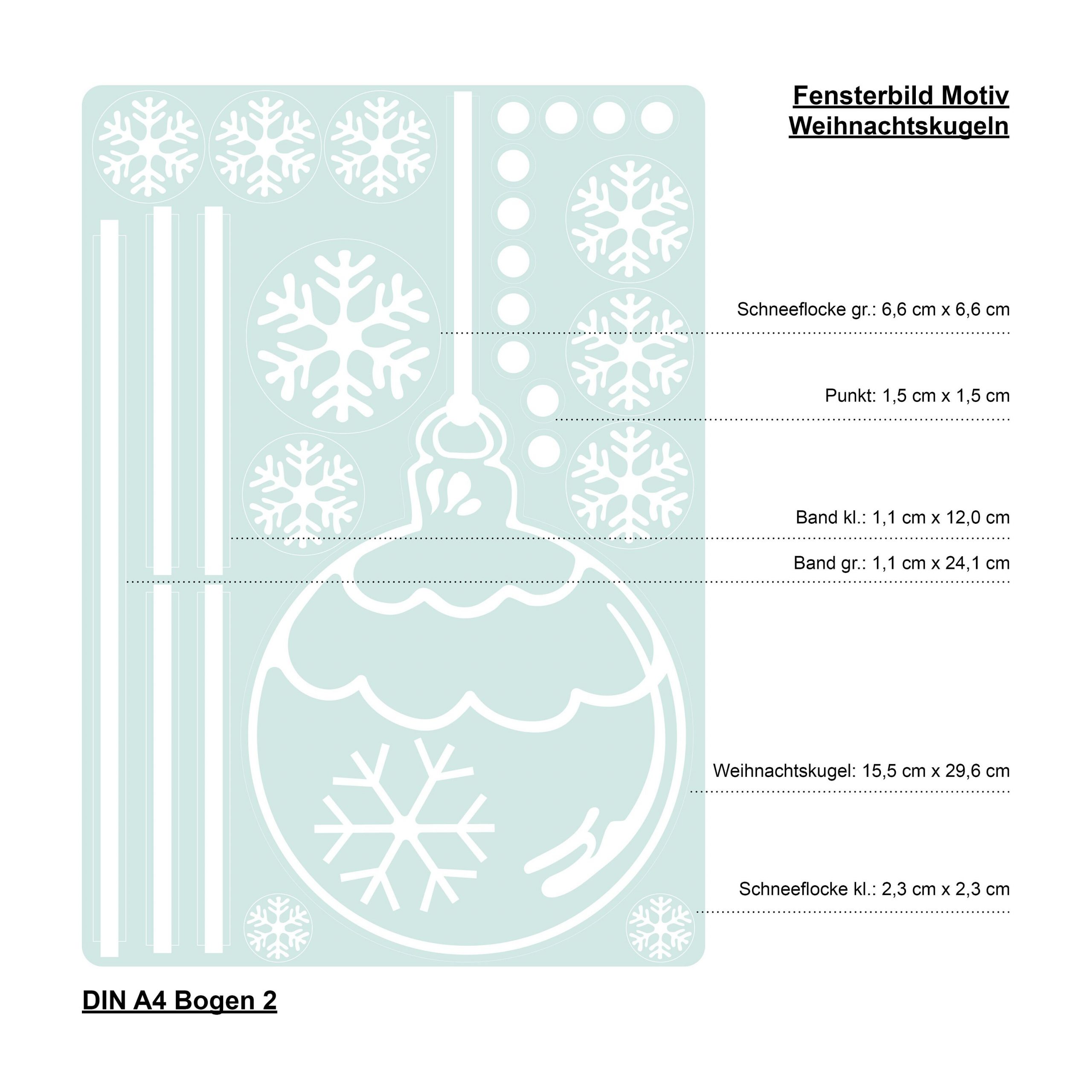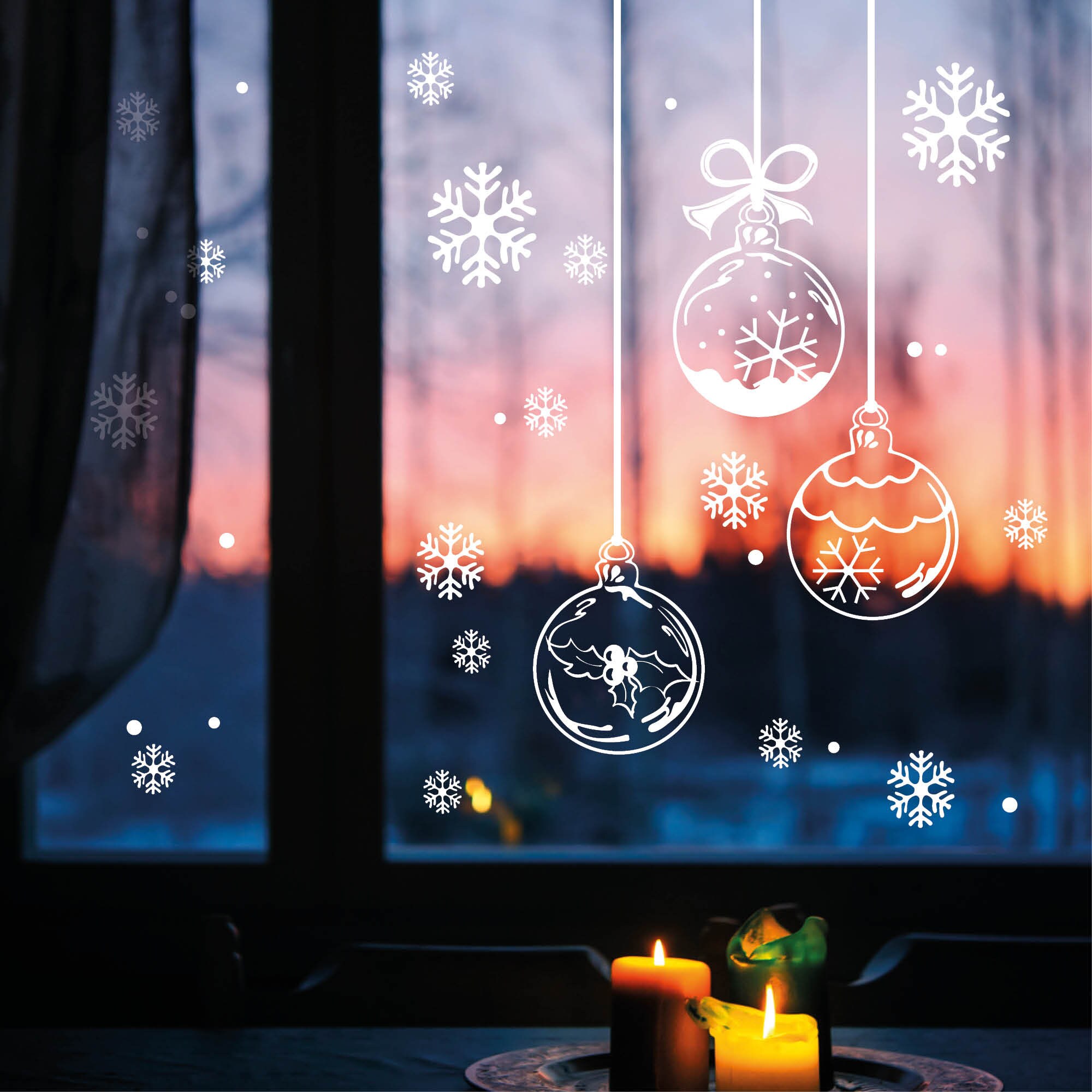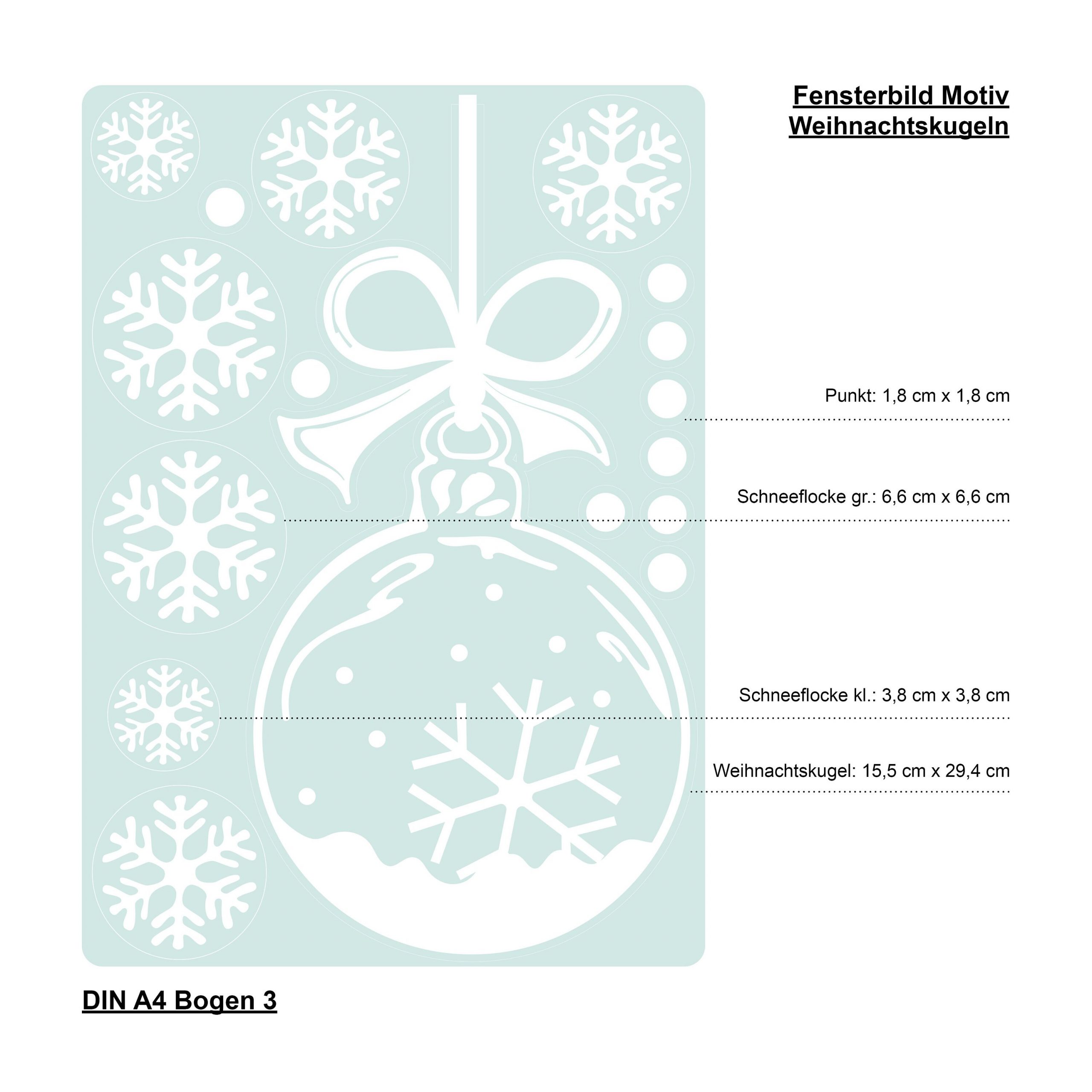 Fensterbild Weihnachten Winter Weihnachtskugeln Schneeflocken wiederverwendbar Fensterdeko Advent