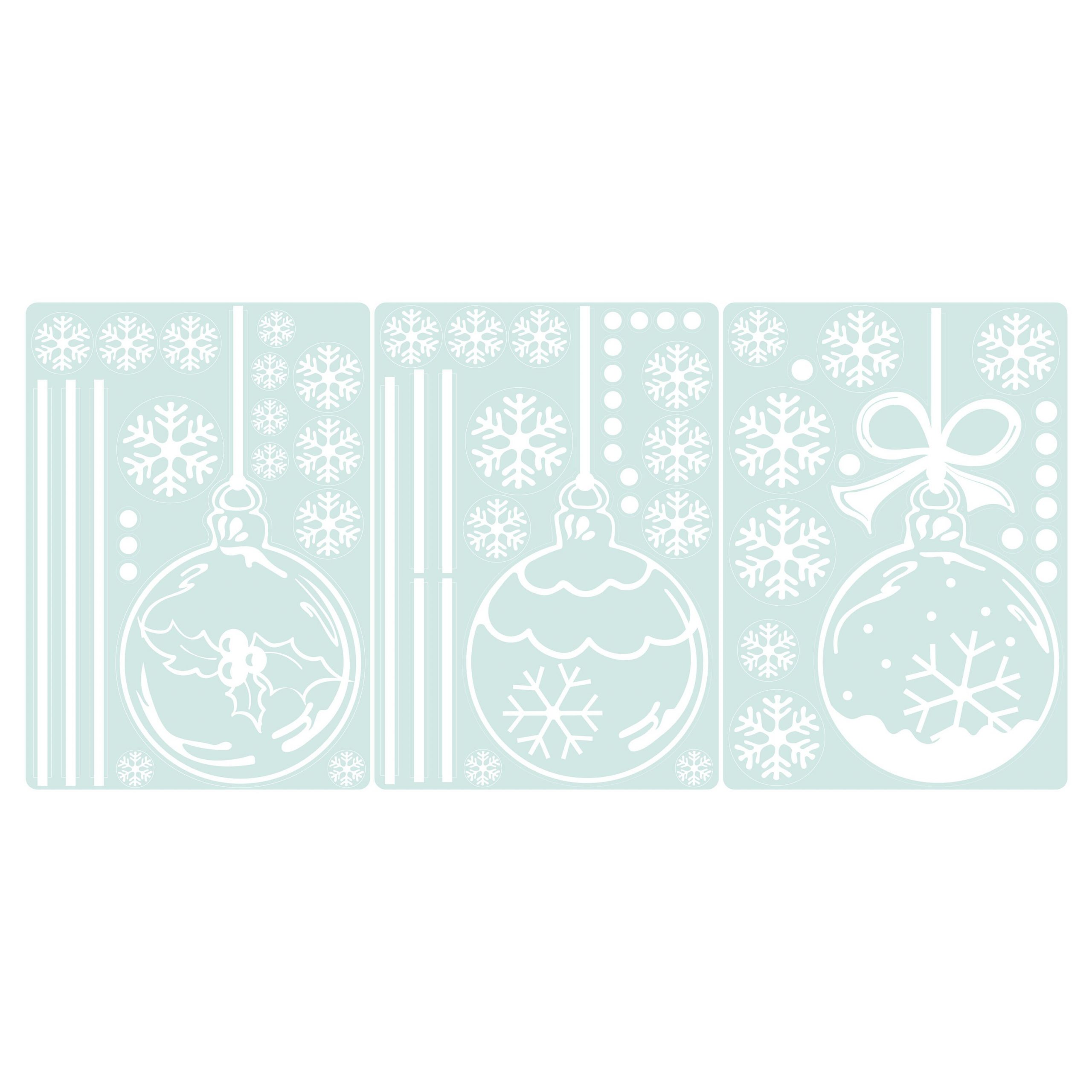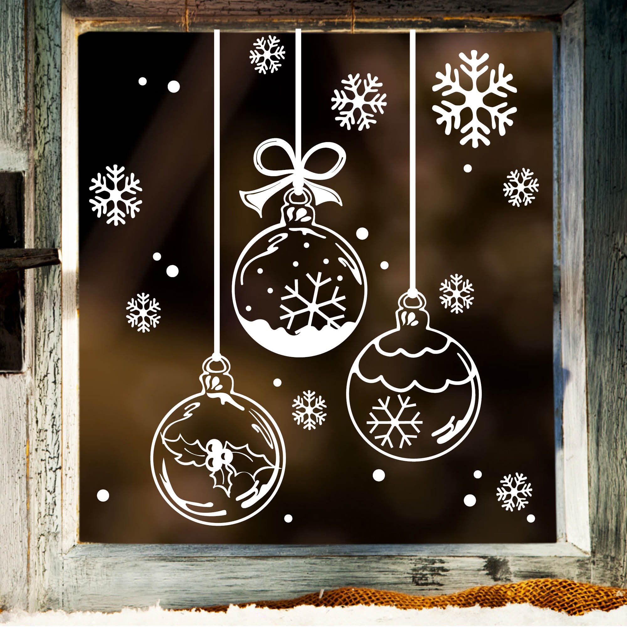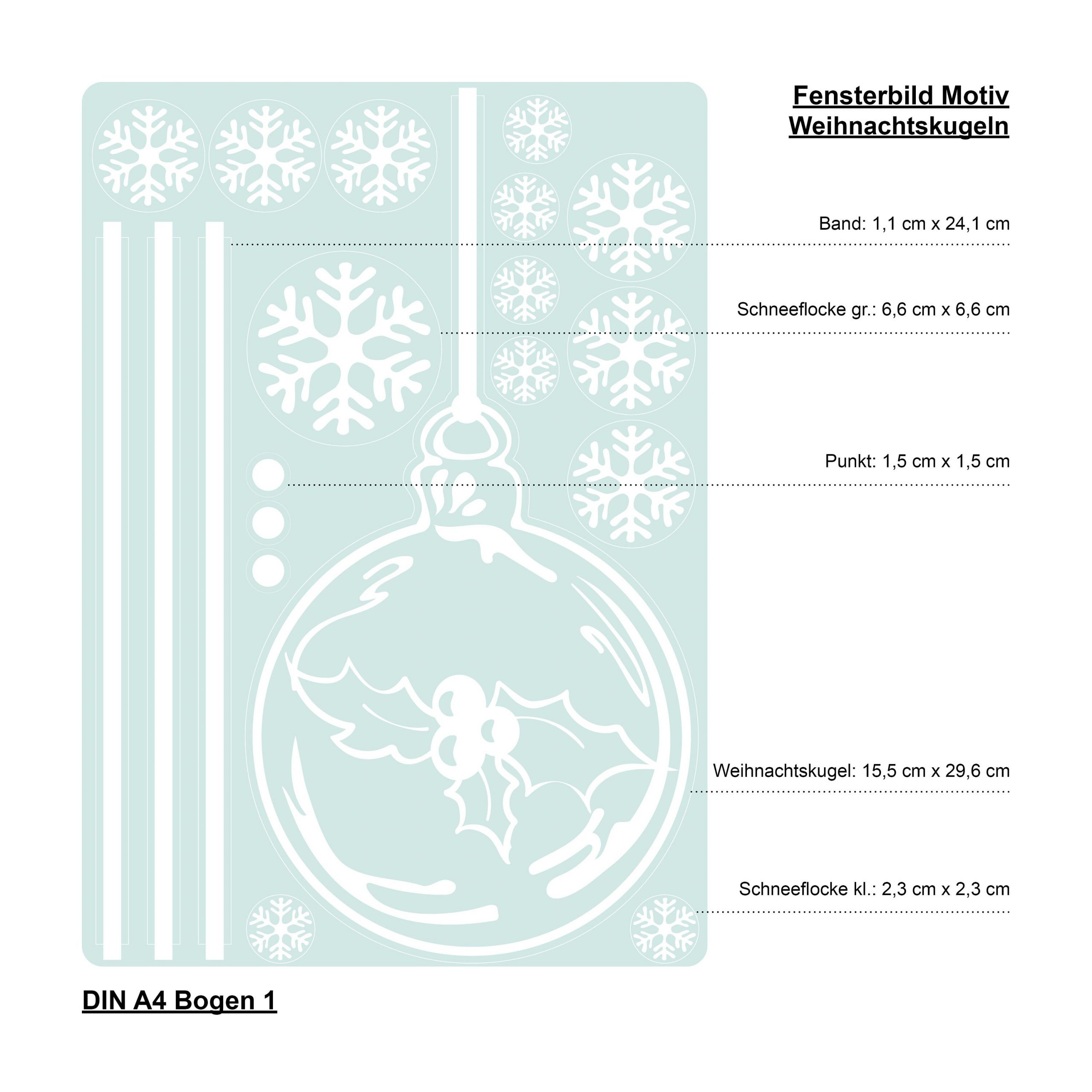 Fensterbild Weihnachten Winter Weihnachtskugeln Schneeflocken wiederverwendbar Fensterdeko Advent