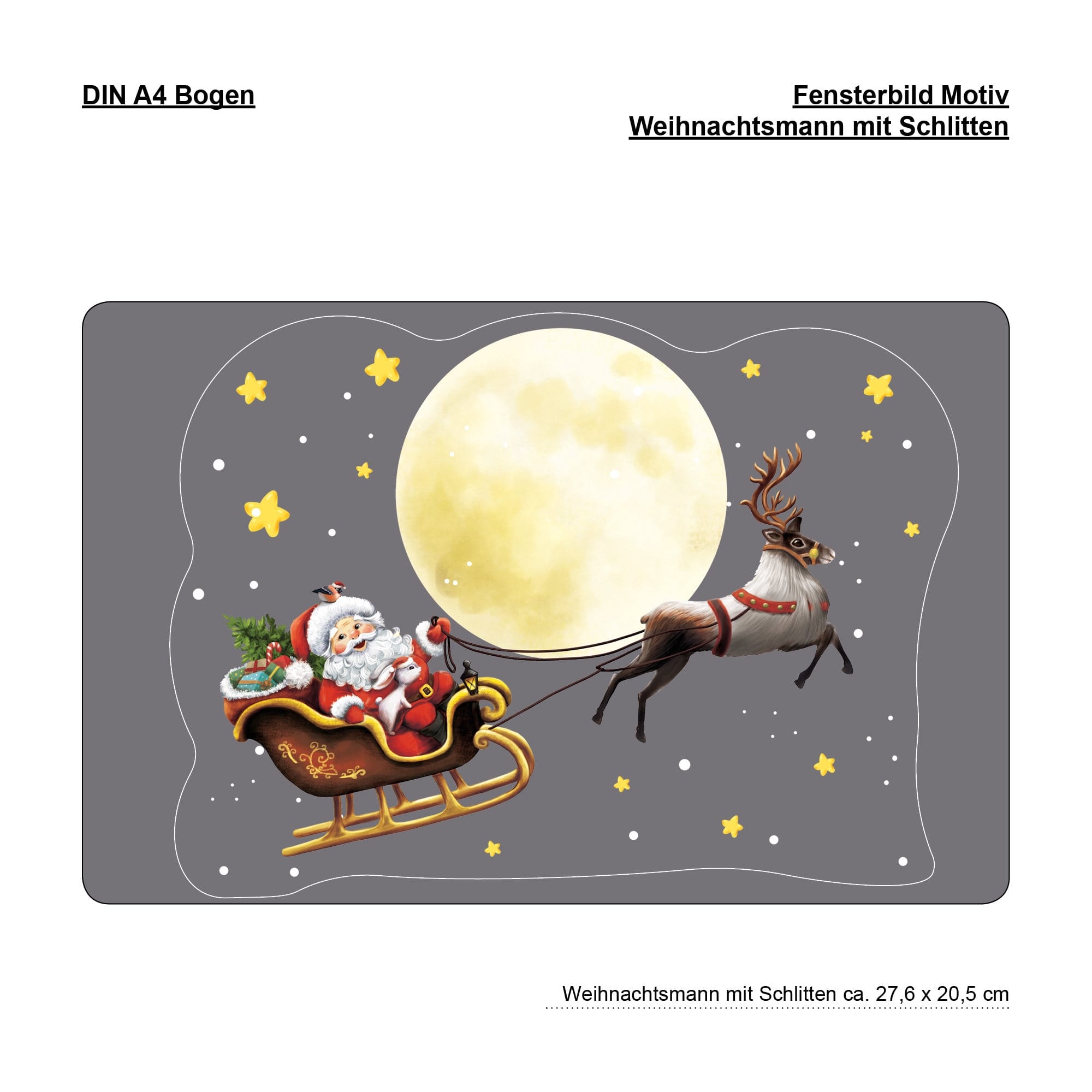 Fensterbild Weihnachten Winter Weihnachtsmann Schlitten Elch Rentier Fensterdeko Kinder