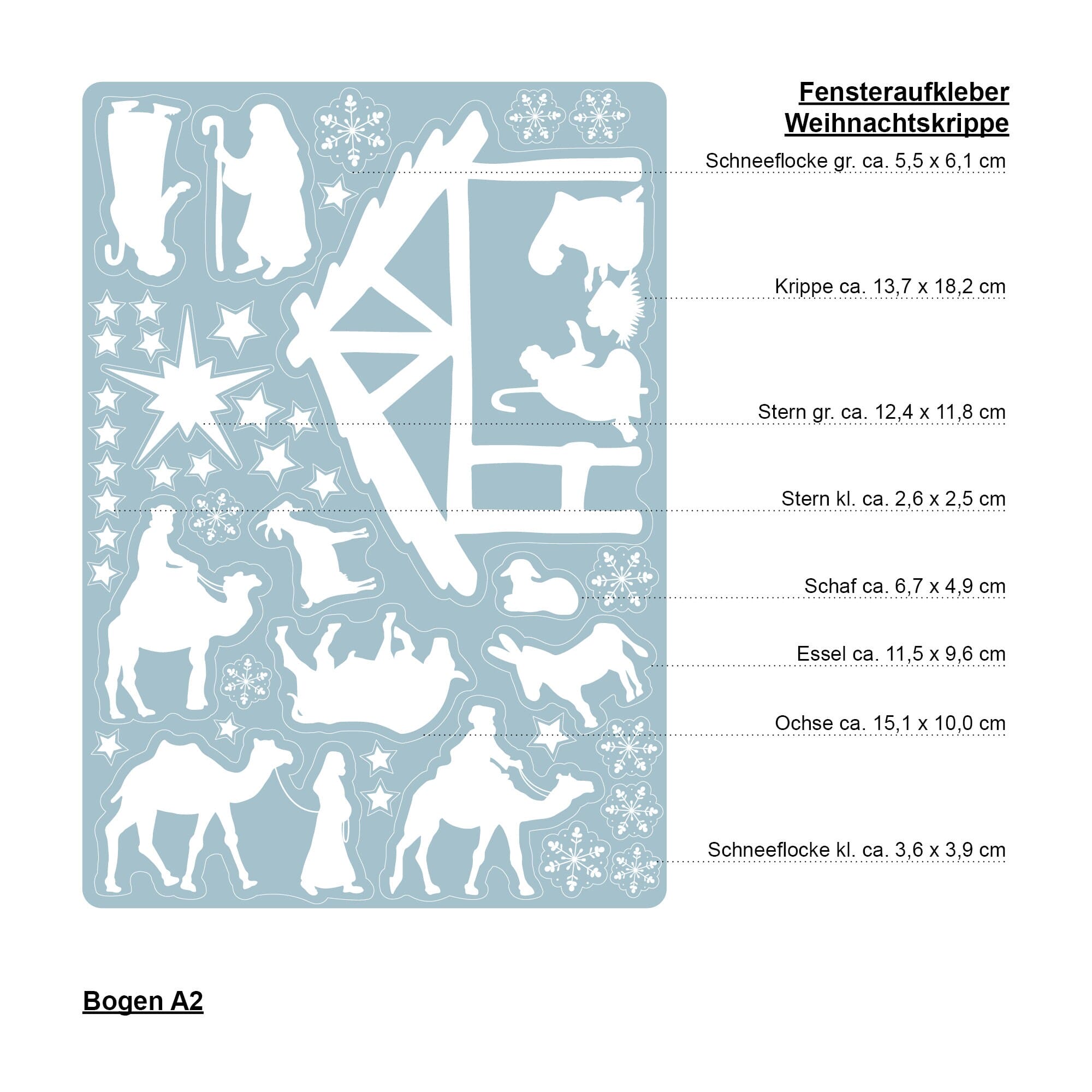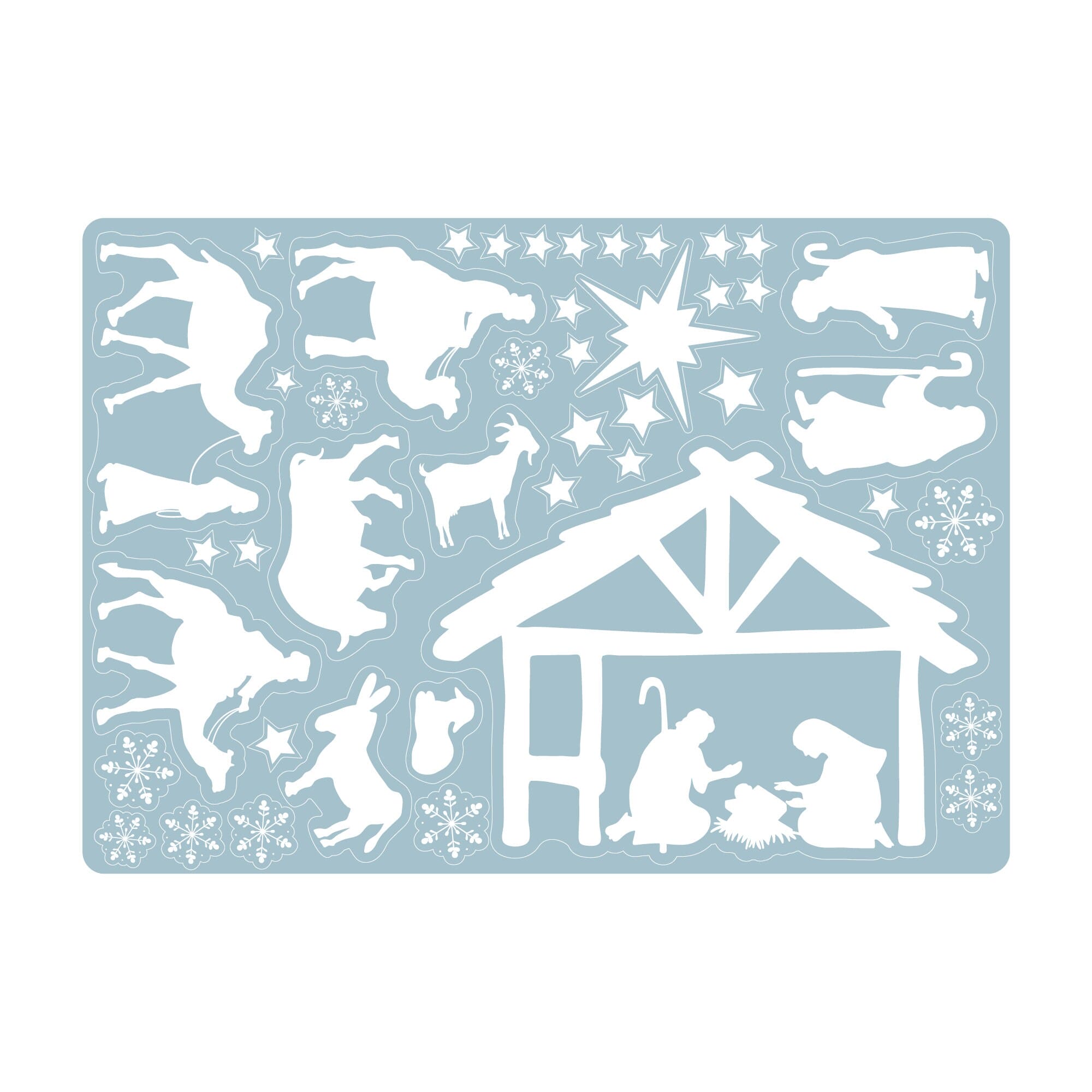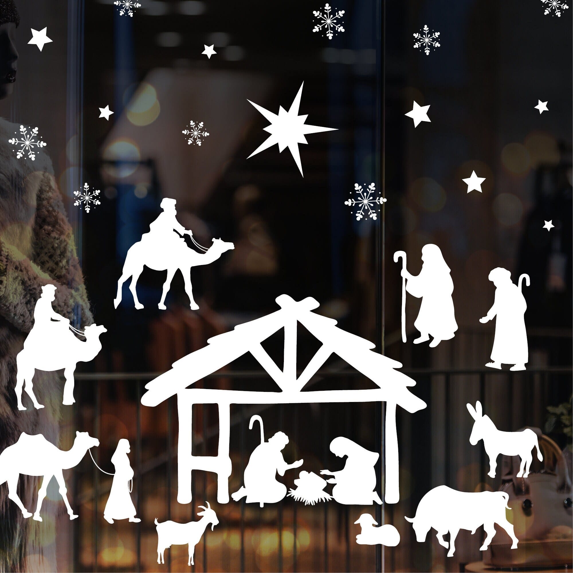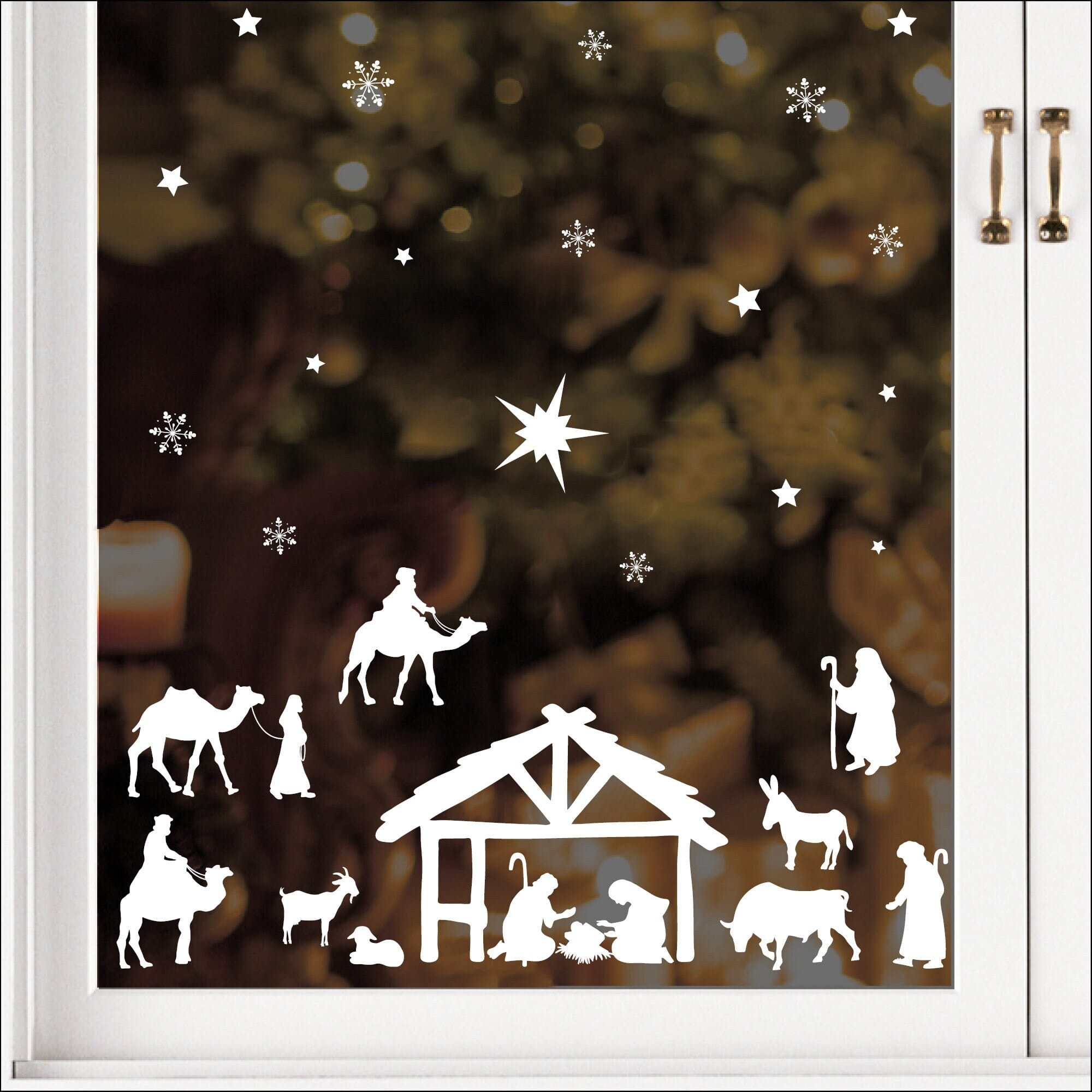 Fensterbild Weihnachten Winter weiße Krippe, Fensteraufkleber, Weihnachtsdekoration wiederverwendbar