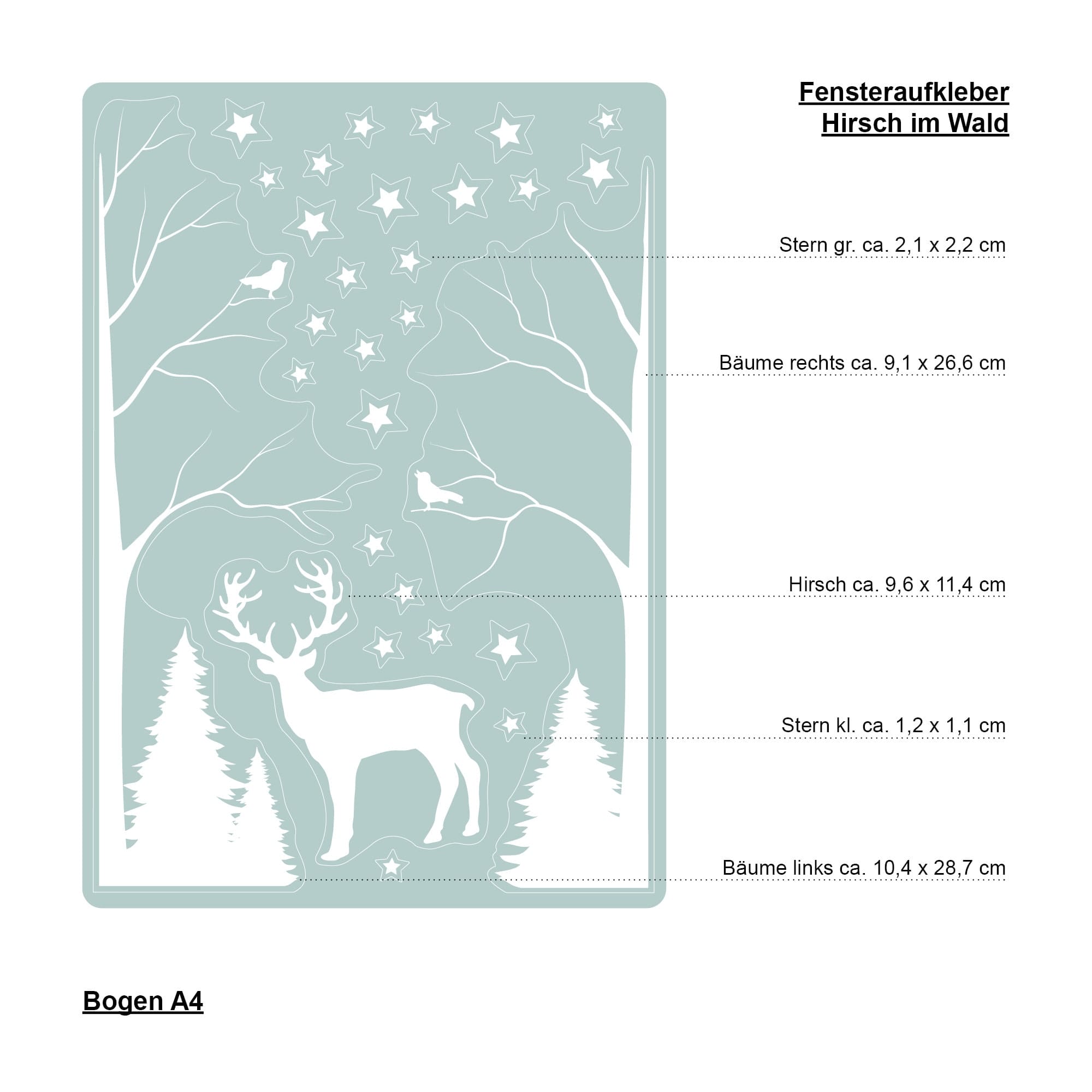 Fensterbild Weihnachten Winter weißer Hirsch mit Bäumen, Fensteraufkleber, Weihnachtsdekoration wiederverwendbar