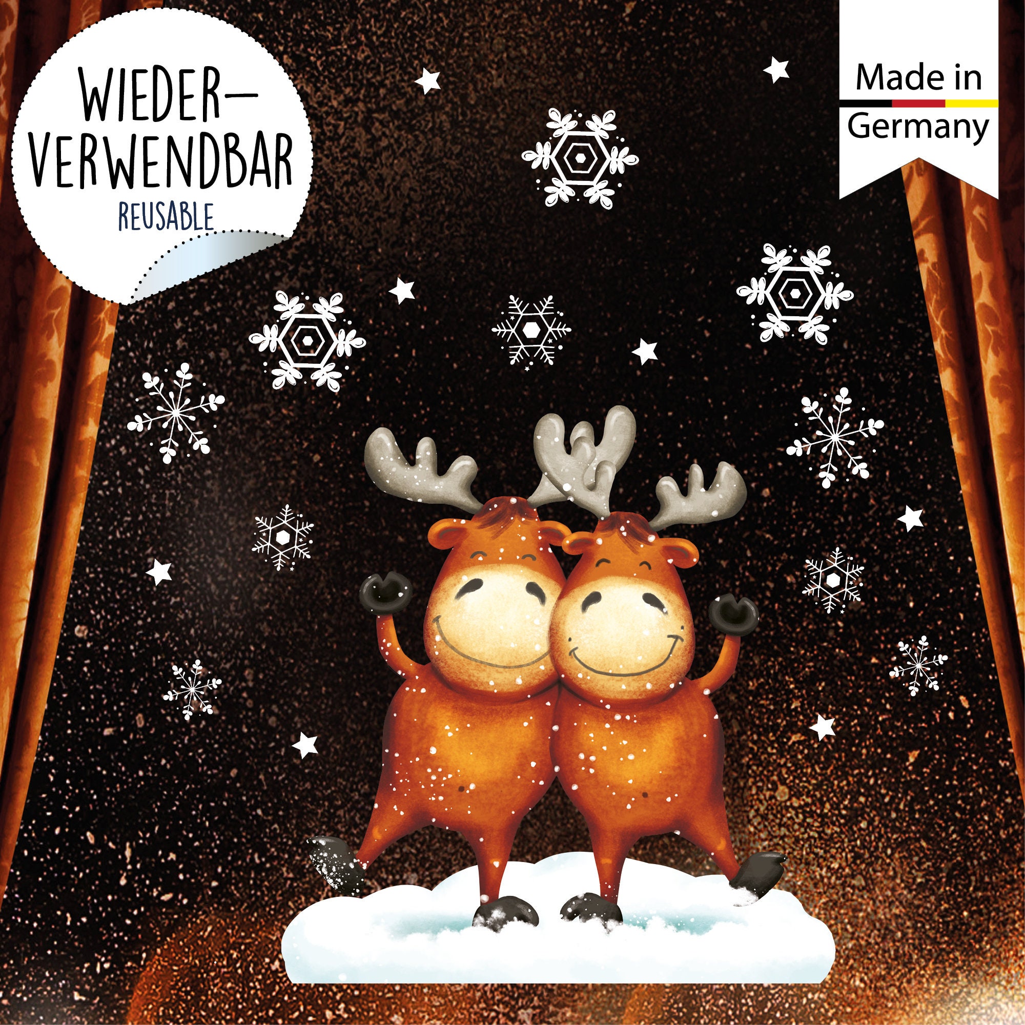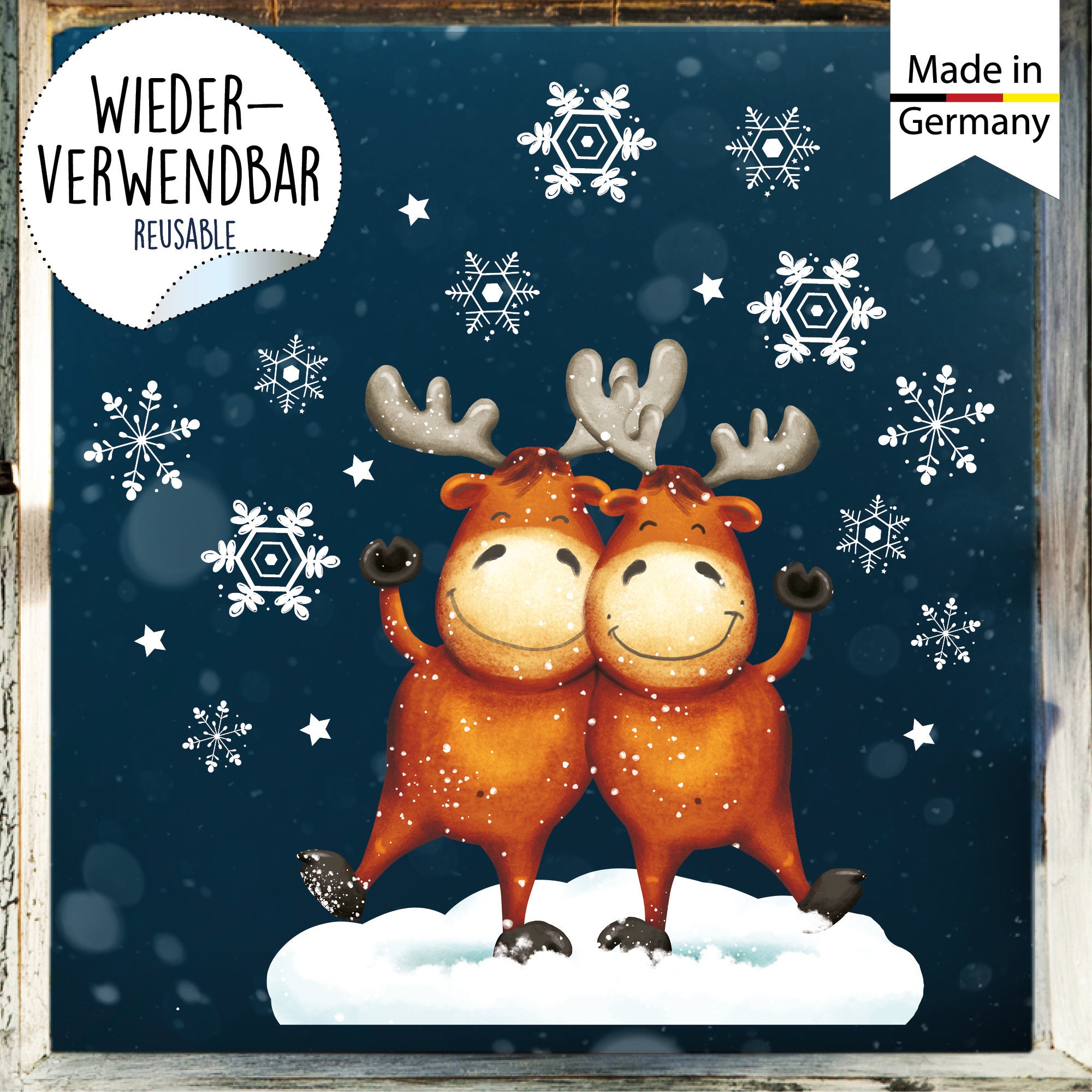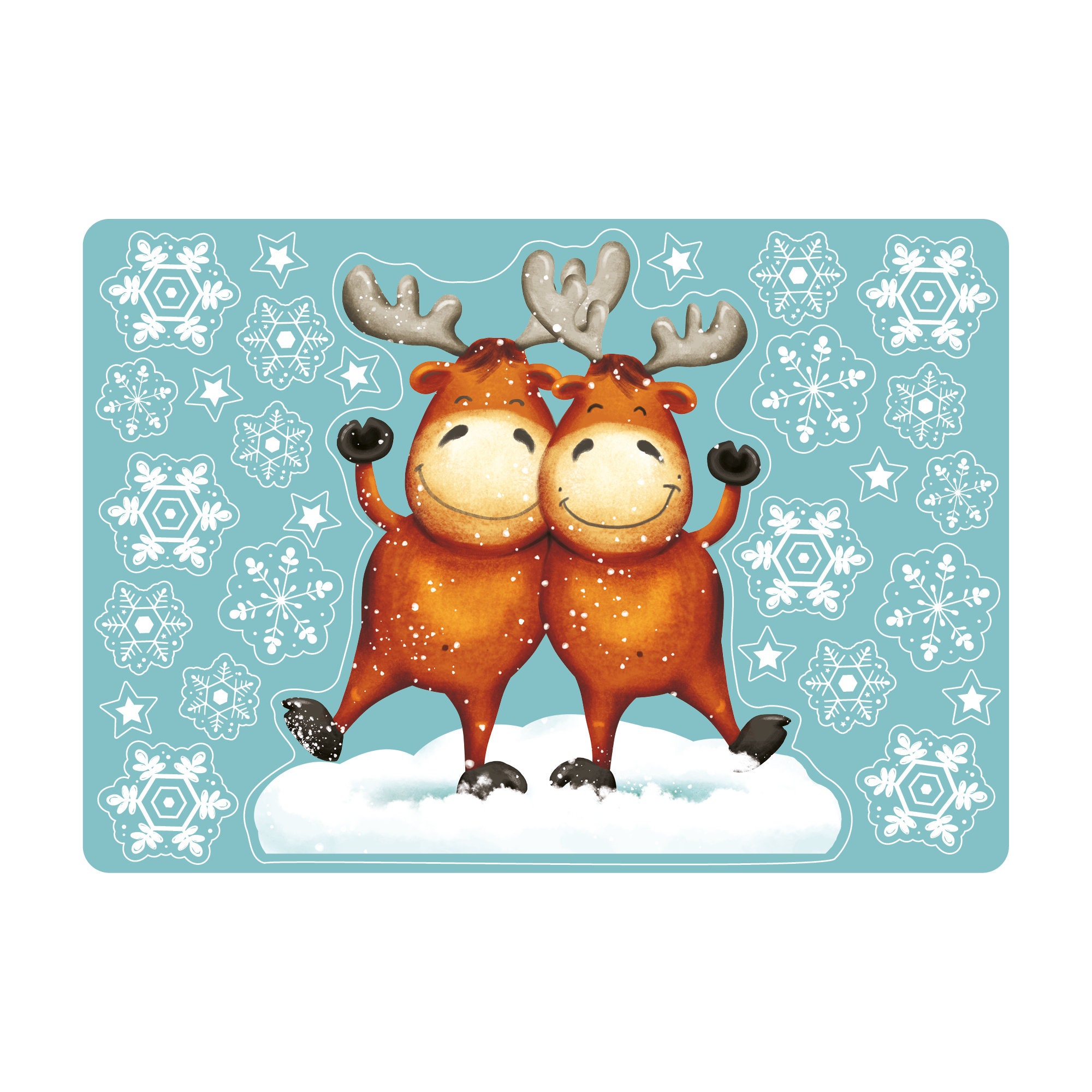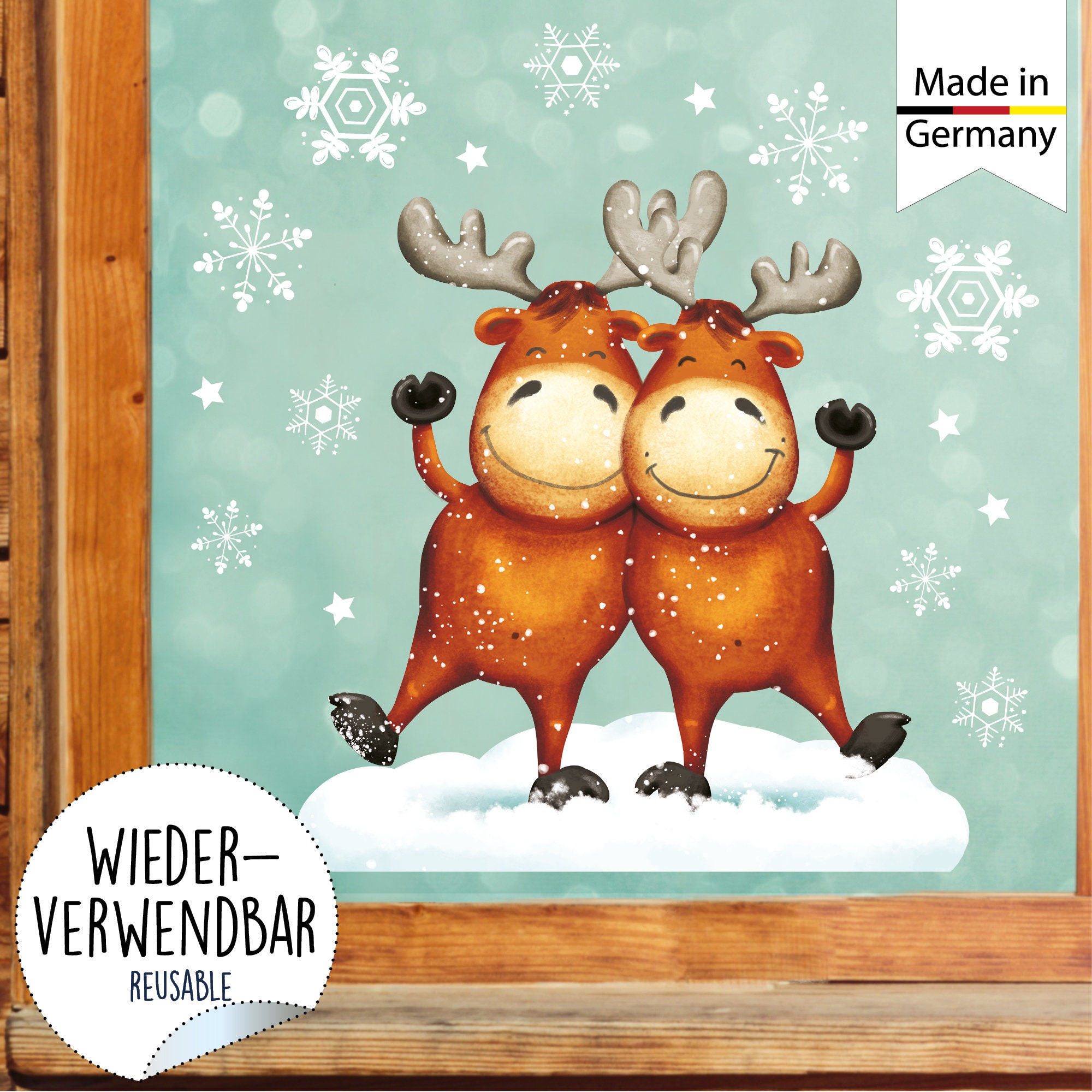 Fensterbild Weihnachten Winter wiederverwendbar Elche Weihnachtsdekoration Fensteraufkleber