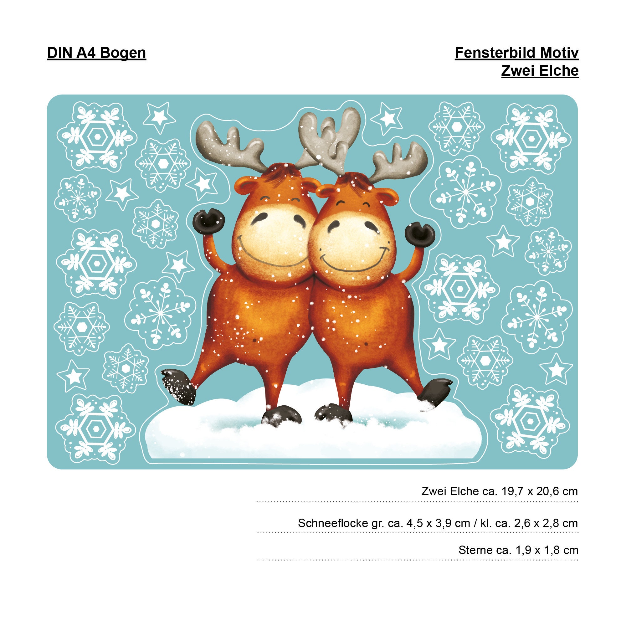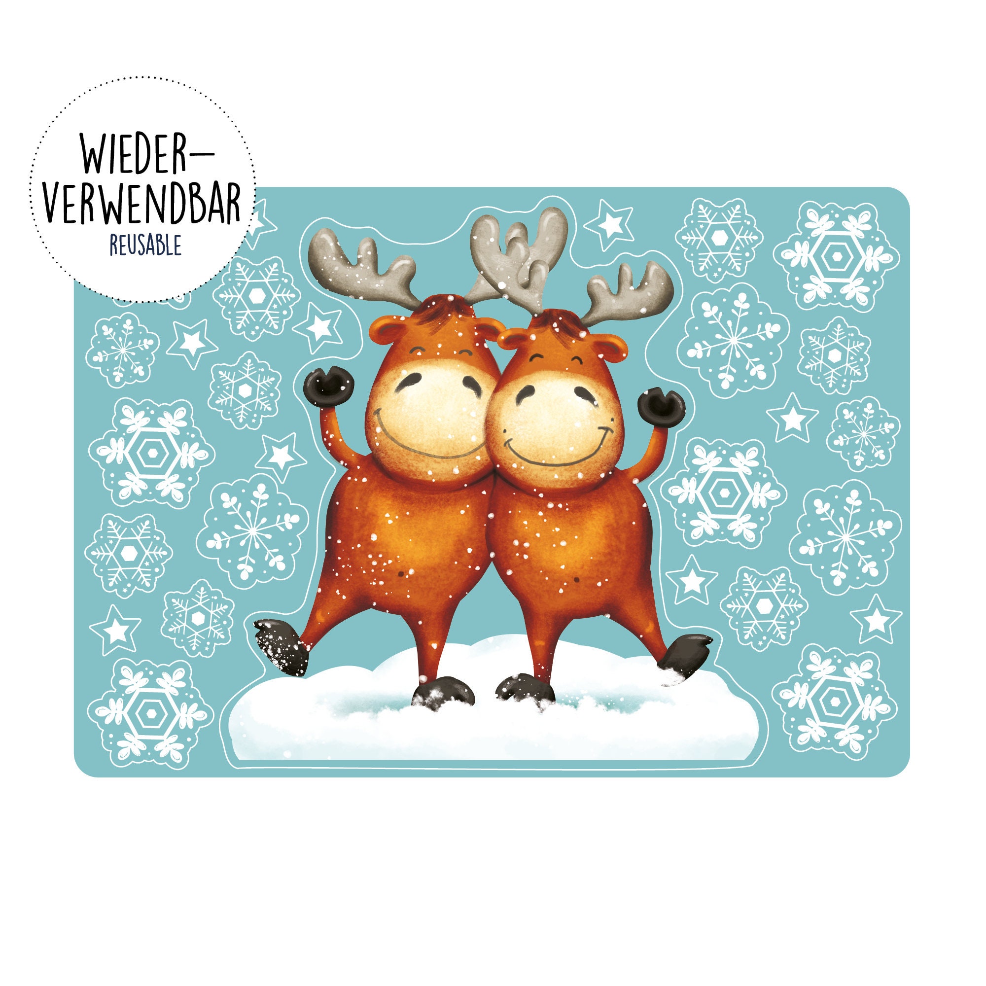 Fensterbild wiederverwendbar Elche, Weihnachtsdekoration