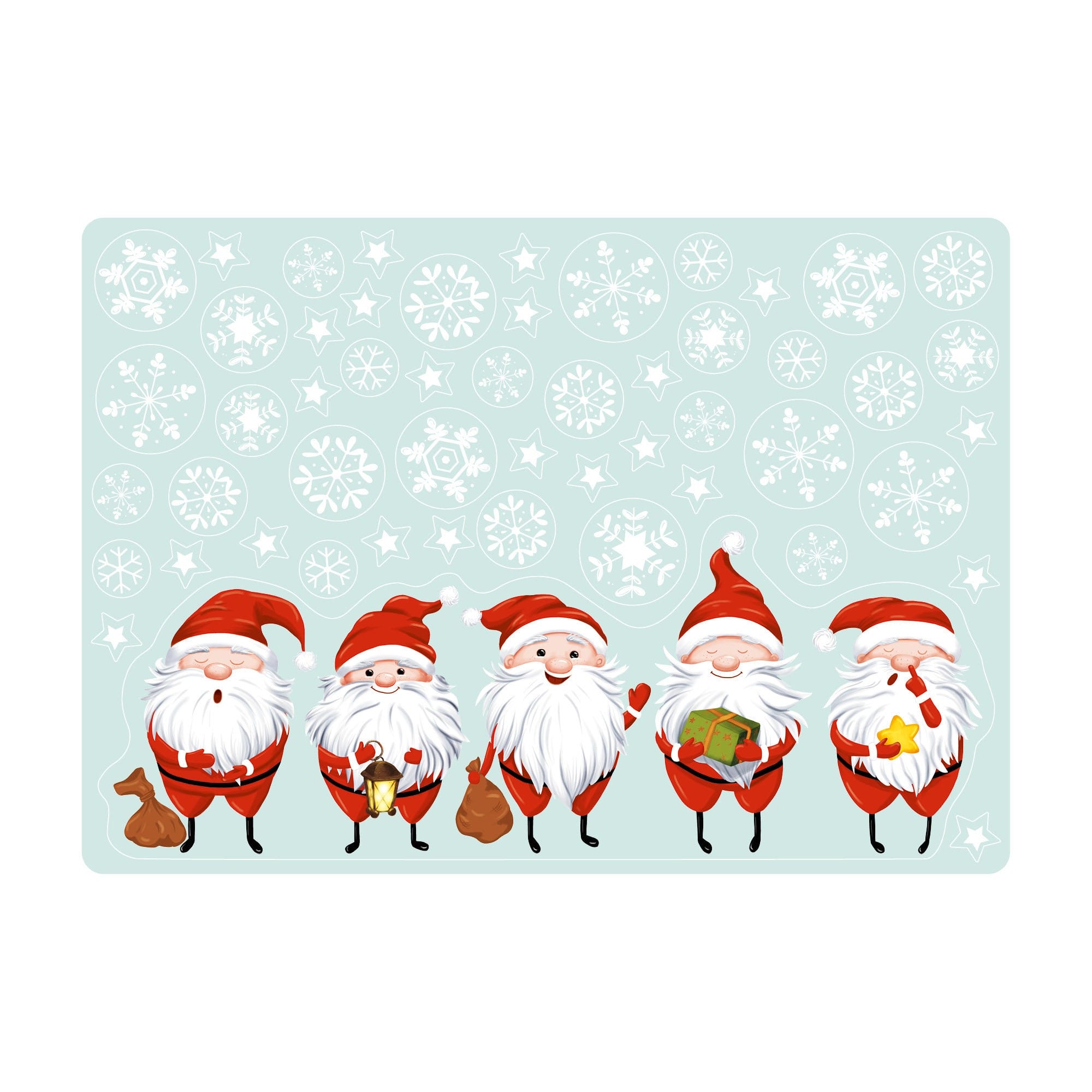 Fünf, die sich verstehen – 5 Lustige Weihnachtsmänner Fensteraufkleber mit Schneeflocken