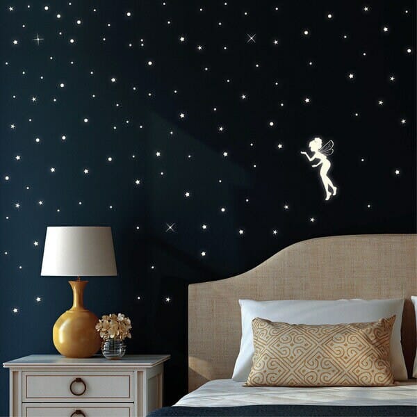 Auf dem Bild ist das Produkt: Fluoreszierende Leuchtaufkleber Elfe mit Sternen und Punkten, nachtleuchtende Wandaufkleber für das Kinderzimmer zum Preis von €14.9 abgebildet.