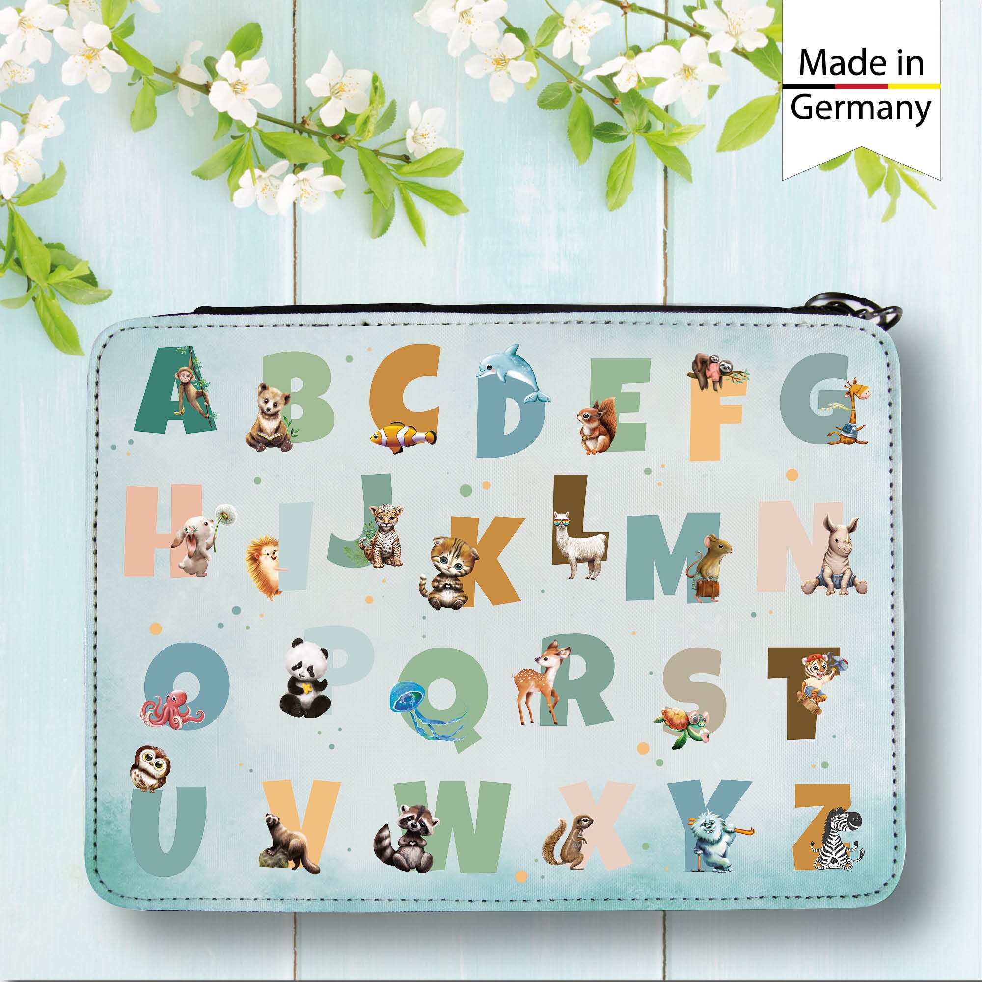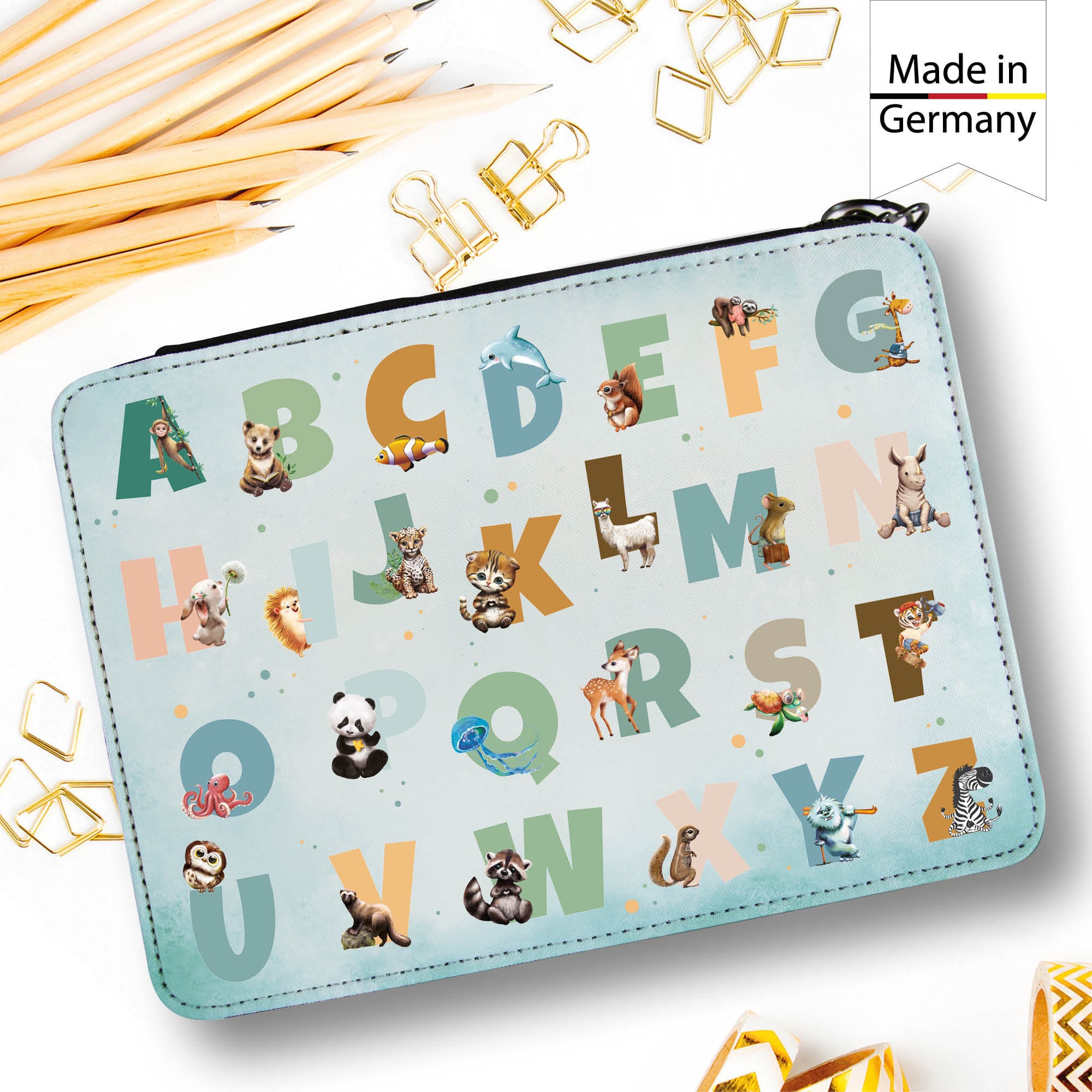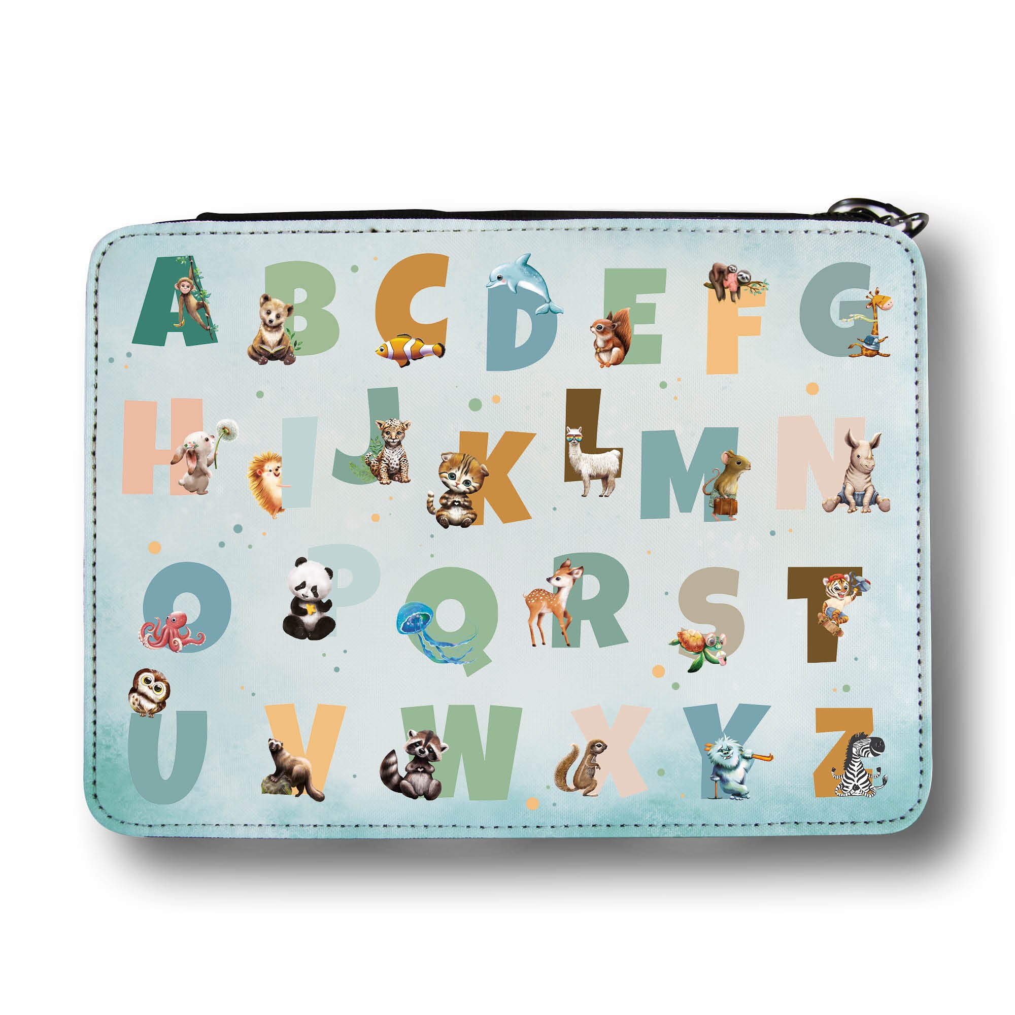 Diese zauberhaft gestaltete Federmappe ist mit dem Alphabet und Tieren versehen und bietet eine Menge Platz für Stifte und Schulzubehör.