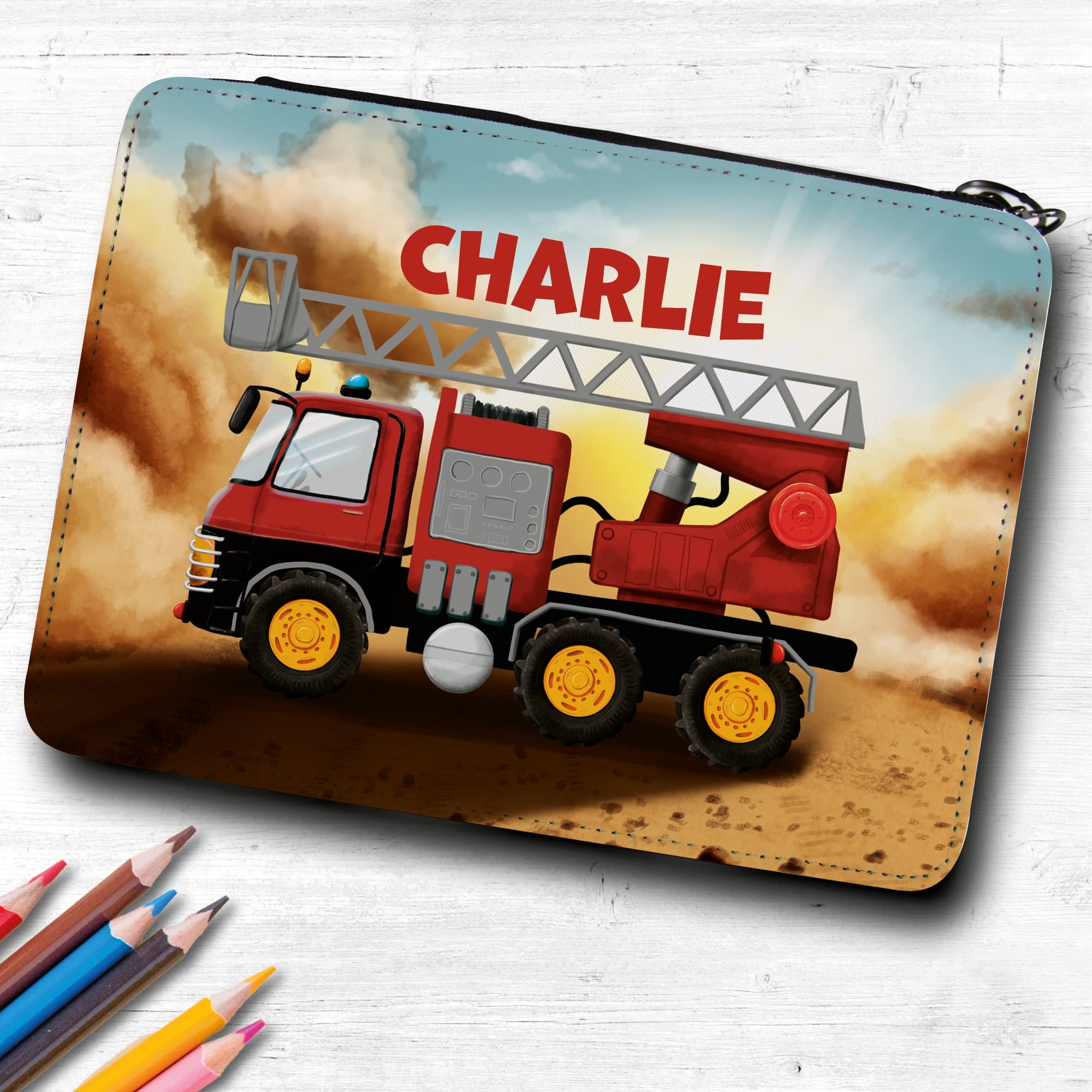 Diese zauberhaft gestaltete Federmappe mit einem roten Feuerwehrauto kann auf Wunsch – ohne Aufpreis- mit einem Wunschnamen personalisiert werden und bietet eine Menge Platz für Stifte und Schulzubehör.