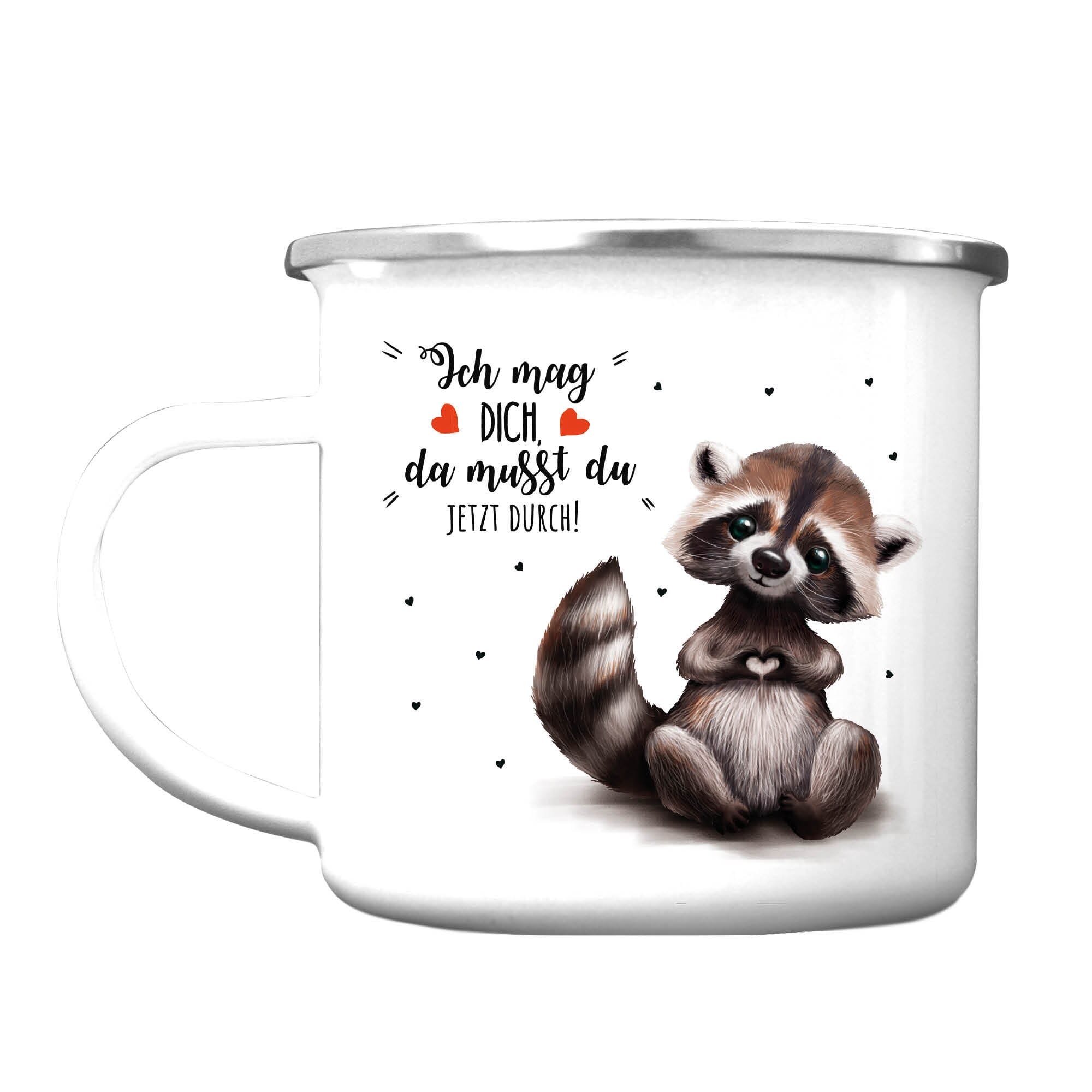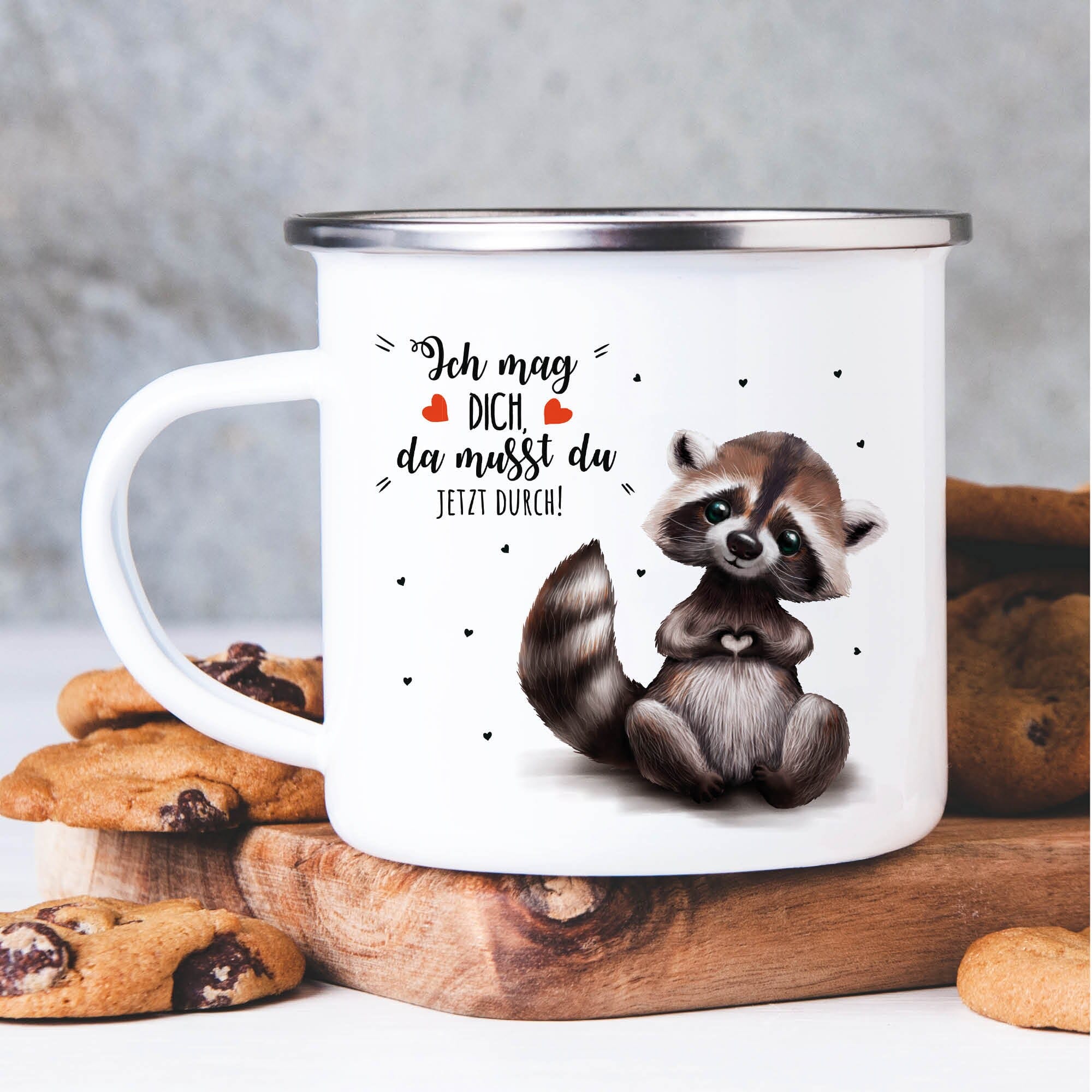 Emaille Campingbecher Waschbär Ich mag dich. Da musst du jetzt durch Kaffeebecher, Geschenk Geburtstag