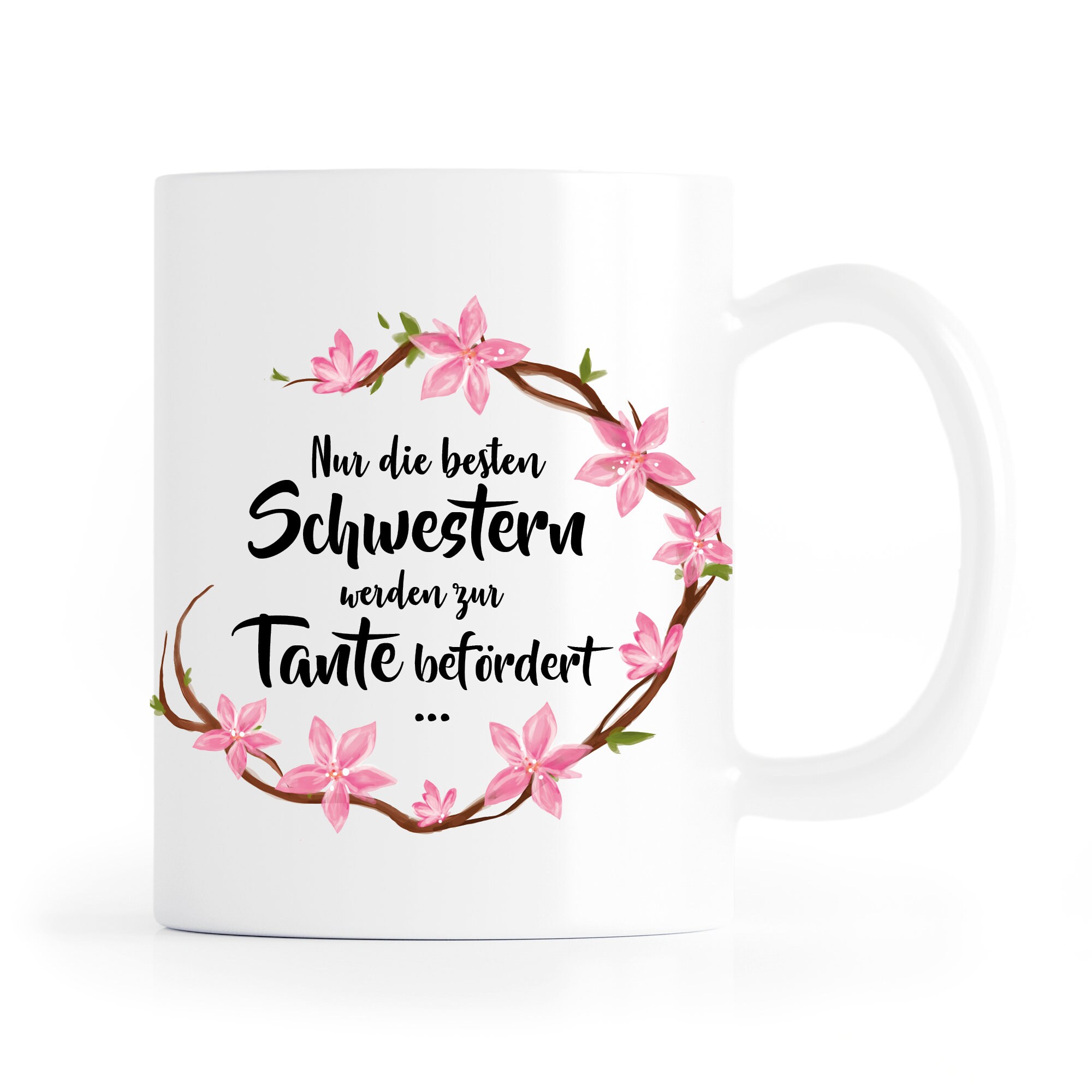 Die Kaffeetasse “Nur die allerbesten Schwestern werden zur Tante befördert…