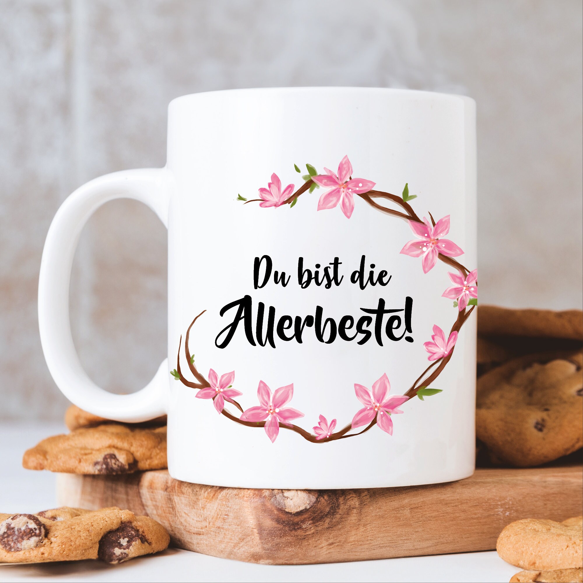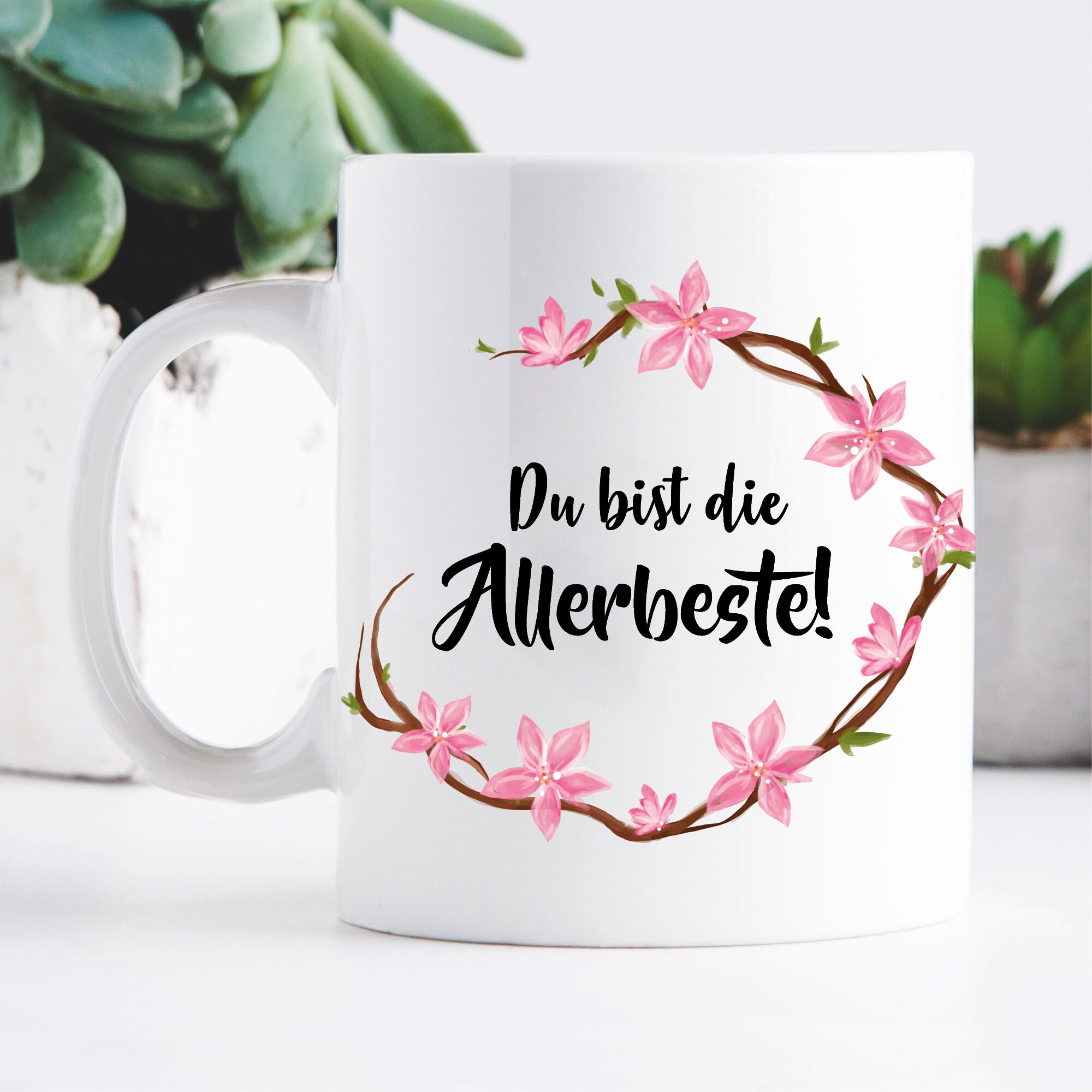 Geschenk Keramik Tasse bedruckt Beste Schwester Tante spülmaschinenfest 330 ml Fassungsvermögen