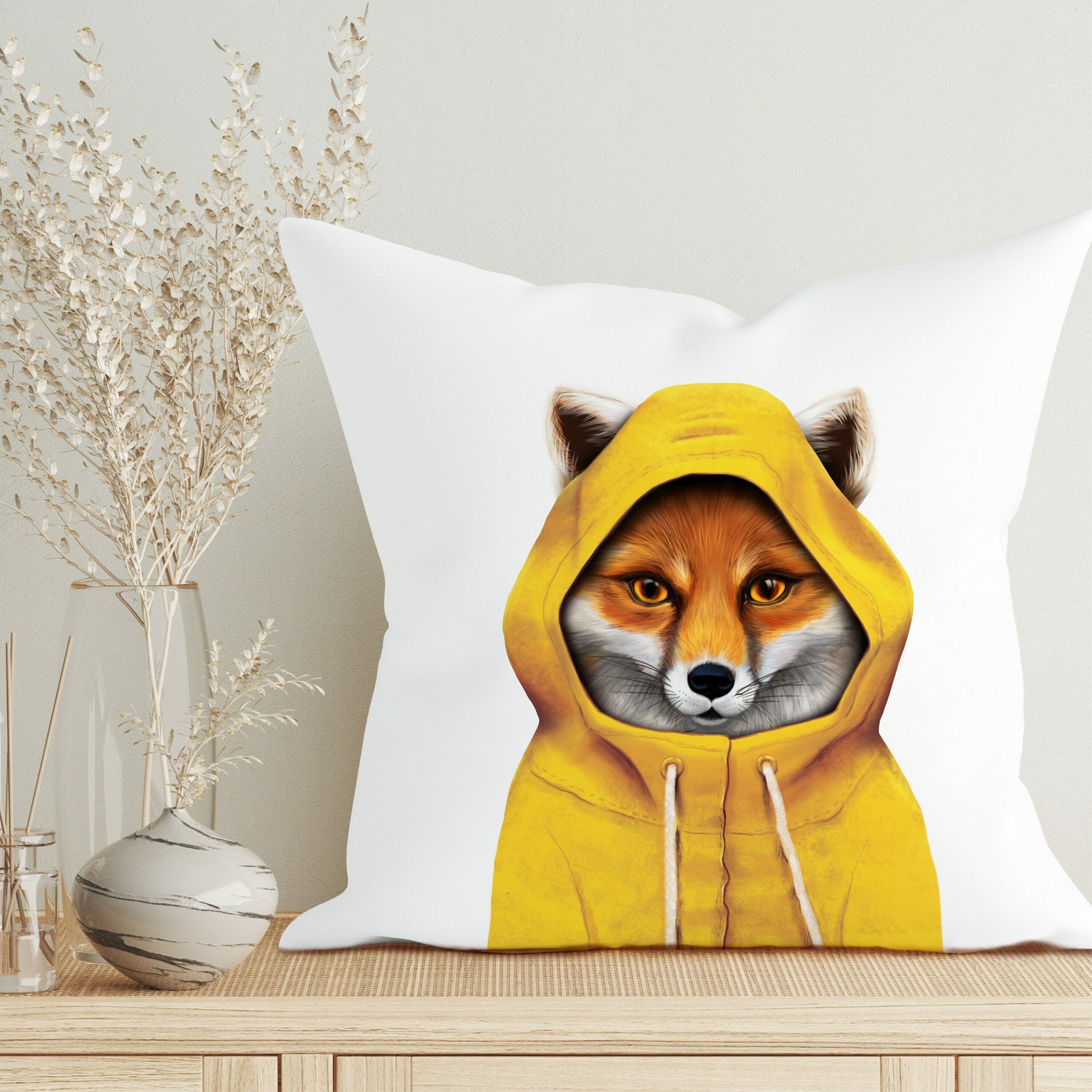 Verschenke das Kissen mit dem süßen Fuchs im Regenmantel an einen tierlieben Menschen.
