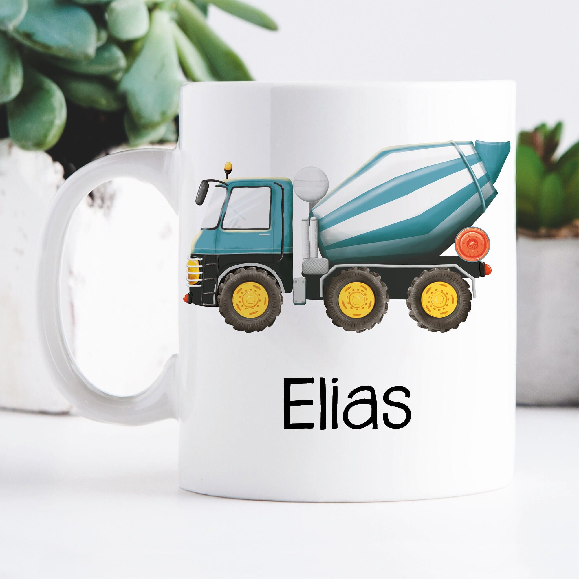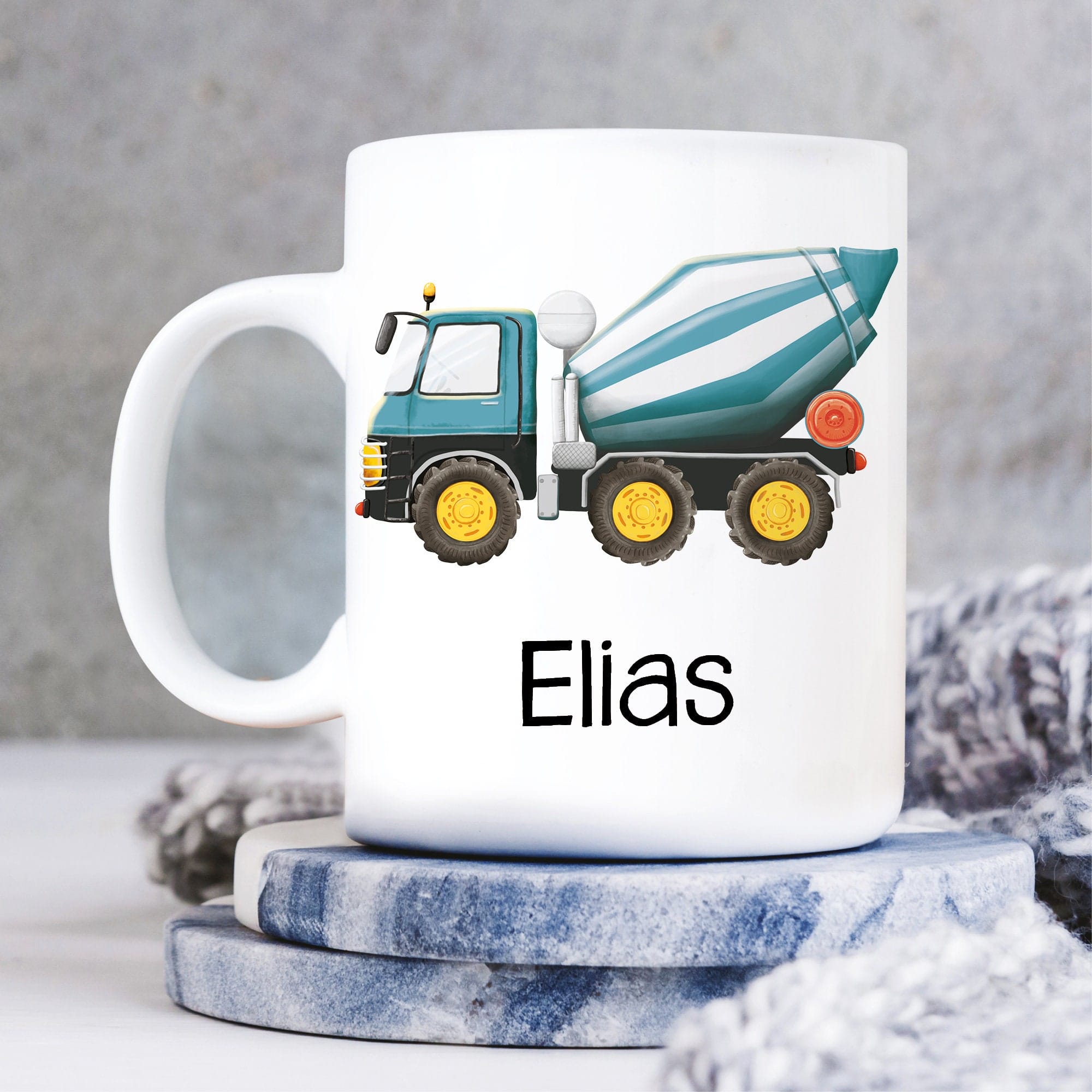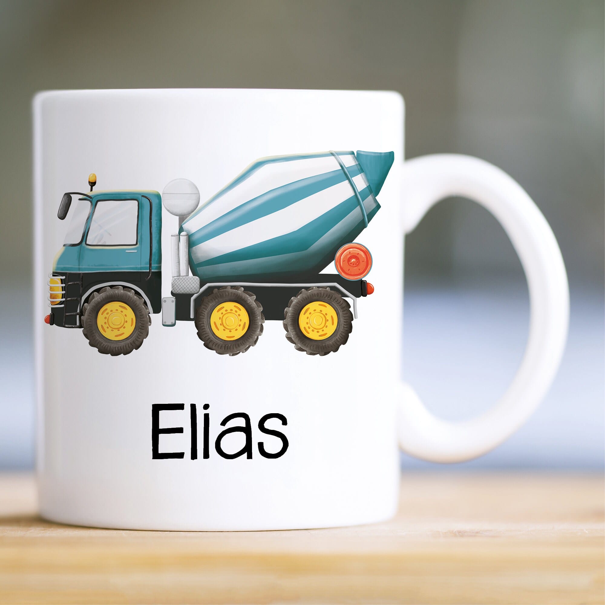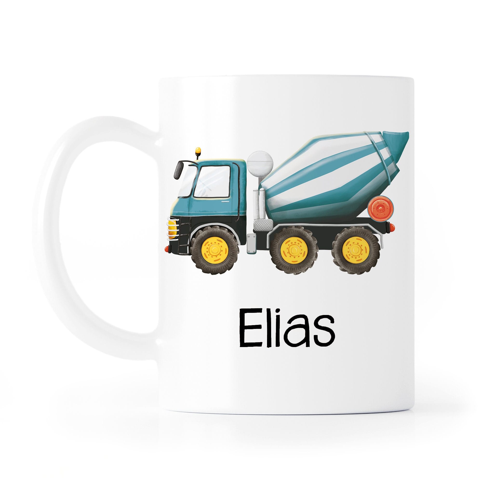 Keramik Tasse bedruckt mit Betonmischer und Wunschname Mischer Kindertasse 330 ml Kaffeetasse