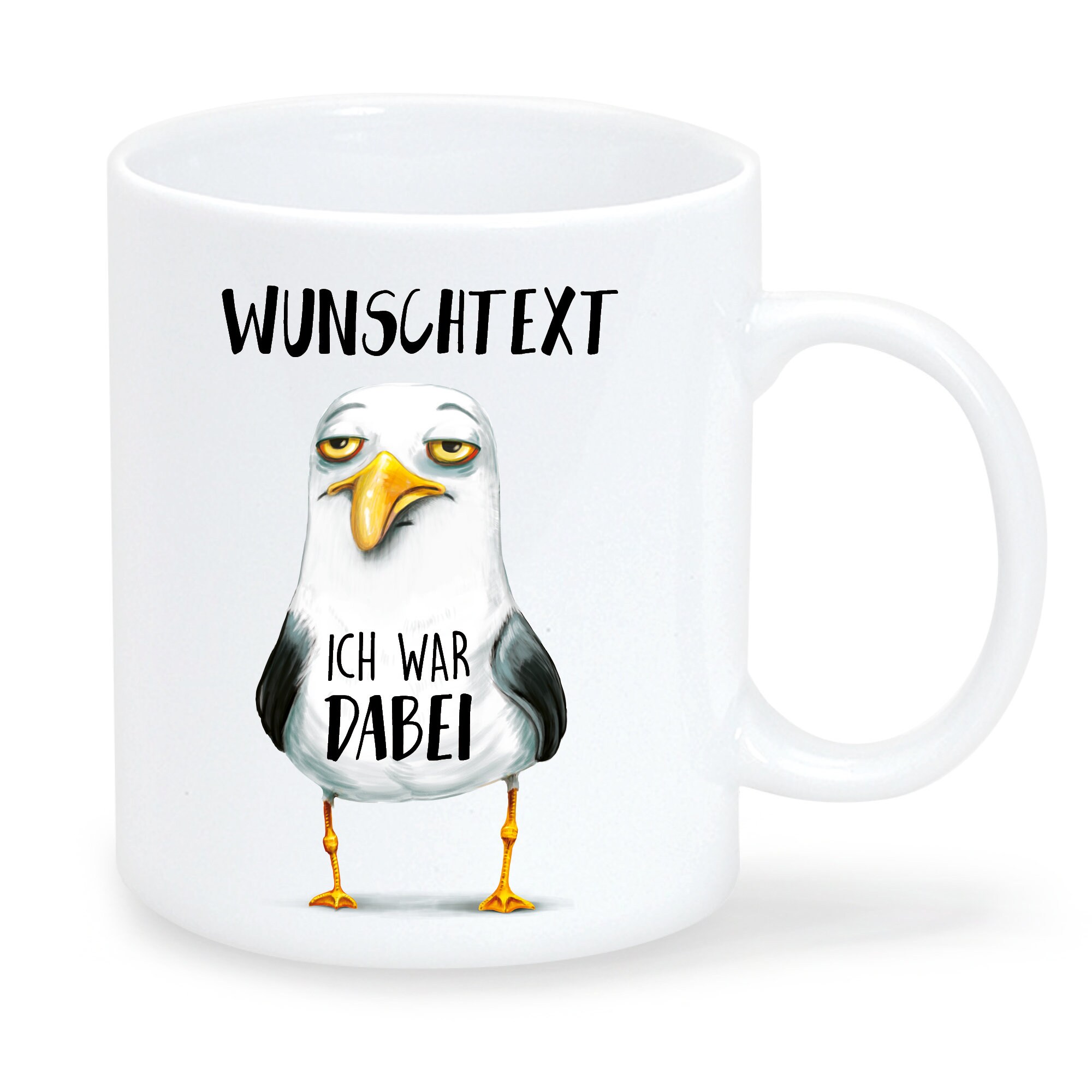 Keramik Tasse Möwe “Wunschtext – ich war dabei” maritim, Geschenkidee
