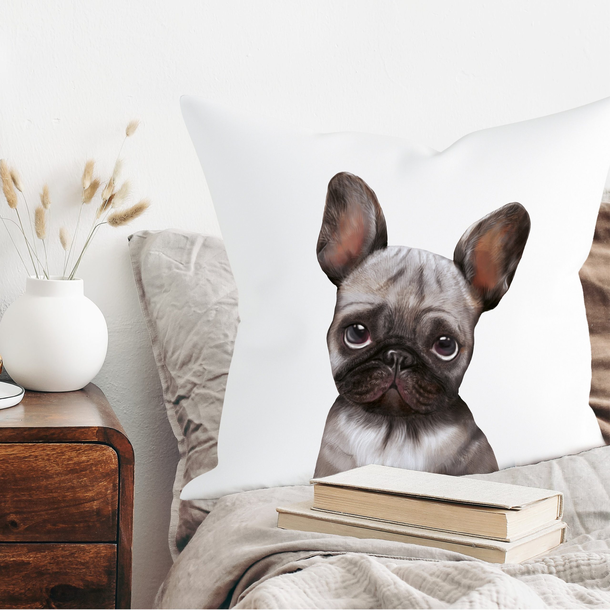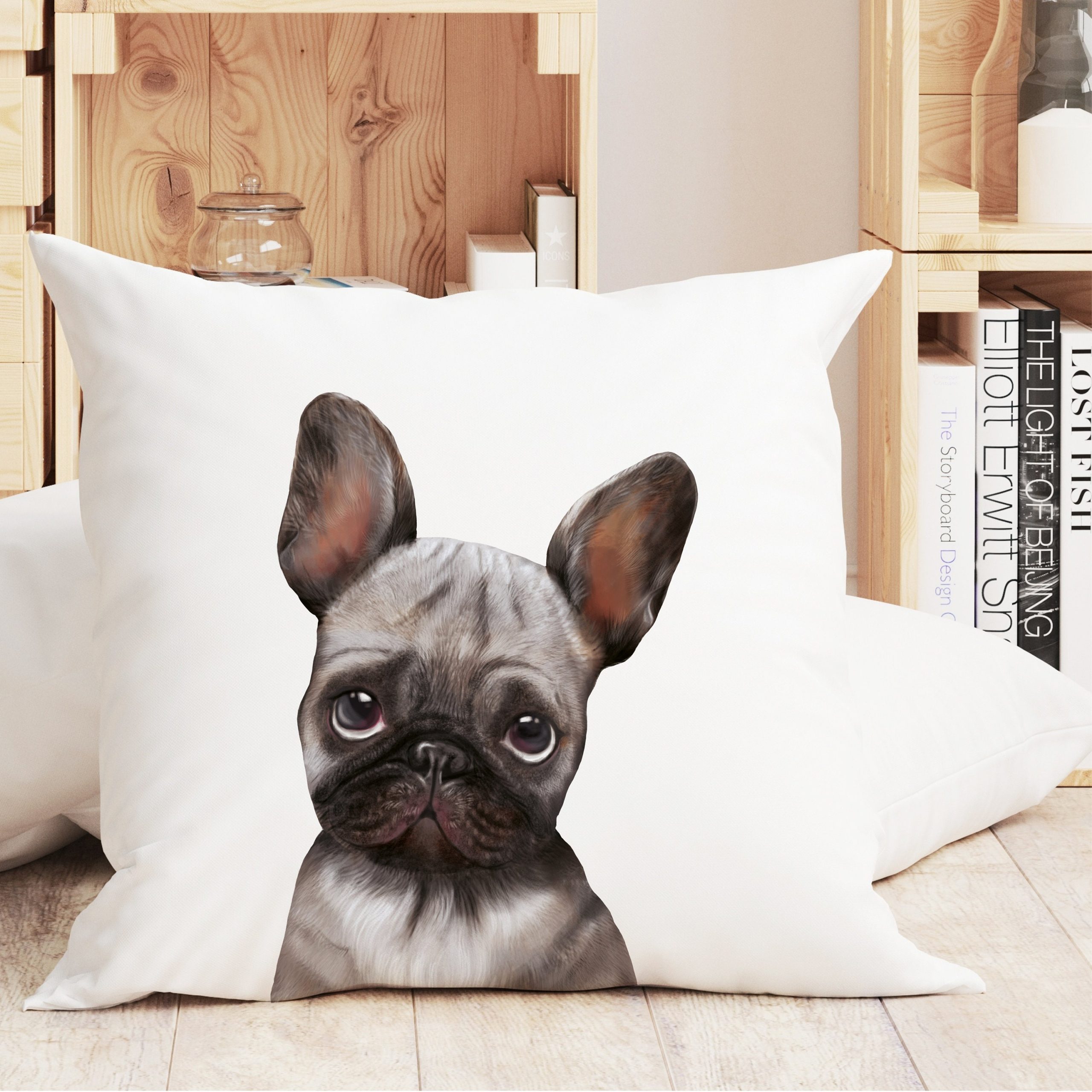 Kissen mit Hundedruck, Französische Bulldogge in braun-weiß, schwarz-weis oder grau-weiß