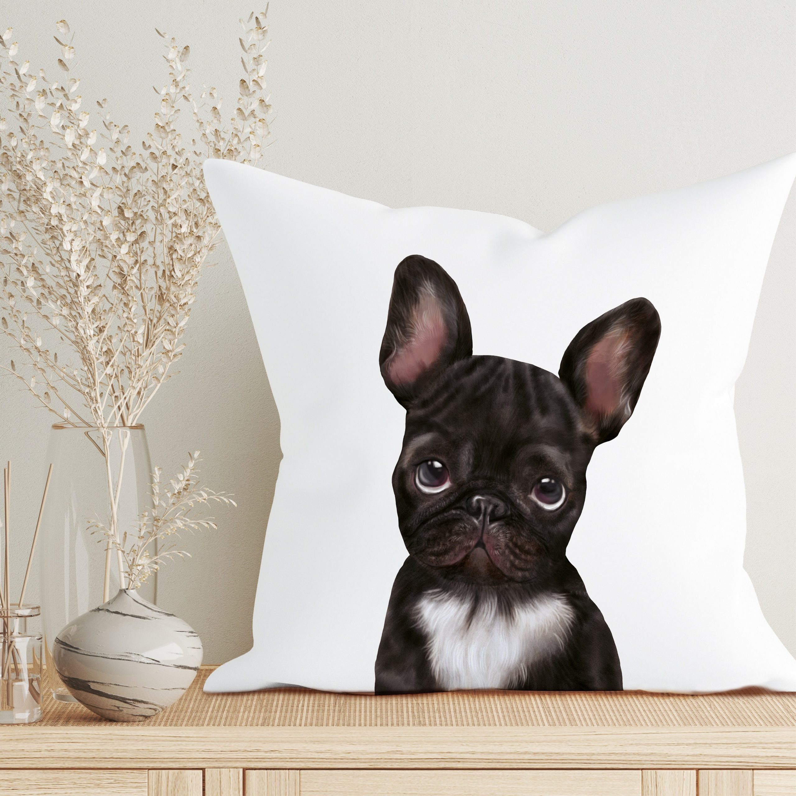 Auf dem Bild ist das Produkt: Kissen bedruckt mit Hund Französische Bulldogge, Geschenk für einen Hundebesitzer zum Preis von €11.90 abgebildet.