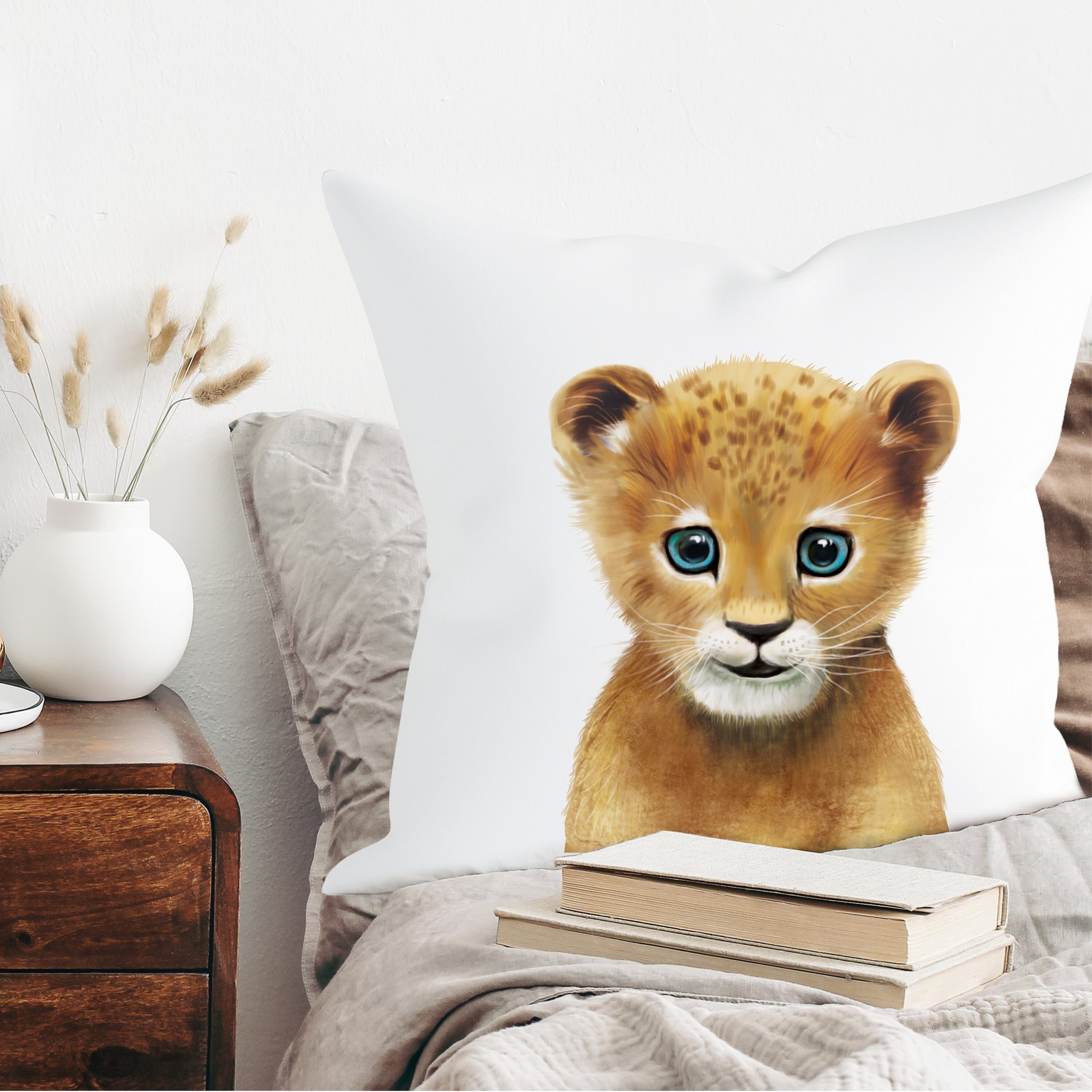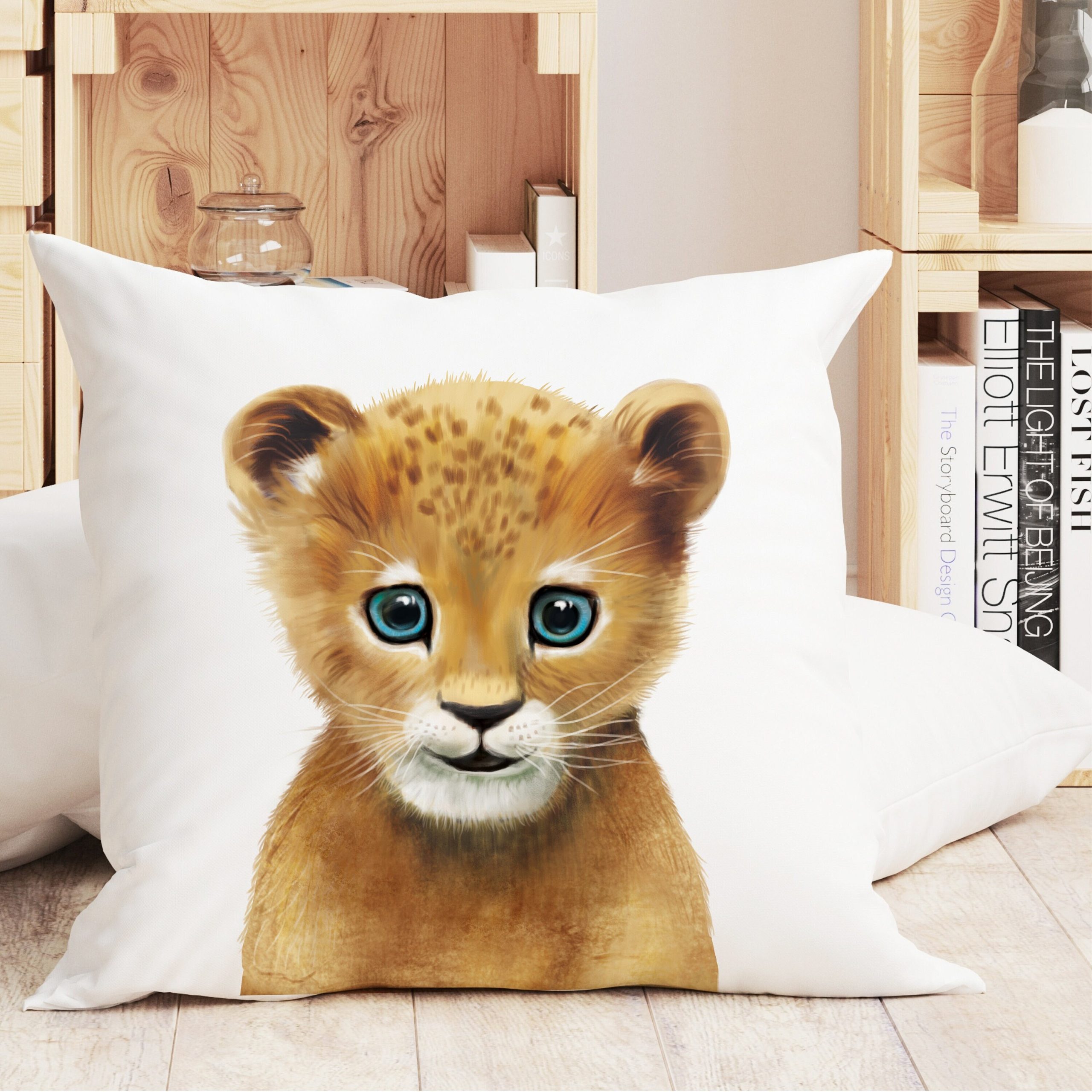 Verschenke das Kissen mit dem niedlichen Löwenjungen an einen tierlieben Menschen.