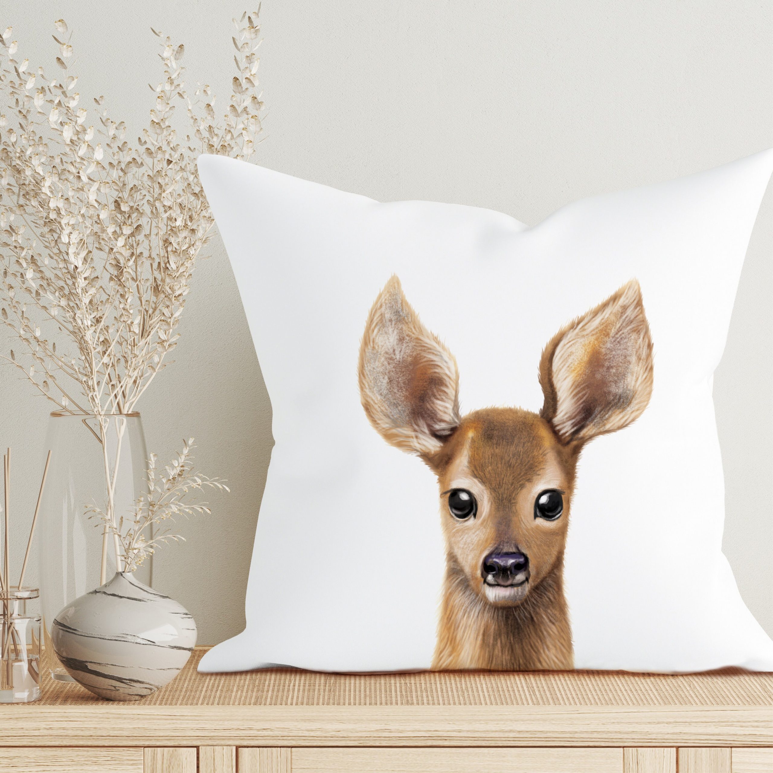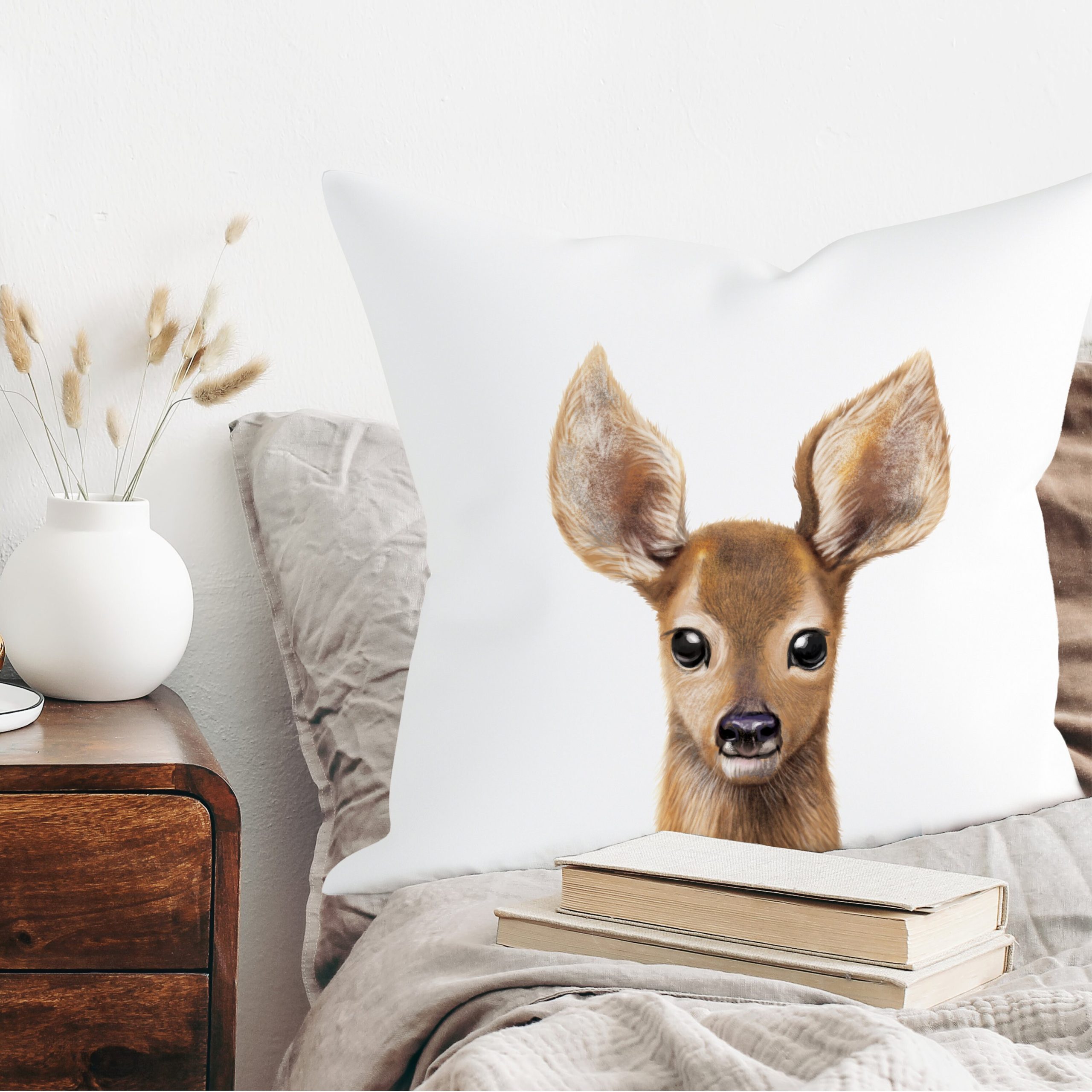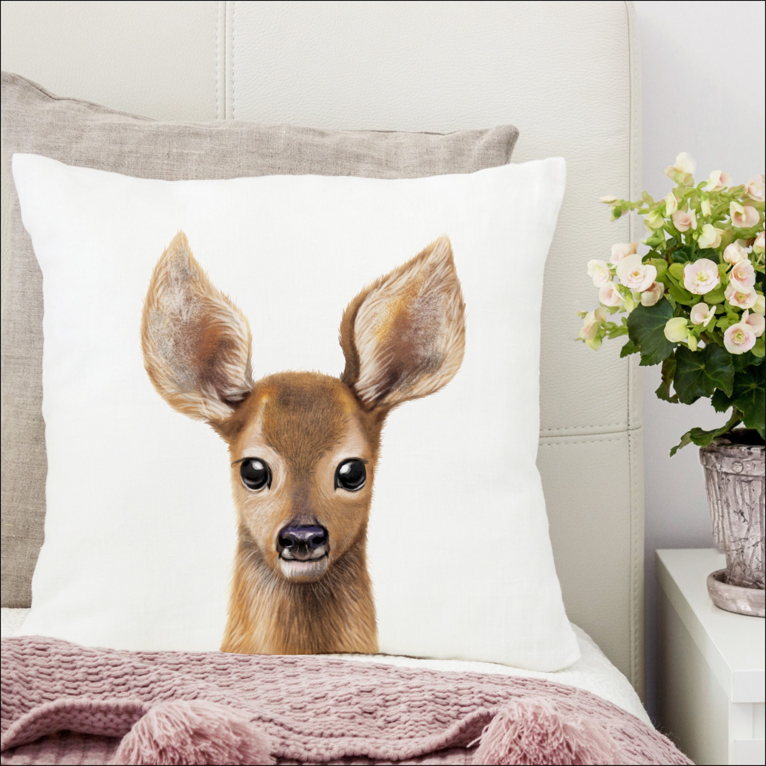 Kissen mit dem Aufdruck eines jungen Rehs