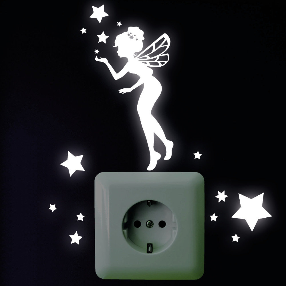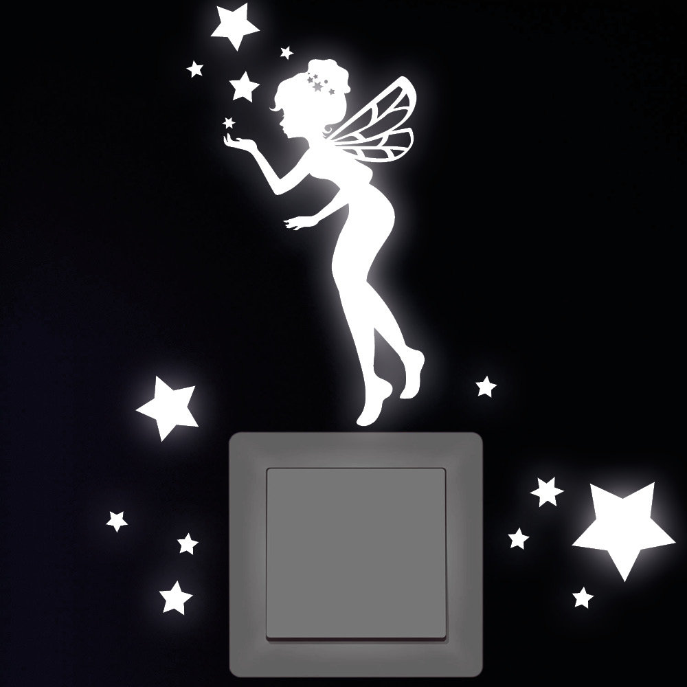 Leuchtaufkleber Elfe mit 14 Sternen für Lichtschalter Steckdose Fluoreszierend und im Dunkeln Leuchtend