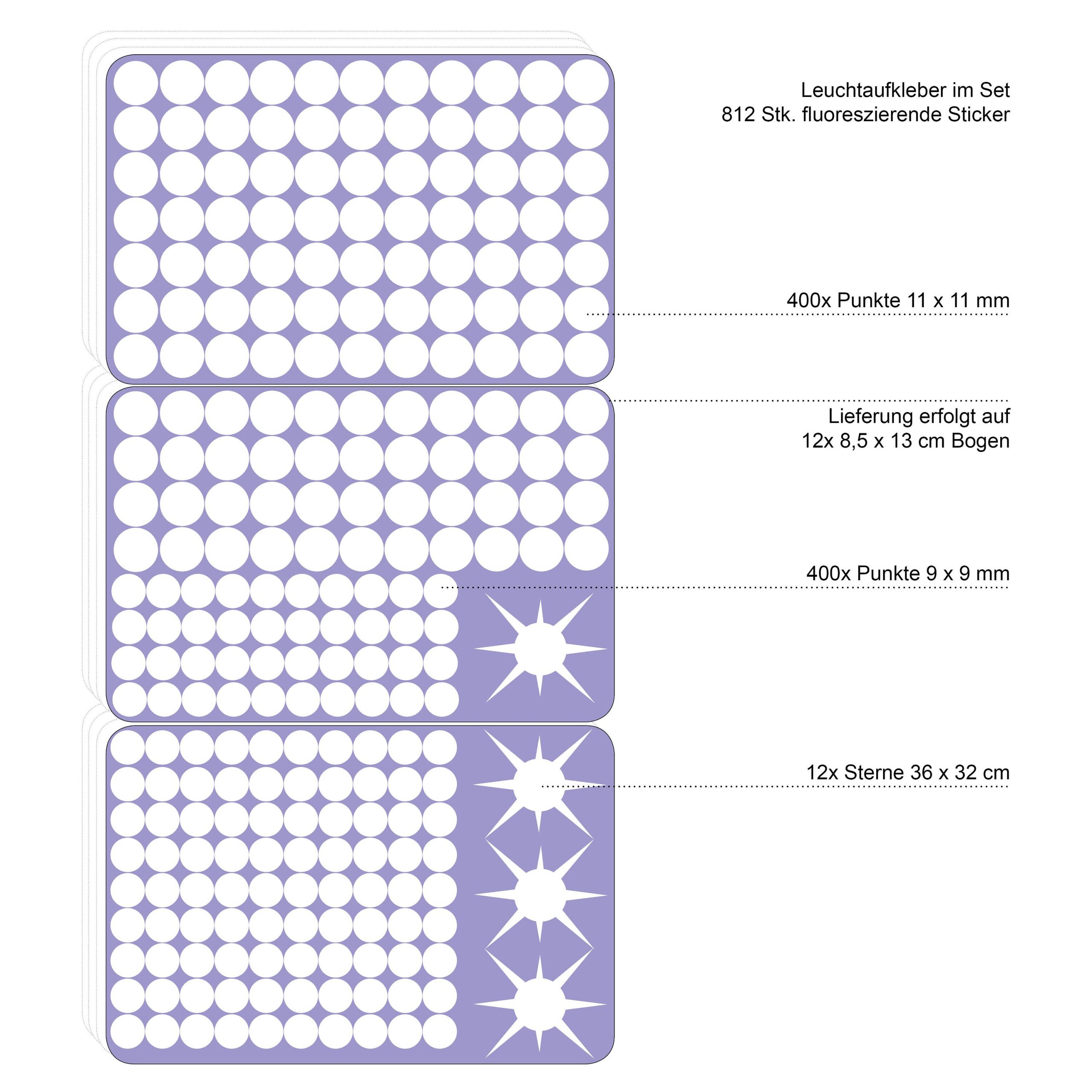 Fluoreszierende Sticker 812 Stk. Leuchtpunkte, Wohndekoration