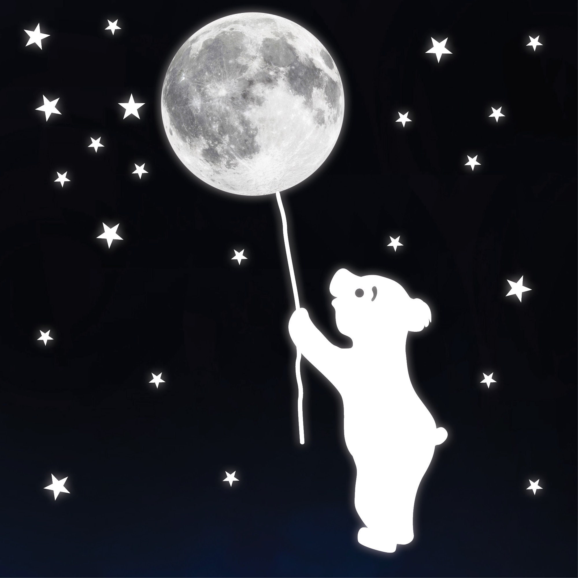 Leuchtaufkleber Kinderzimmer Bär mit Mond und Sternen Leuchtsterne leuchten im Dunklen