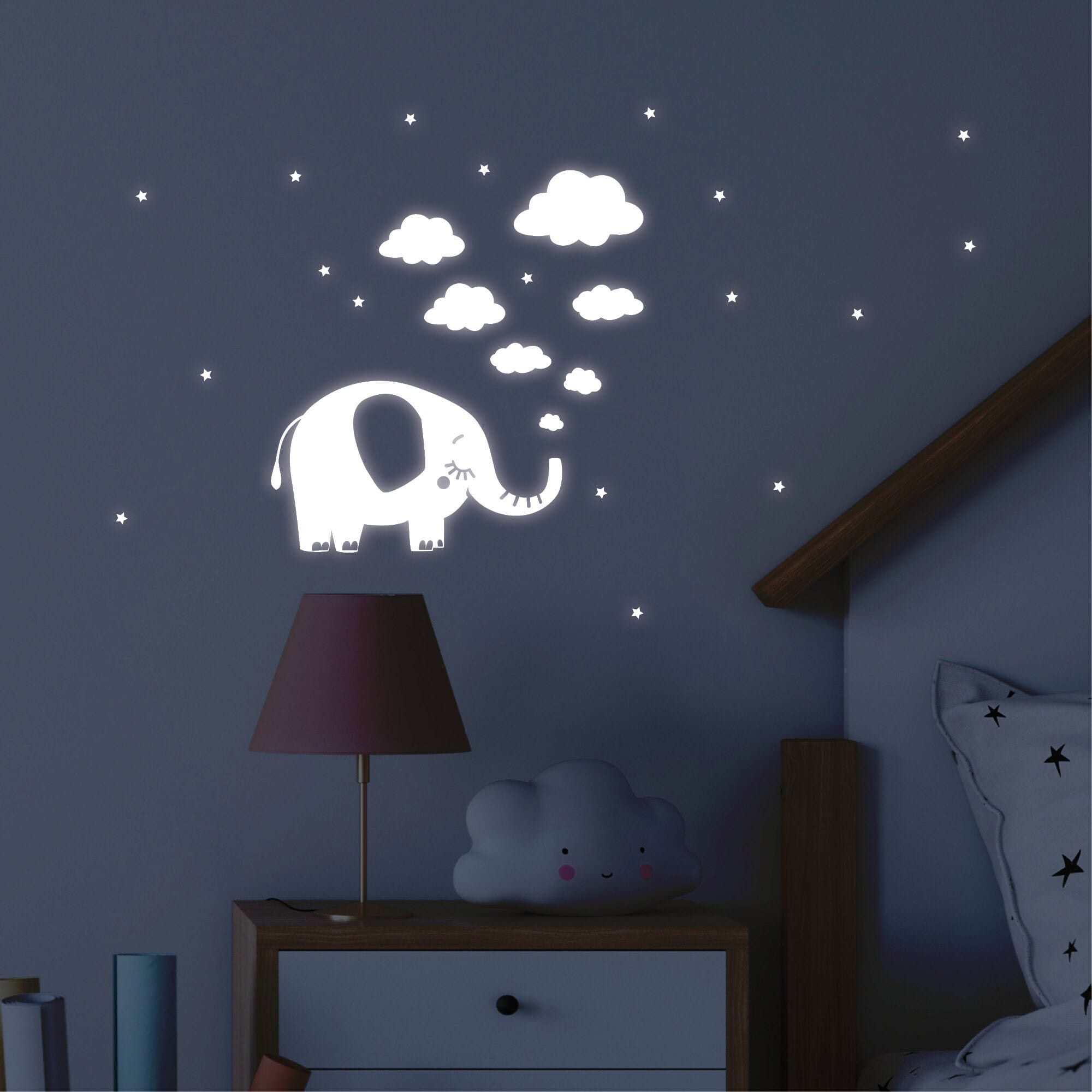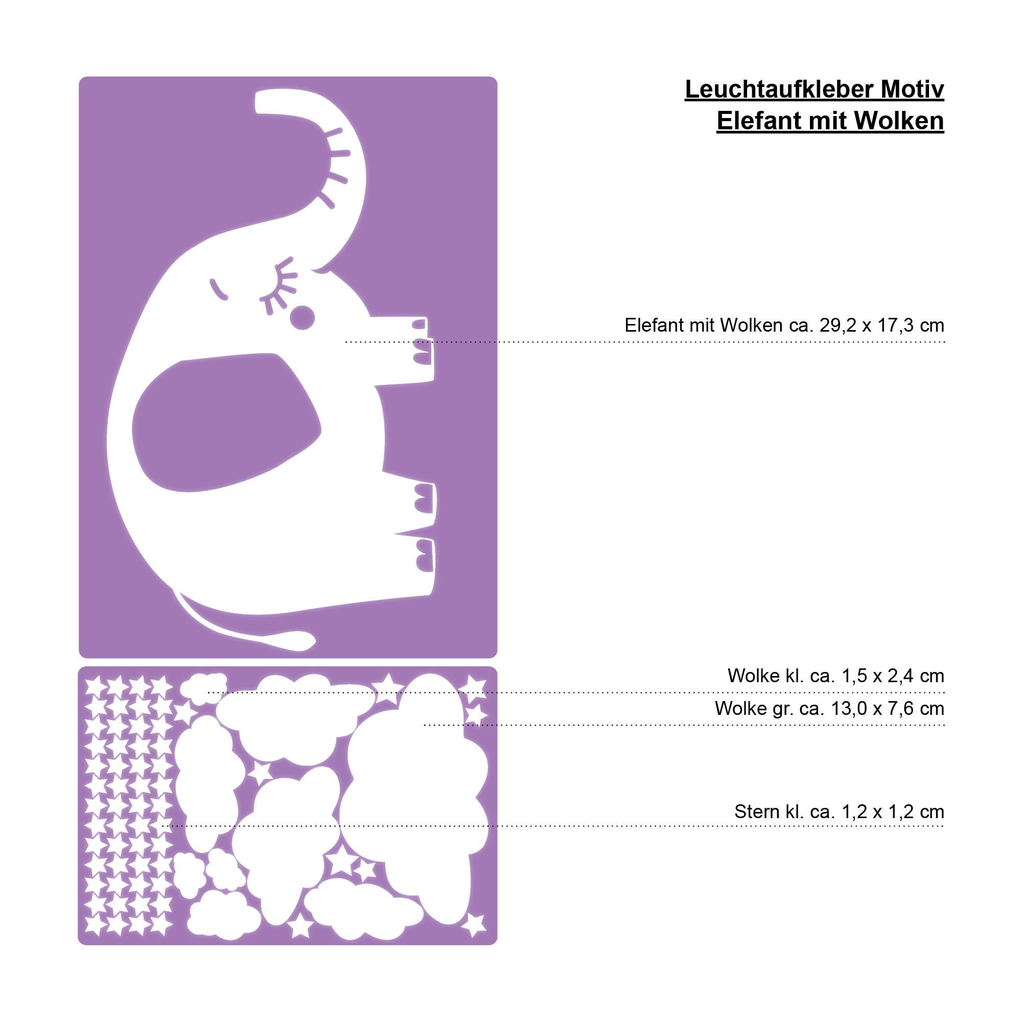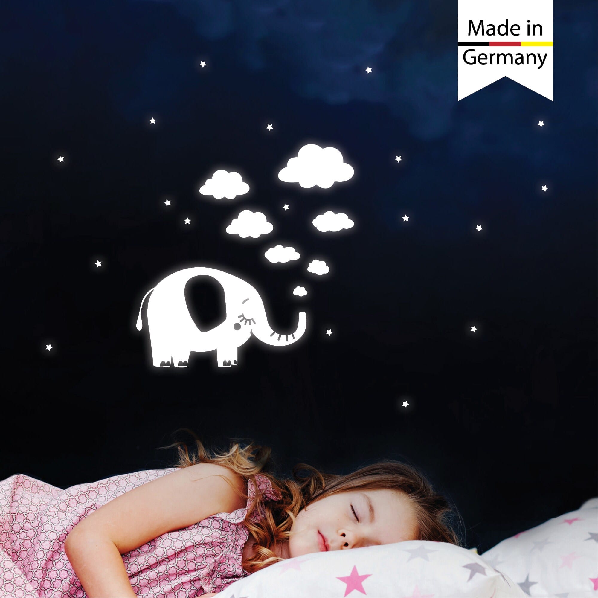 Leuchtaufkleber Kinderzimmer Elefant mit Wolken und Sternen Leuchtsterne leuchten im Dunklen