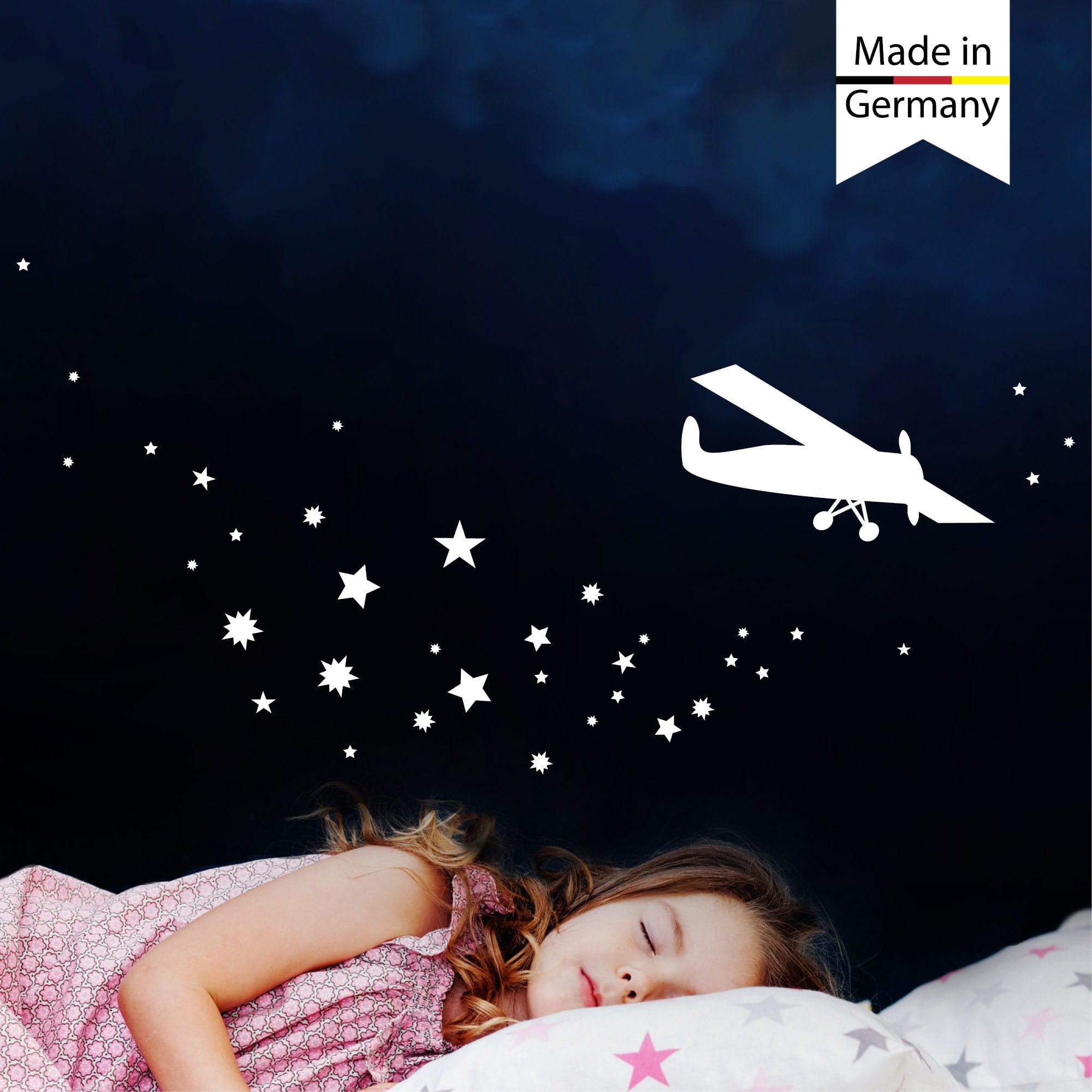 Leuchtaufkleber Kinderzimmer Flugzeug und Sternen Leuchtsterne leuchten im Dunklen