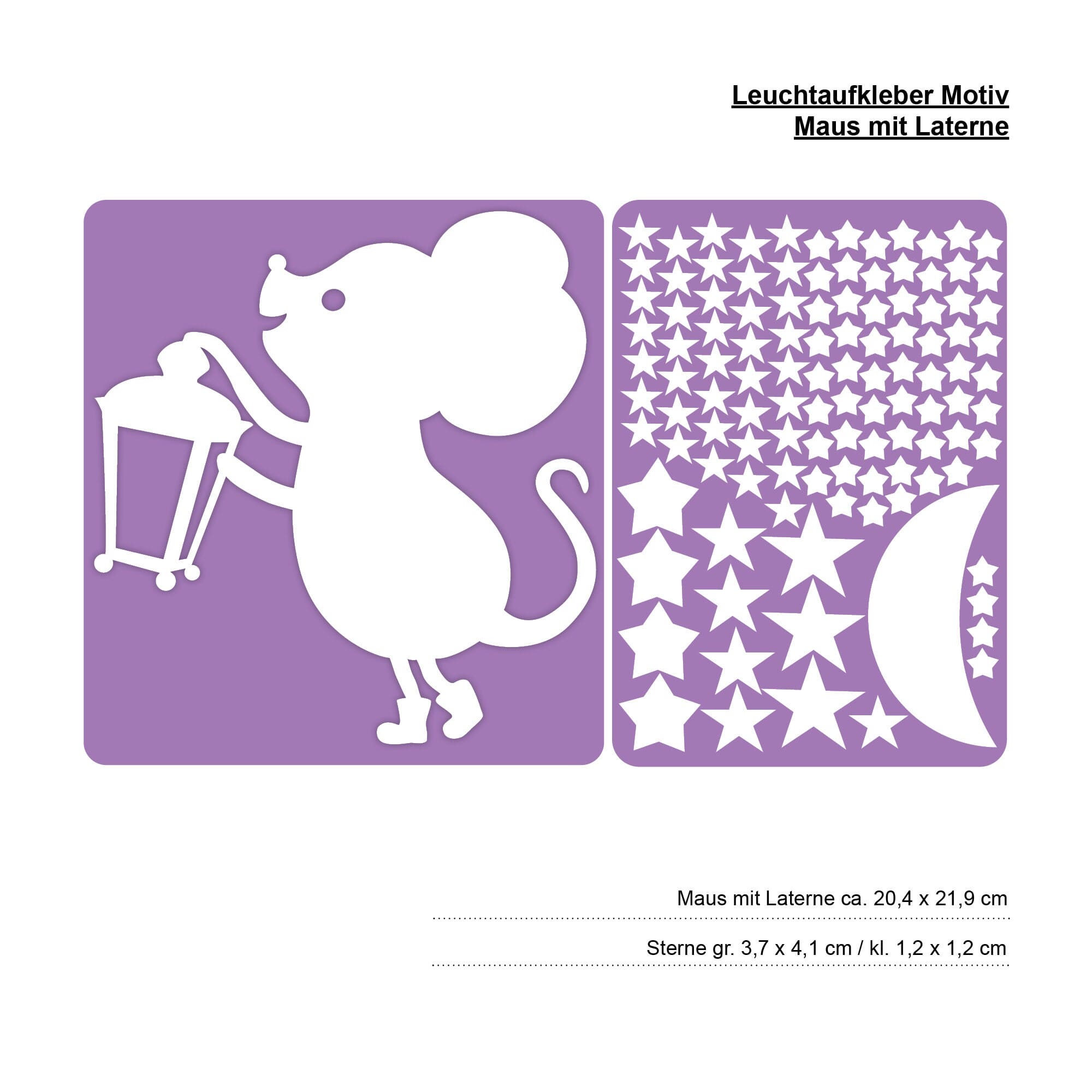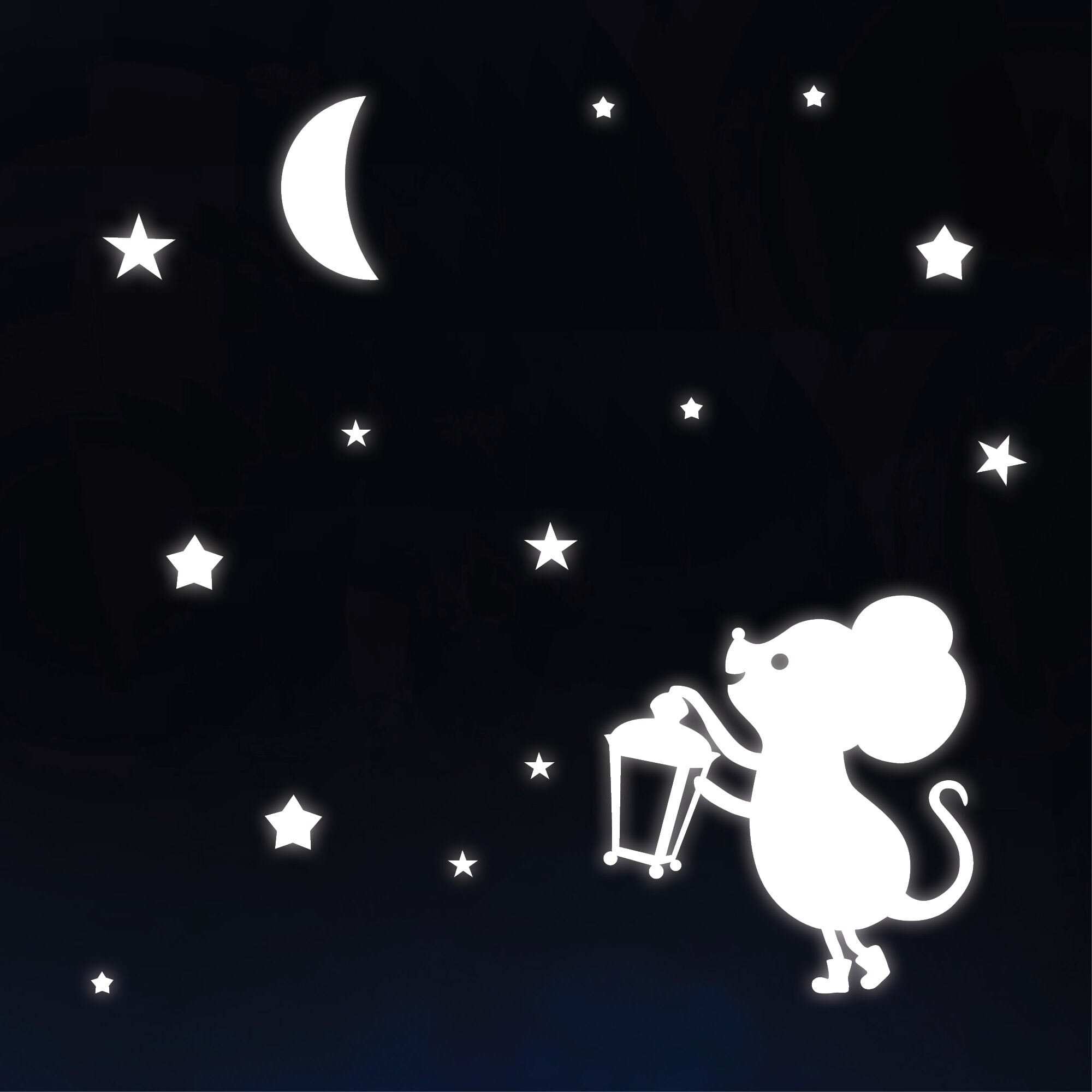 Leuchtaufkleber Kinderzimmer Maus Laterne Halbmond Mond mit mehr als 100 Sternen Leuchtsterne leuchten im Dunklen