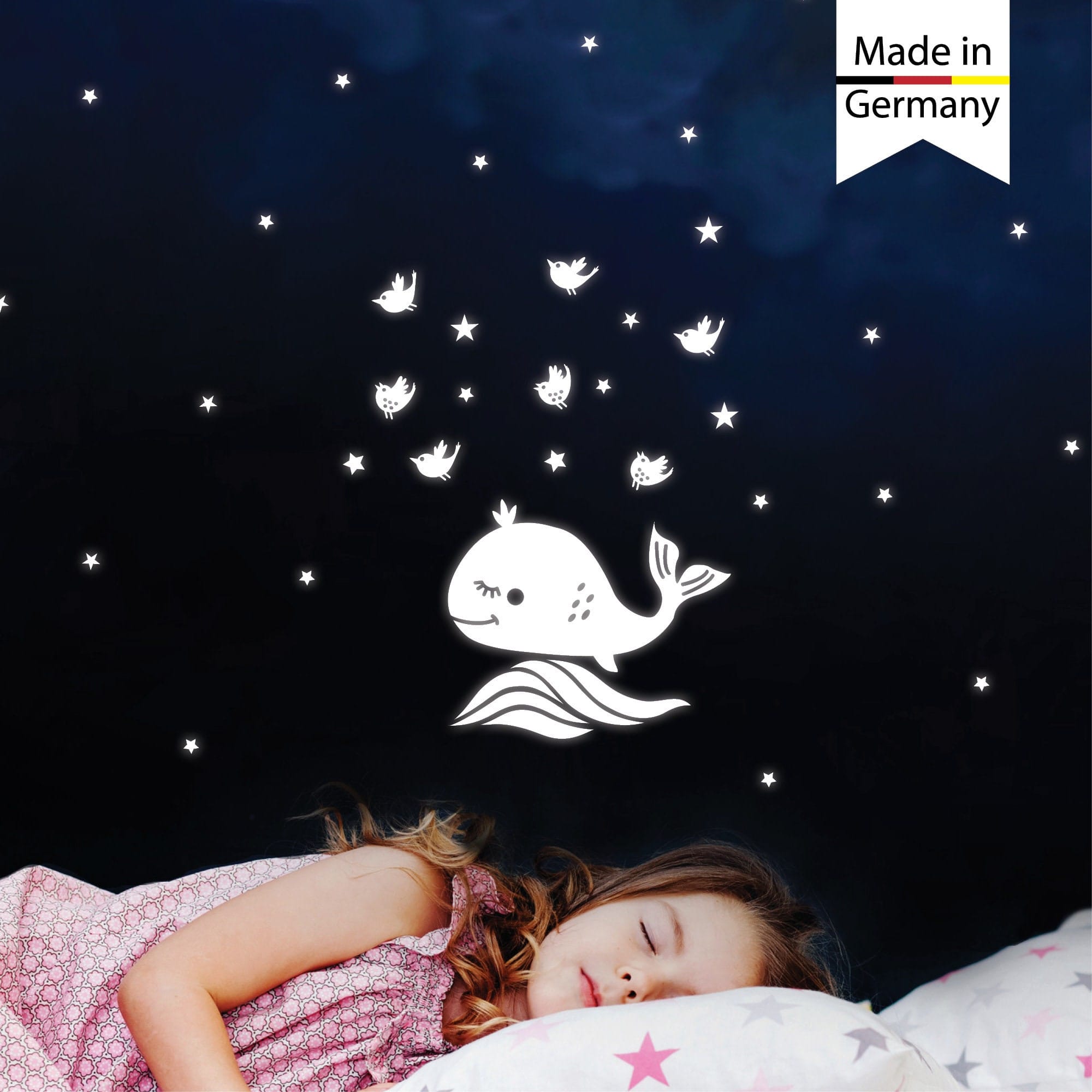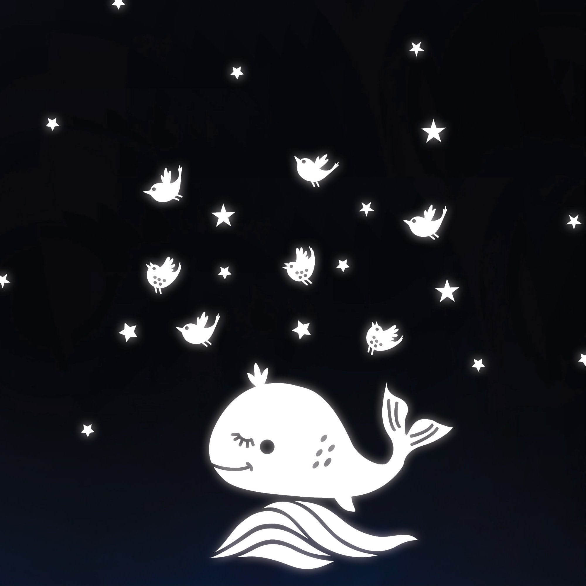 Leuchtaufkleber Kinderzimmer Wal mit Vögeln und Sternen Leuchtsterne leuchten im Dunklen