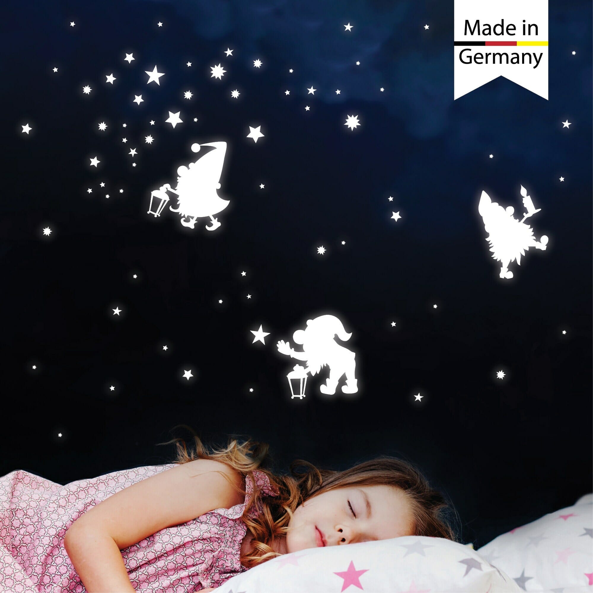 Leuchtaufkleber Kinderzimmer 3 Zwerge und 116 Leuchtsterne leuchten im Dunklen, Dekoration Kinderzimmer