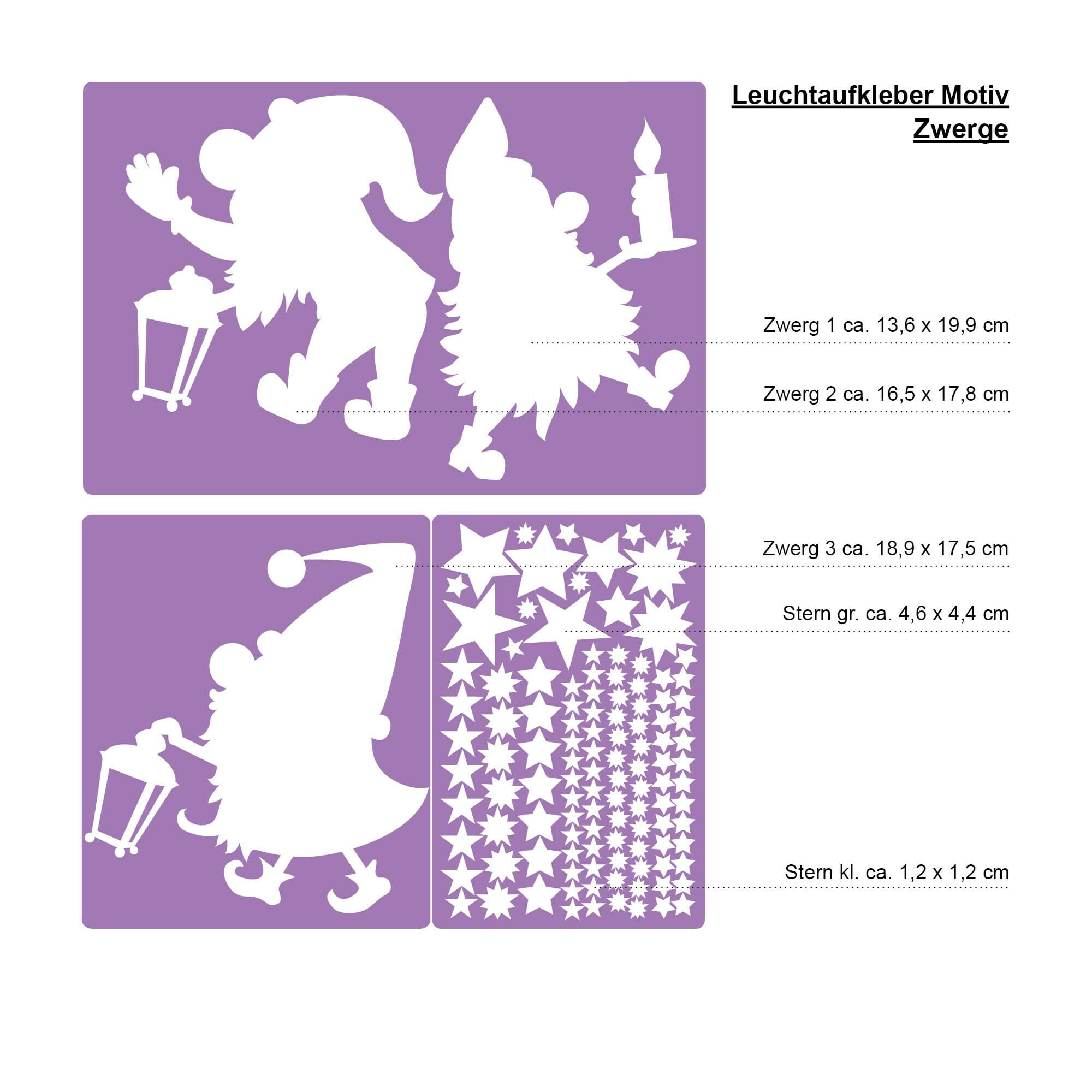 Leuchtaufkleber Zwerge und 116 Leuchtsterne leuchten im Dunklen fluoreszierend Dekoration Kinderzimmer Wandtattoo
