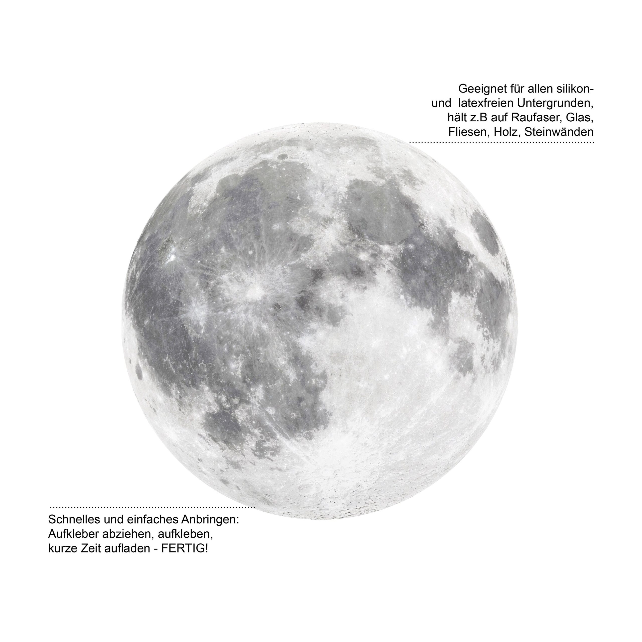 TIPP: Die volle Leuchtkraft entfaltet sich nach 1-2 Tagen, je nach Lichteinfall im Zimmer. Danach reichen ein paar Stunden Tageslicht aus, um die Leuchtaufkleber jeden Tag aufs Neue auszuladen.Wir fertigen alle Produkte aus spezieller, mattglänzender Wandfolie, die sich problemlos auf Materialien wie Raufaser, Tapete, Glas, Fliesen oder Holz anbringen und rückstandslos entfernen lässt.