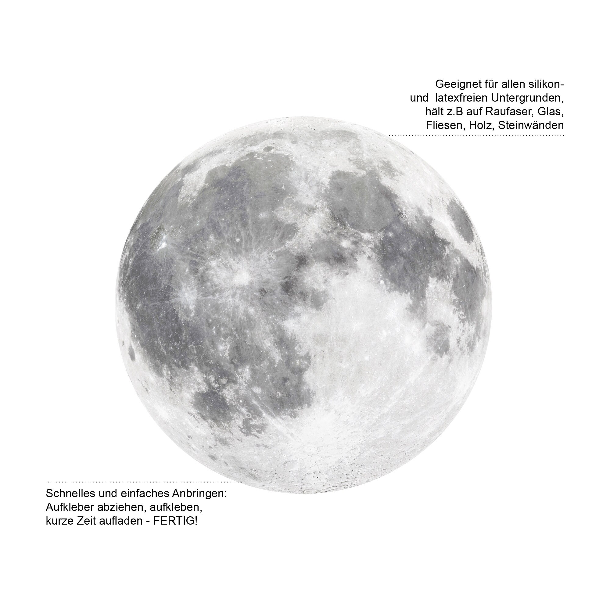 TIPP: Die volle Leuchtkraft entfaltet sich nach 1-2 Tagen, je nach Lichteinfall im Zimmer. Danach reichen ein paar Stunden Tageslicht aus, um die Leuchtaufkleber jeden Tag aufs Neue auszuladen.Wir fertigen alle Produkte aus spezieller, matt glänzender Wandfolie, die sich problemlos auf Materialien wie Raufaser, Tapete, Glas, Fliesen oder Holz anbringen und rückstandslos entfernen lässt.