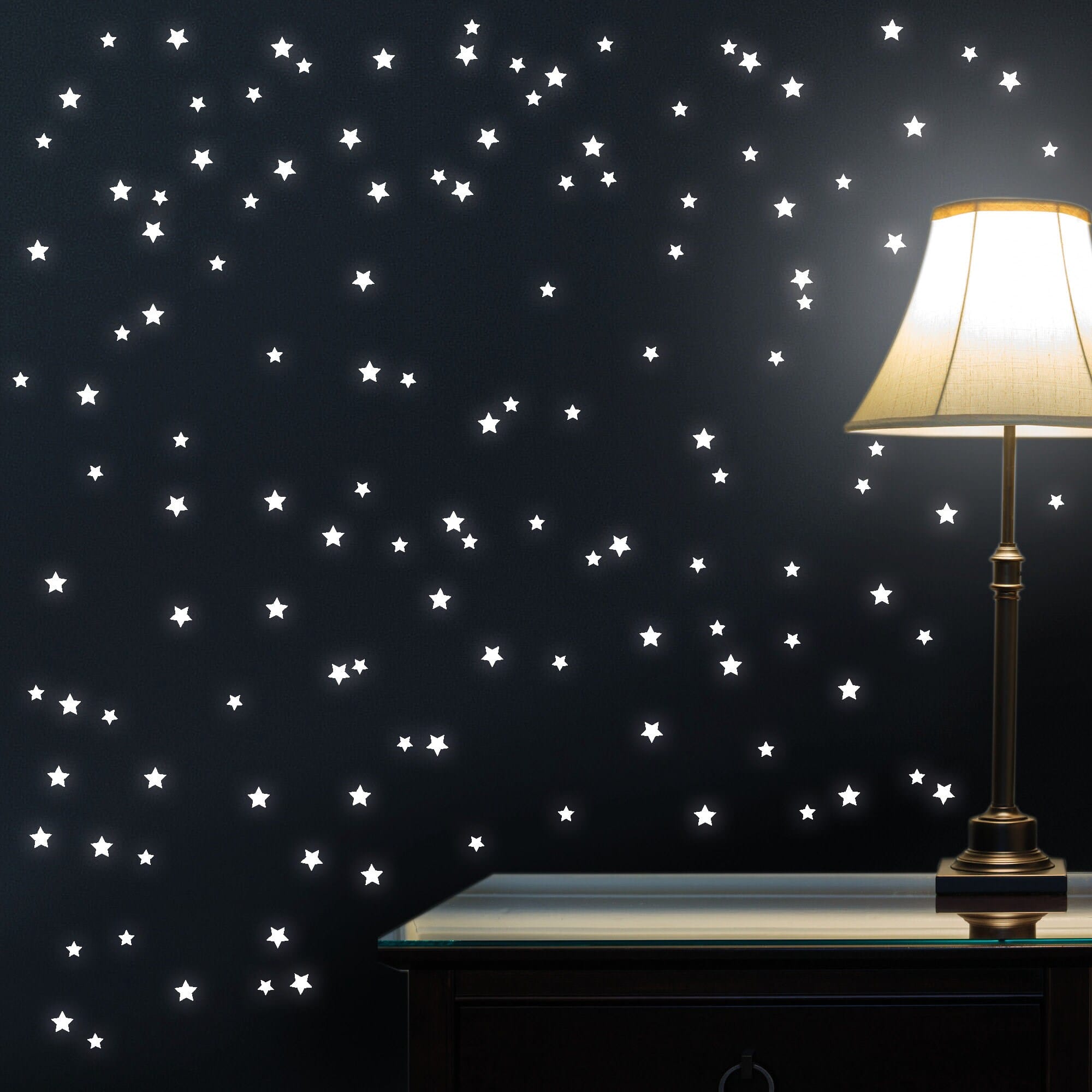 **TIPP:** Die volle Leuchtkraft entfaltet sich nach 1-2 Tagen, je nach Lichteinfall im Zimmer. Danach reichen ein paar Stunden Tageslicht aus, um die Leuchtaufkleber jeden Tag aufs Neue auszuladen.Wir fertigen alle Produkte aus spezieller, mattglänzender Wandfolie, die sich problemlos auf Materialien wie Raufaser, Tapete, Glas, Fliesen oder Holz anbringen und rückstandslos entfernen lässt.