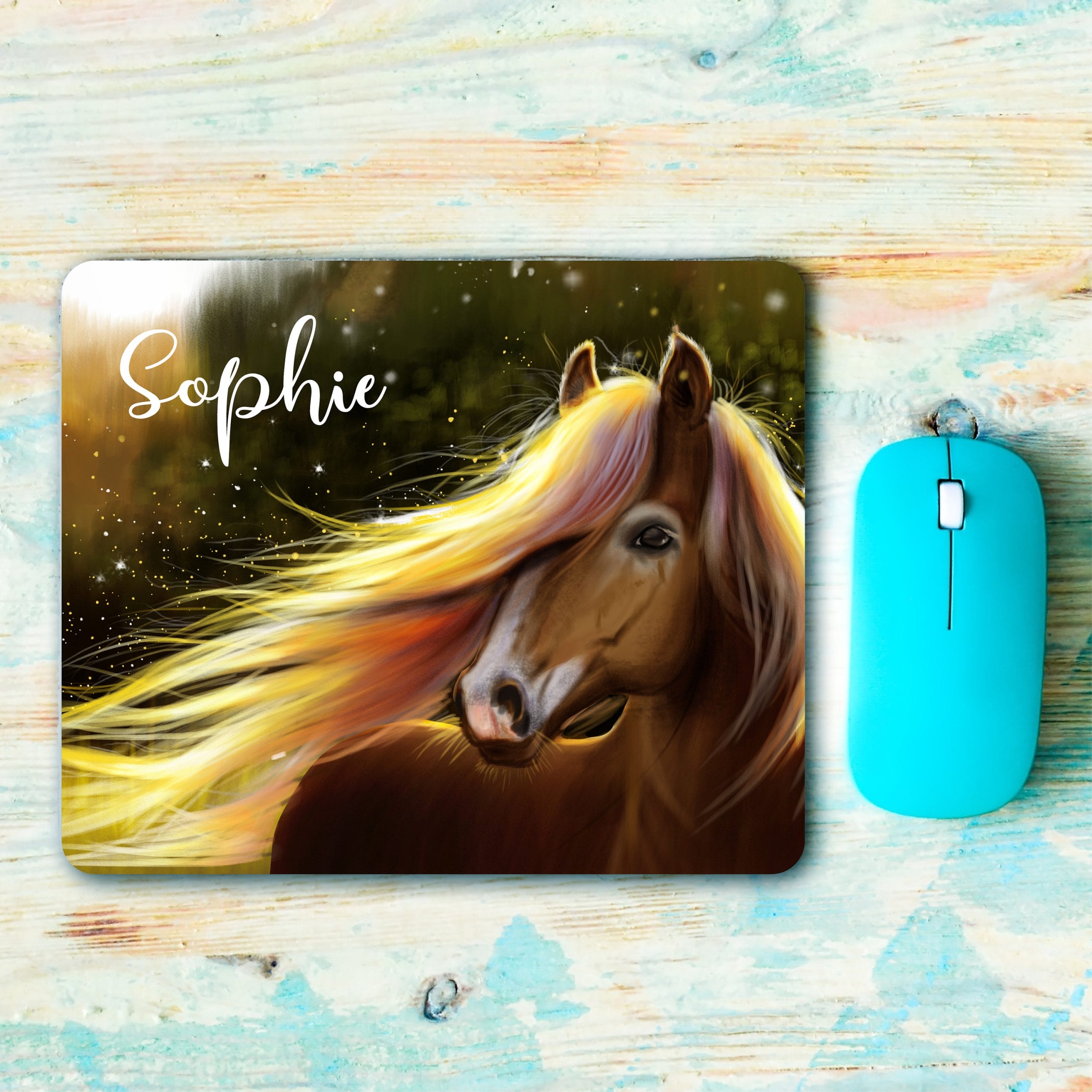 Mauspad Mousepad Pferd personalisiert mit Wunschname Geschenk Büro Deko Schreibtischunterlage benutzerdefiniert