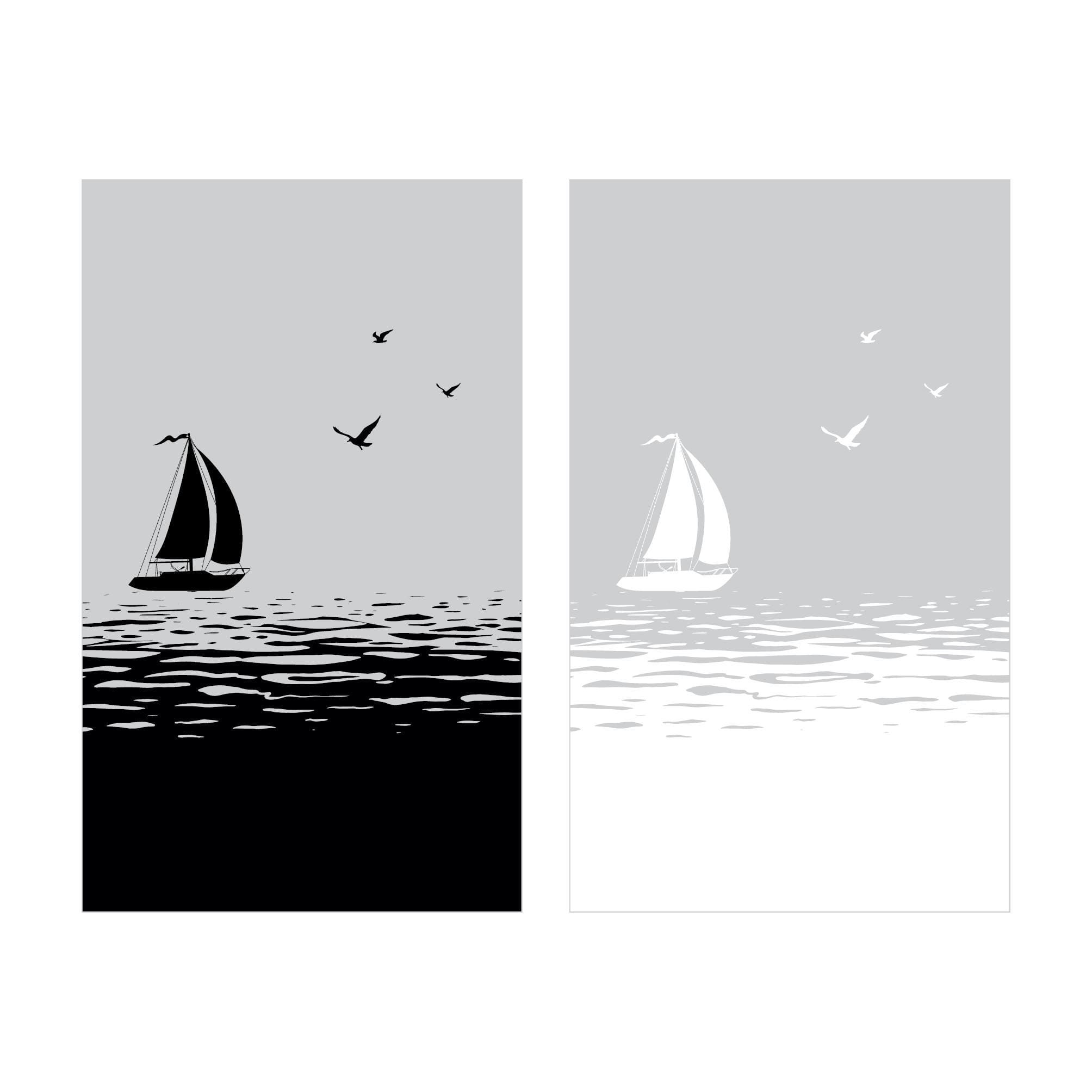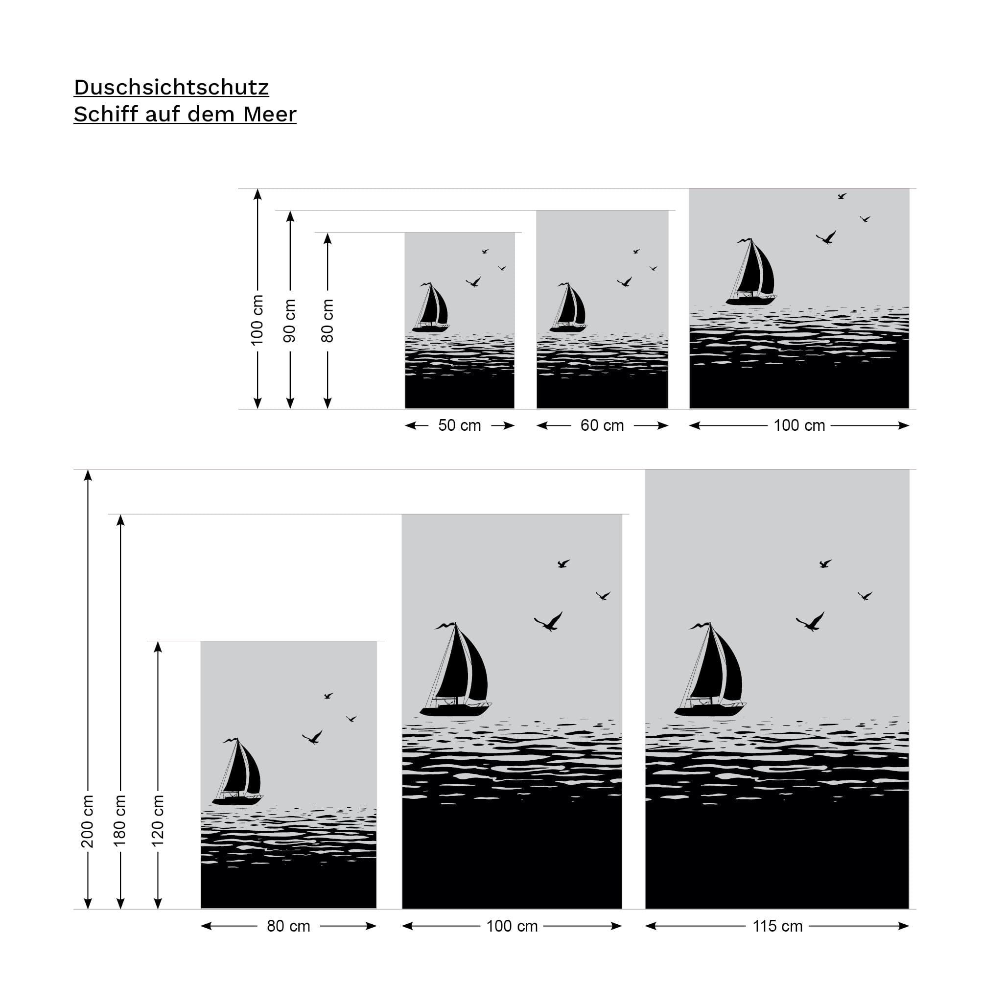 Sichtschutzfolie Duschkabine Segelboot Meer Möwen maritime Fensterfolie Dusche Duschglastür Duschwand schwarz oder weiß Milchglasfolie