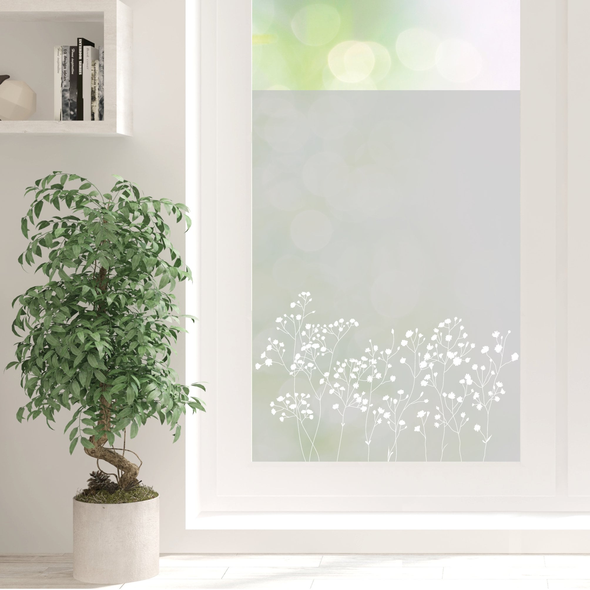 Sichtschutzfolie Gypsophila Schleierkraut florale Fensterfolie Fensterdeko Milchglasfolie Wiederverwendbar