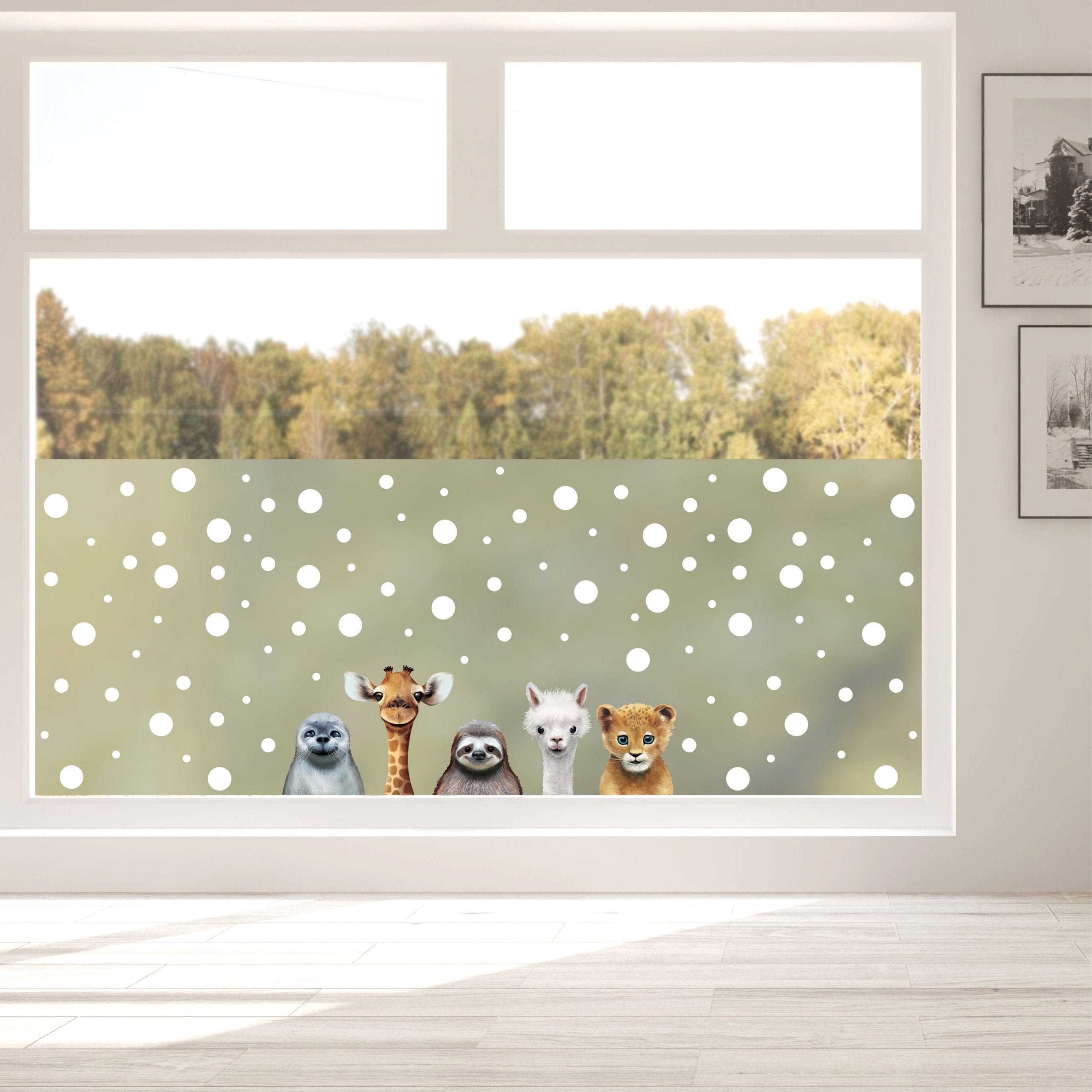 Sichtschutzfolie Kinderzimmer Zootiere Fensterfolie Fensterdeko Milchglasfolie Wiederverwendbar Sichtschutz
